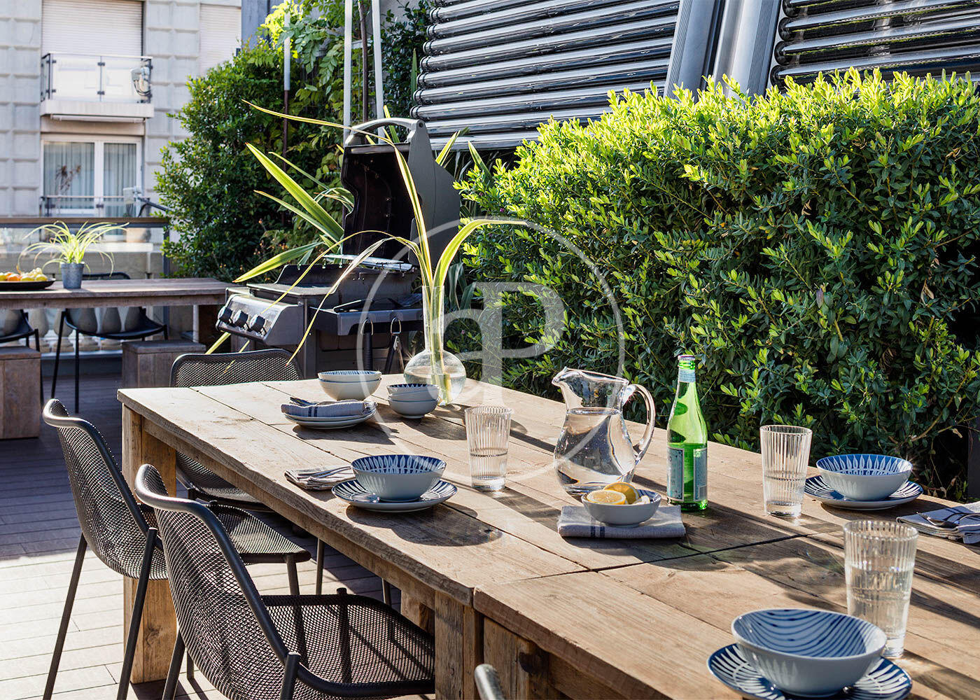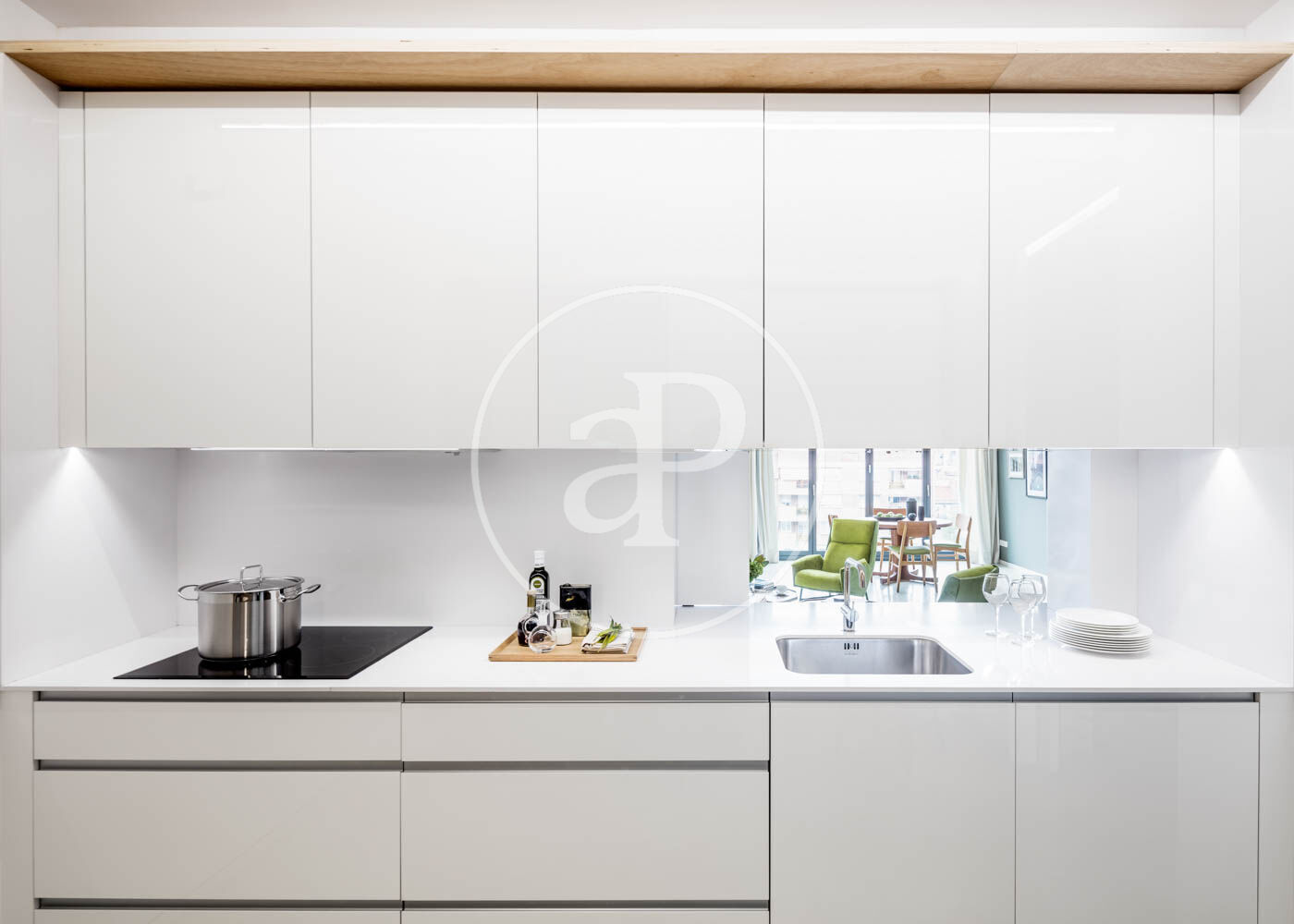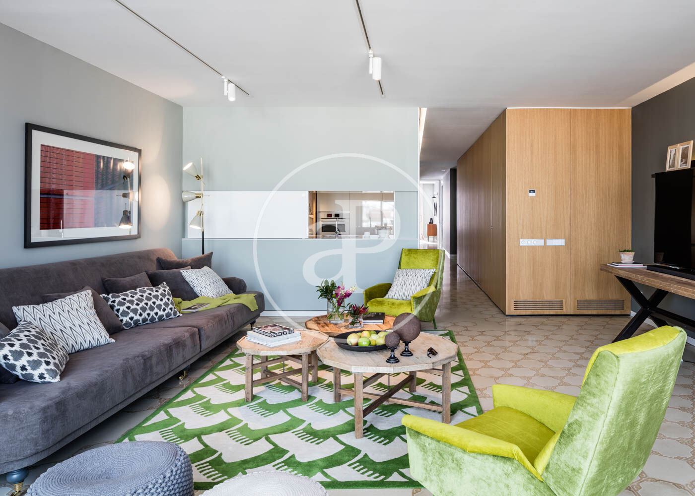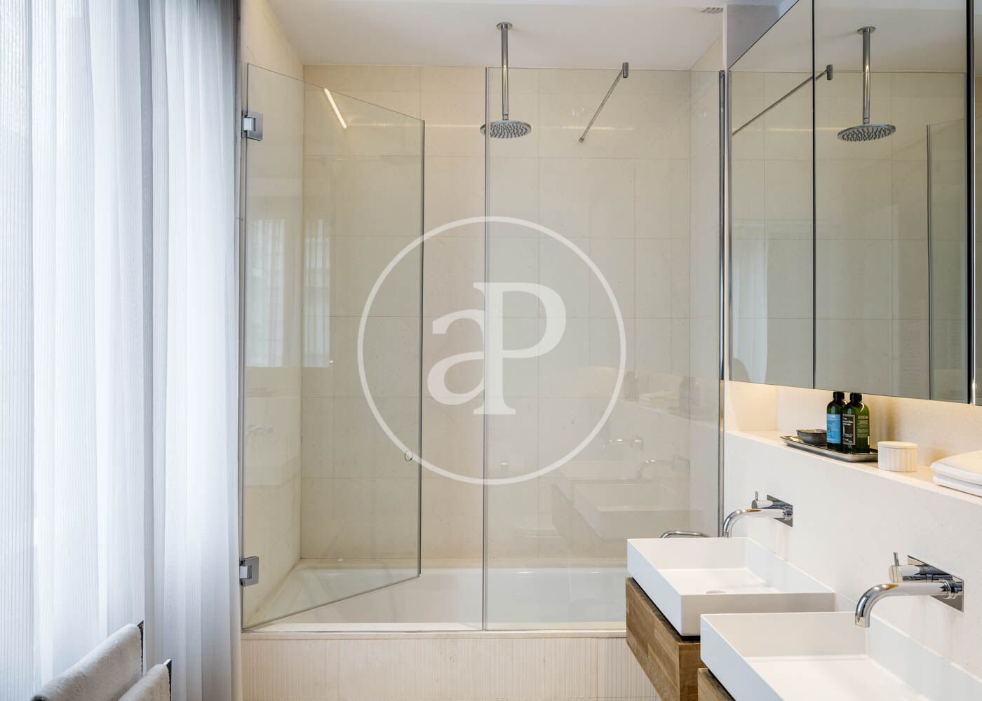 aProperties presenta esta magnífica propiedad de 250 m², cuya reciente renovación ha sido culminada con exquisita maestría. Ubicada en una tercera planta, ofrece privilegiadas vistas a la emblemática Calle Muntaner desde su inmejorable enclave en la prestigiosa Avenida Diagonal. La vivienda se sitúa en un distinguido edificio modernista que recibe a sus residentes con un majestuoso vestíbulo de entrada, donde se conserva con elegancia el ascensor original, fiel reflejo del encanto histórico del inmueble. Un segundo ascensor de servicio, discretamente ubicado en la parte posterior, aporta un toque de funcionalidad adicional. El piso ha sido transformado en un hogar exclusivo gracias a un diseño impecable y una atención minuciosa a cada detalle, logrando una armoniosa fusión entre el confort contemporáneo y la sofisticación más refinada. Se ofrece totalmente equipado y decorado con exquisito gusto, con mobiliario cuidadosamente seleccionado que realza cada estancia. La luminosa zona de estar, orientada hacia la Avenida Diagonal, se integra de manera fluida con un amplio comedor, creando un ambiente ideal para el entretenimiento y la vida familiar. La cocina de diseño, equipada con electrodomésticos SMEG de alta gama, destaca por su estética moderna e incorpora una elegante barra junto a un acogedor rincón perfecto para disfrutar de momentos de relax o desayunos informales.  En la parte posterior de la vivienda, un señorial pasillo de arcos conduce a tres amplios dormitorios dobles, cada uno de ellos con su propio vestidor y baño en suite, concebidos para garantizar el máximo confort, privacidad y bienestar. Vivir la experiencia de conocerlo es solo el comienzo. ¡Esta podría ser la casa que siempre soñaste!