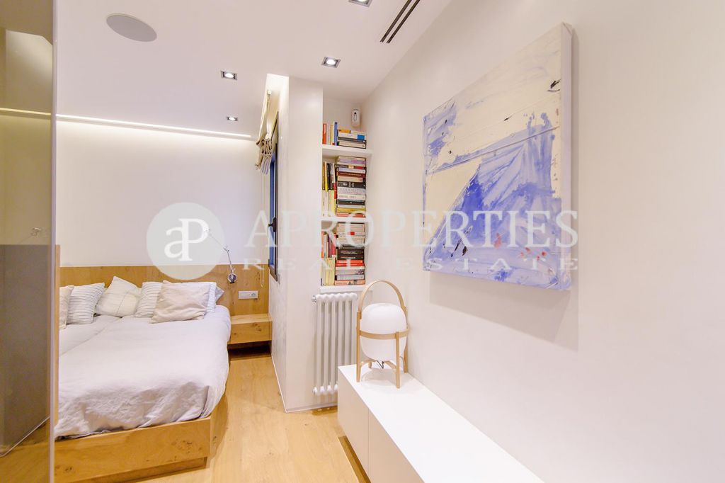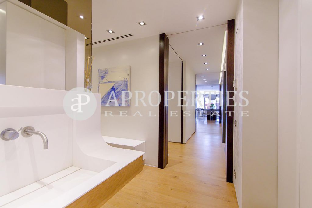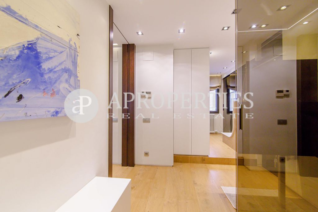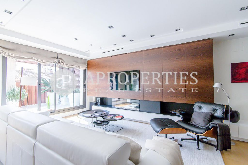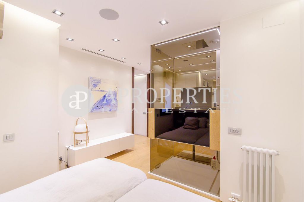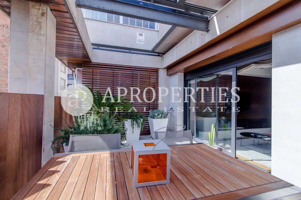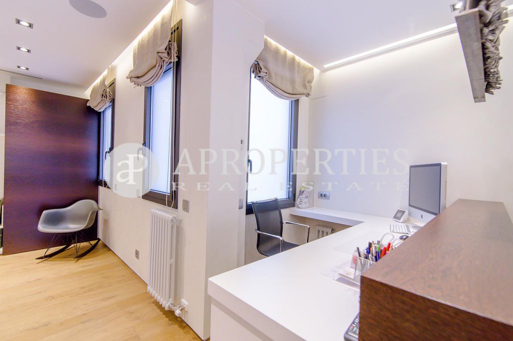 En pleno centro de Galvany, cerca de la calle Aribau, rodeado de todo tipo de comercios y transportes públicos, encontramos este espectacular piso recién reformado de 125m2 con todo tipo de detalles y una gran calidad. Consta de un amplio y luminoso salón-comedor con acceso a una terraza de 25m2, una cocina abierta totalmente equipada con electrodomésticos de alta gama (dos frigoríficos Liebherr, calientaplatos, lavavajillas , campana Pando, horno y microondas Siemens, isla de granito Zimbawe),tres habitaciones y dos baños completos. La propiedad está dotada con descalcificadora y aparato de osmosis, Aire acondicionado frio/calor dividido por zonas, calefacción y chimenea a gas, sistema de audio/video a controlados a través de un ordenador Mac mini por toda la vivienda, persianas motorizadas Gradermetic, puertas correderas en toda la casa, toldos motorizados en la terraza con sensores de viento, sol y lluvia, tres TV de 55’-40’, parque de roble Francés lama ancha, carpintería de Wengué, grifería en acero inoxidable Vola, encimeras y duchas de Corian. Totalmente amueblado con un gusto excelente.