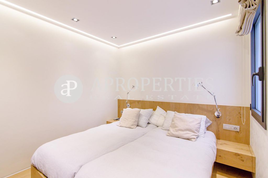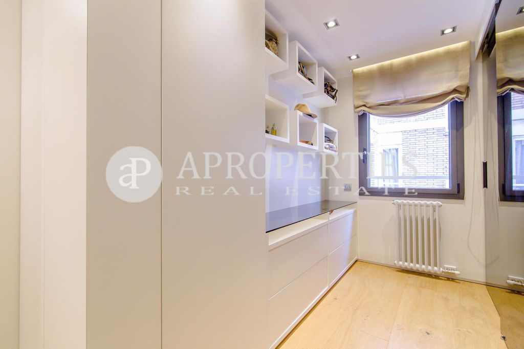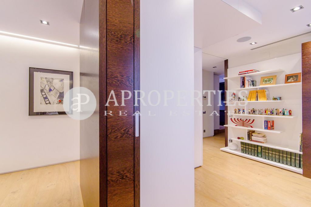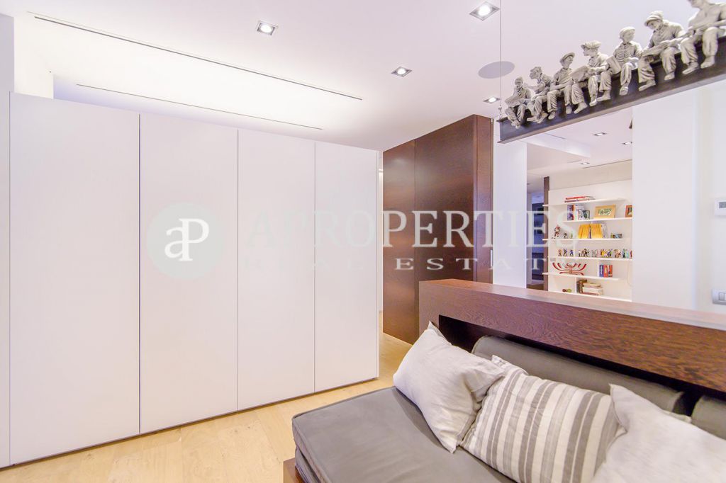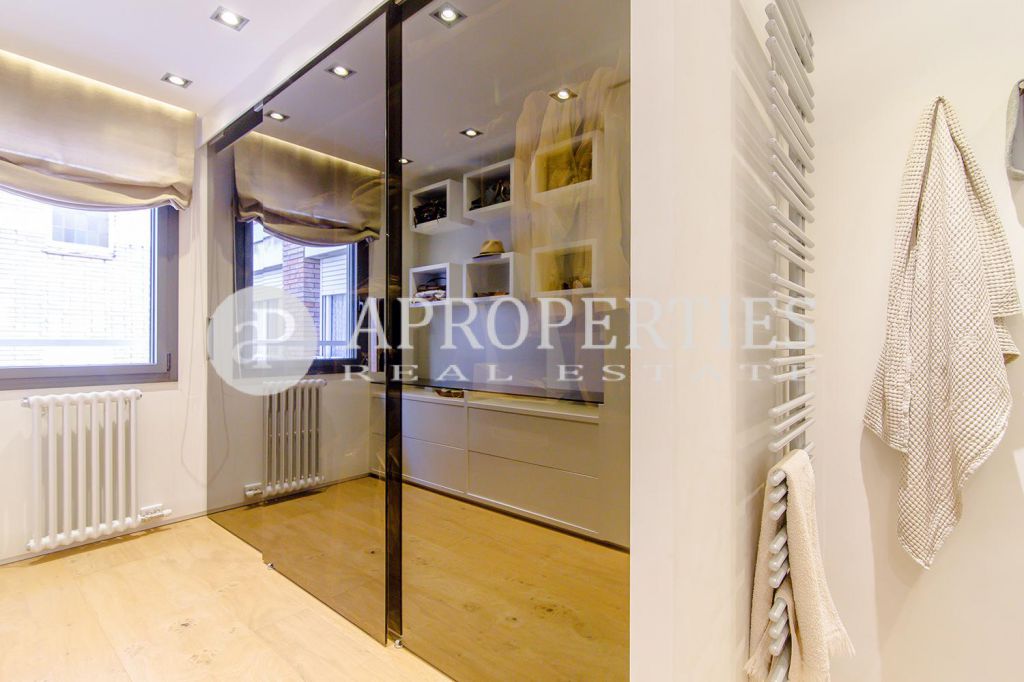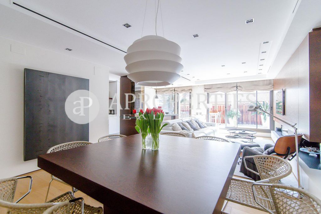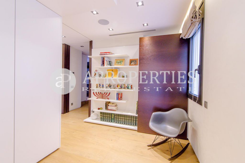 En pleno centro de Galvany, cerca de la calle Aribau, rodeado de todo tipo de comercios y transportes públicos, encontramos este espectacular piso recién reformado de 125m2 con todo tipo de detalles y una gran calidad. Consta de un amplio y luminoso salón-comedor con acceso a una terraza de 25m2, una cocina abierta totalmente equipada con electrodomésticos de alta gama (dos frigoríficos Liebherr, calientaplatos, lavavajillas , campana Pando, horno y microondas Siemens, isla de granito Zimbawe),tres habitaciones y dos baños completos. La propiedad está dotada con descalcificadora y aparato de osmosis, Aire acondicionado frio/calor dividido por zonas, calefacción y chimenea a gas, sistema de audio/video a controlados a través de un ordenador Mac mini por toda la vivienda, persianas motorizadas Gradermetic, puertas correderas en toda la casa, toldos motorizados en la terraza con sensores de viento, sol y lluvia, tres TV de 55’-40’, parque de roble Francés lama ancha, carpintería de Wengué, grifería en acero inoxidable Vola, encimeras y duchas de Corian. Totalmente amueblado con un gusto excelente.