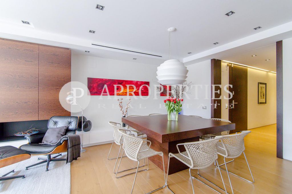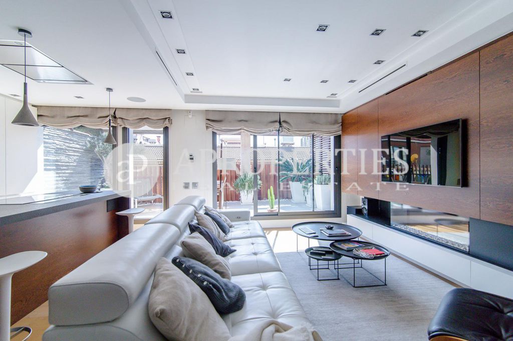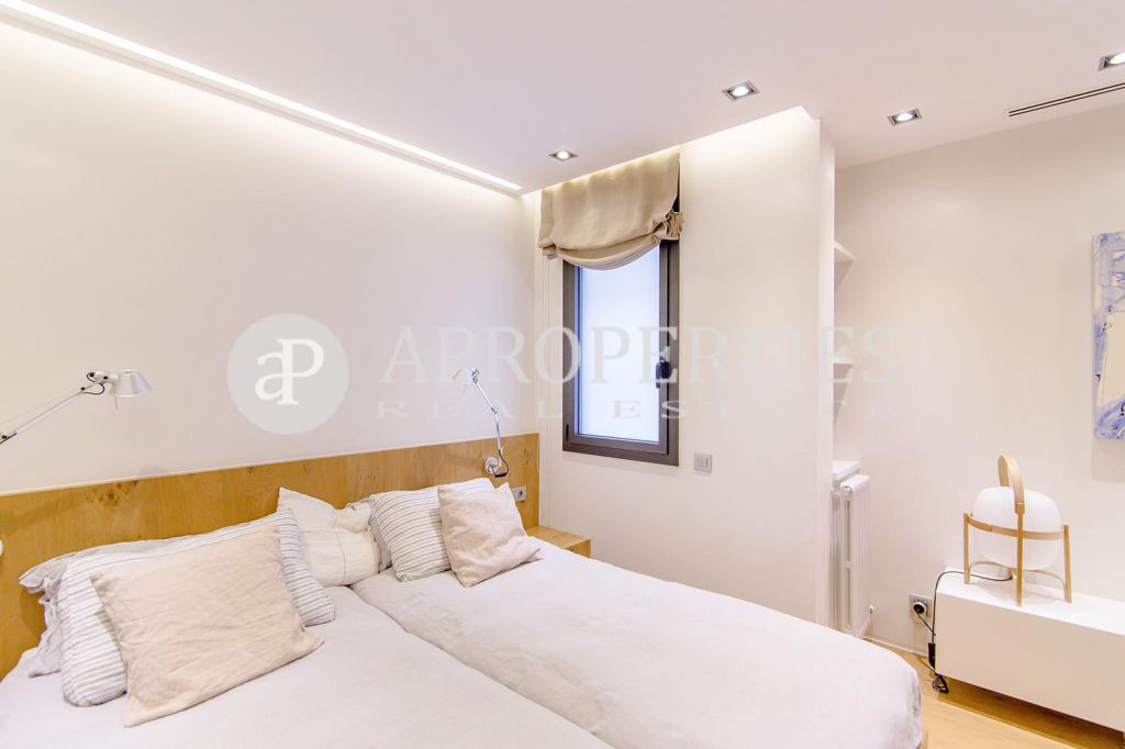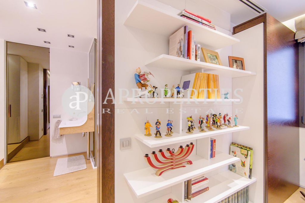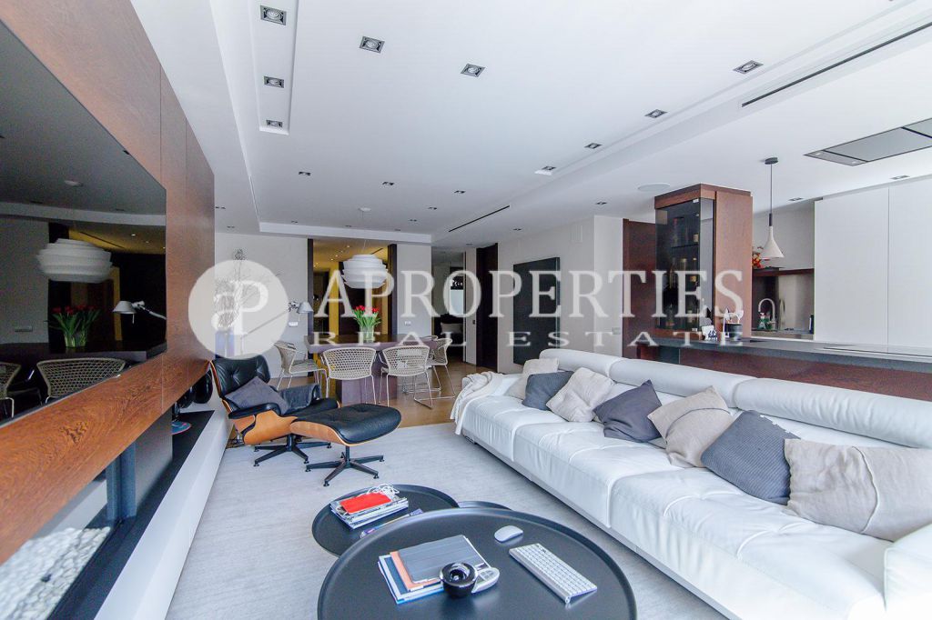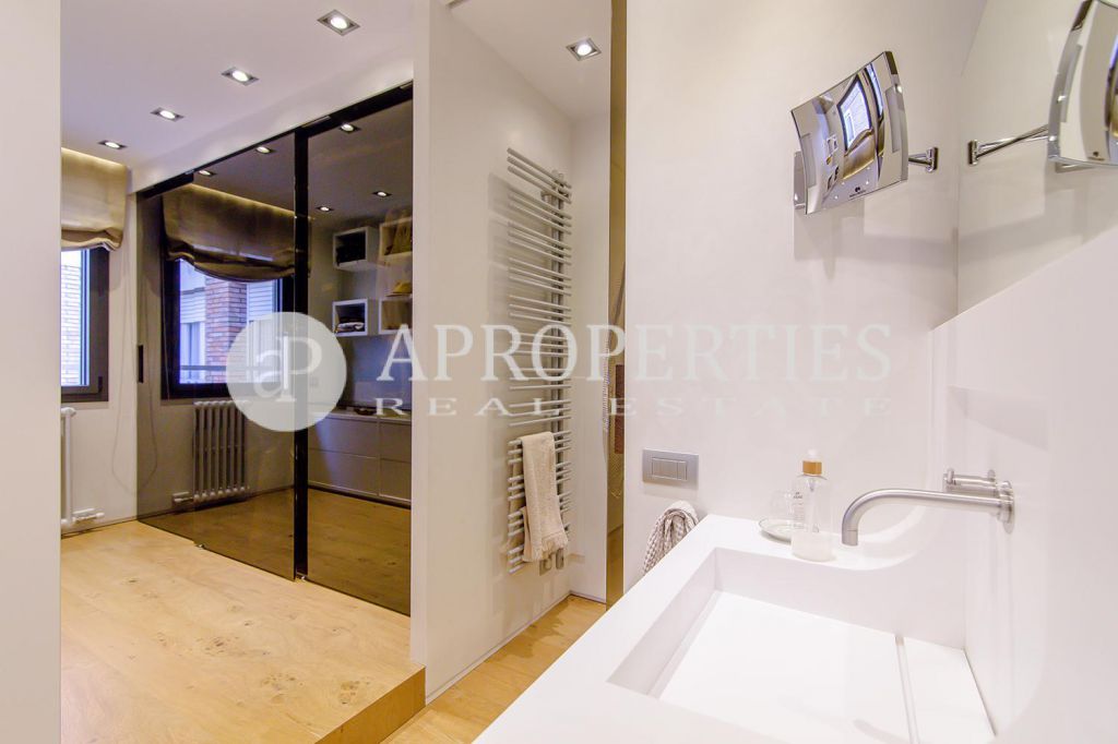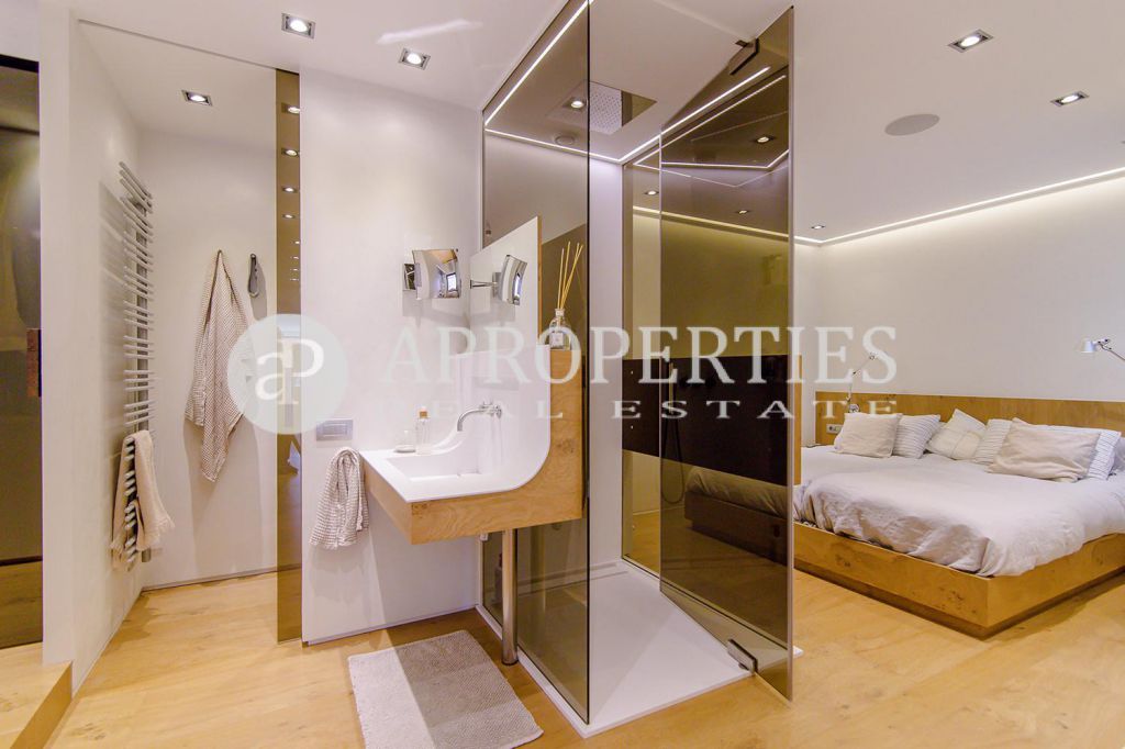En pleno centro de Galvany, cerca de la calle Aribau, rodeado de todo tipo de comercios y transportes públicos, encontramos este espectacular piso recién reformado de 125m2 con todo tipo de detalles y una gran calidad. Consta de un amplio y luminoso salón-comedor con acceso a una terraza de 25m2, una cocina abierta totalmente equipada con electrodomésticos de alta gama (dos frigoríficos Liebherr, calientaplatos, lavavajillas , campana Pando, horno y microondas Siemens, isla de granito Zimbawe),tres habitaciones y dos baños completos. La propiedad está dotada con descalcificadora y aparato de osmosis, Aire acondicionado frio/calor dividido por zonas, calefacción y chimenea a gas, sistema de audio/video a controlados a través de un ordenador Mac mini por toda la vivienda, persianas motorizadas Gradermetic, puertas correderas en toda la casa, toldos motorizados en la terraza con sensores de viento, sol y lluvia, tres TV de 55’-40’, parque de roble Francés lama ancha, carpintería de Wengué, grifería en acero inoxidable Vola, encimeras y duchas de Corian. Totalmente amueblado con un gusto excelente.