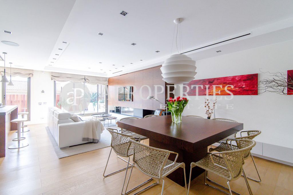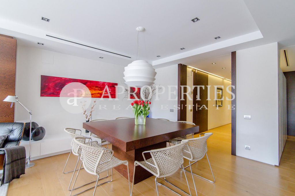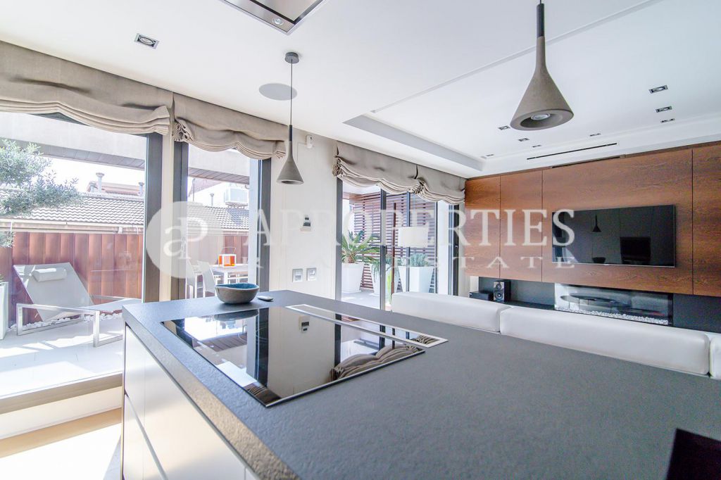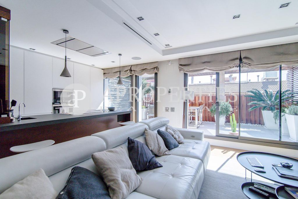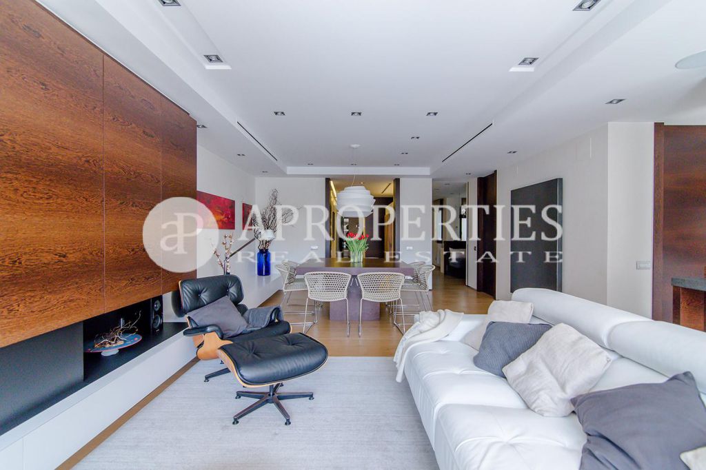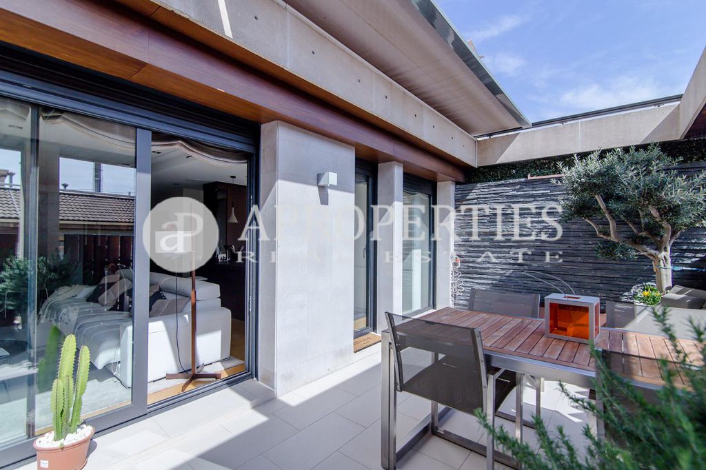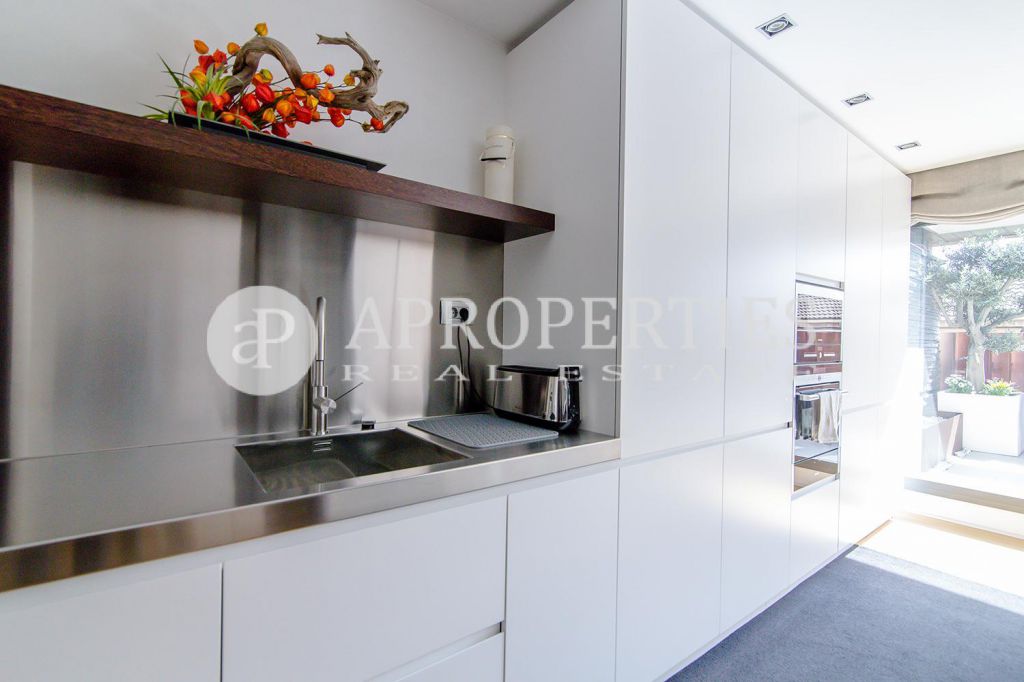 En pleno centro de Galvany, cerca de la calle Aribau, rodeado de todo tipo de comercios y transportes públicos, encontramos este espectacular piso recién reformado de 125m2 con todo tipo de detalles y una gran calidad. Consta de un amplio y luminoso salón-comedor con acceso a una terraza de 25m2, una cocina abierta totalmente equipada con electrodomésticos de alta gama (dos frigoríficos Liebherr, calientaplatos, lavavajillas , campana Pando, horno y microondas Siemens, isla de granito Zimbawe),tres habitaciones y dos baños completos. La propiedad está dotada con descalcificadora y aparato de osmosis, Aire acondicionado frio/calor dividido por zonas, calefacción y chimenea a gas, sistema de audio/video a controlados a través de un ordenador Mac mini por toda la vivienda, persianas motorizadas Gradermetic, puertas correderas en toda la casa, toldos motorizados en la terraza con sensores de viento, sol y lluvia, tres TV de 55’-40’, parque de roble Francés lama ancha, carpintería de Wengué, grifería en acero inoxidable Vola, encimeras y duchas de Corian. Totalmente amueblado con un gusto excelente.
