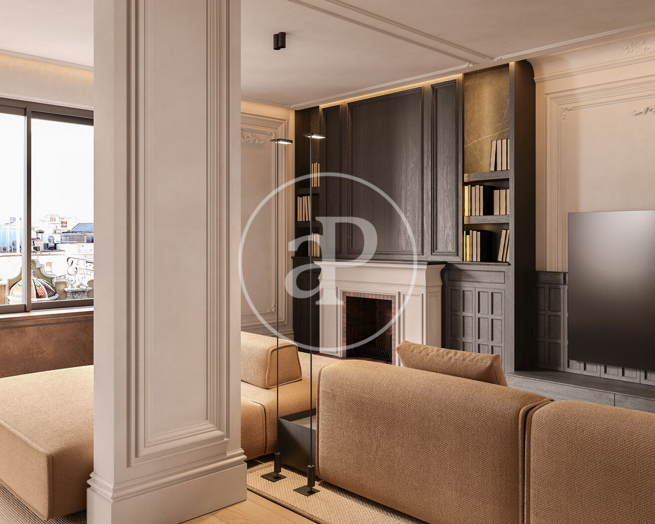 • Un salón espacioso y lleno de luz, orientado hacia calle Muntaner, con acceso a una terraza cubierta y vistas a una preciosa finca modernista.