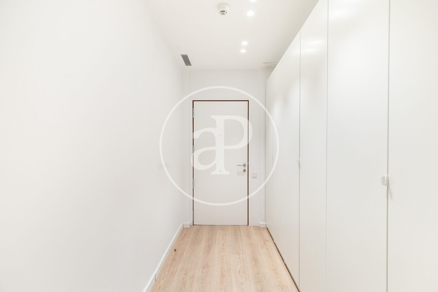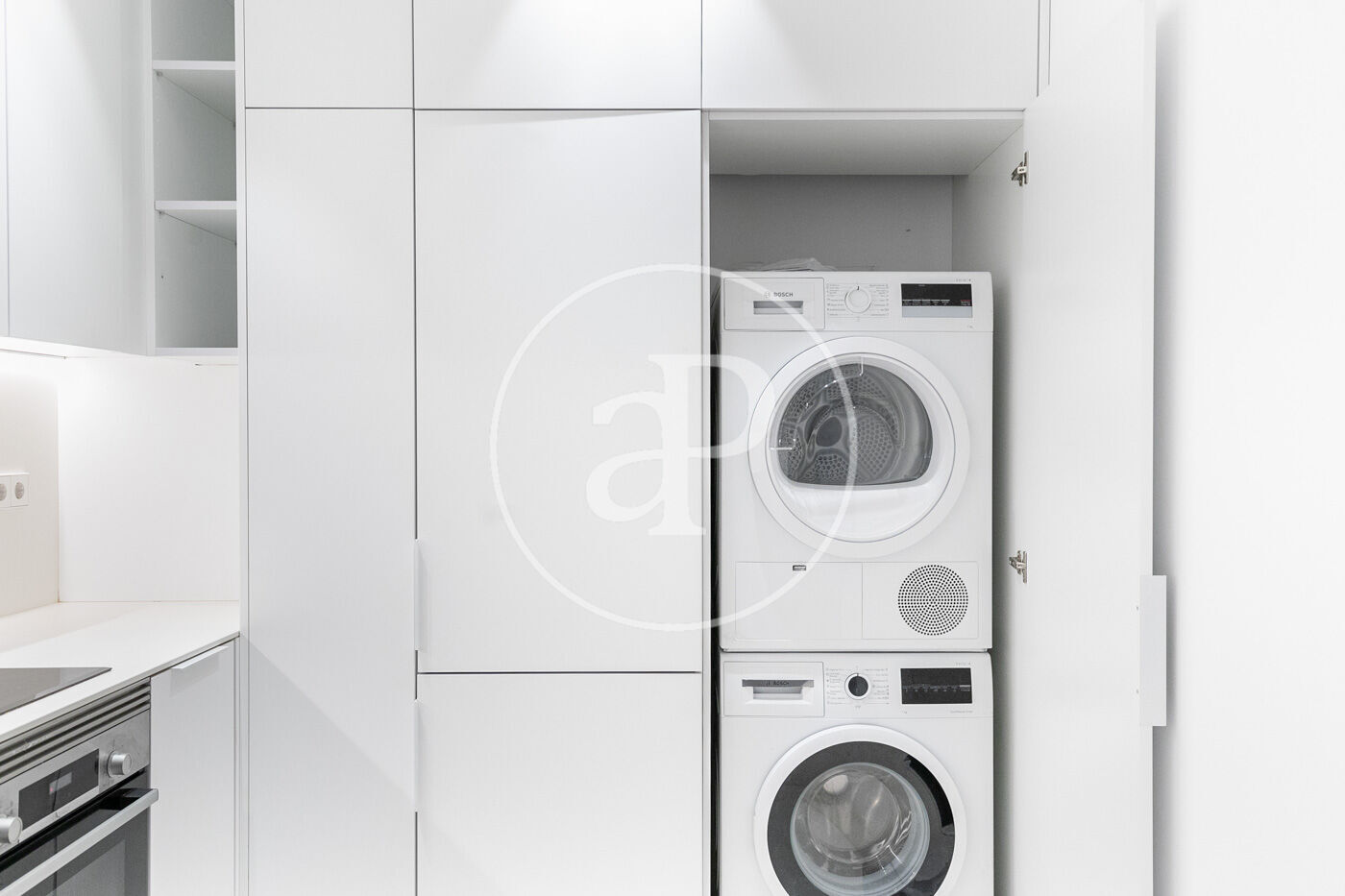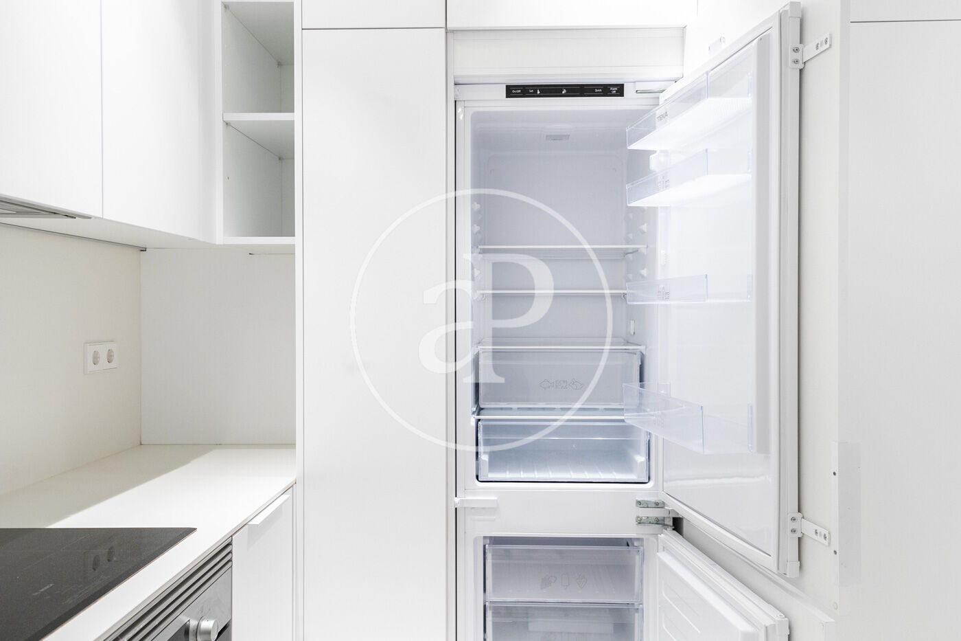 La vivienda ofrece suelos de parquet, armarios a medida en entrada principal y estancias, carpintería de aluminio con doble acristalamiento, climatización por bomba de calor/frio por conductos en todas las estancias y servicio de conserjería ininterrumpido de 08:00 a 22:00 con video vigilancia 24h. También hay posibilidad de parking en la misma finca (no incluido en la renta).