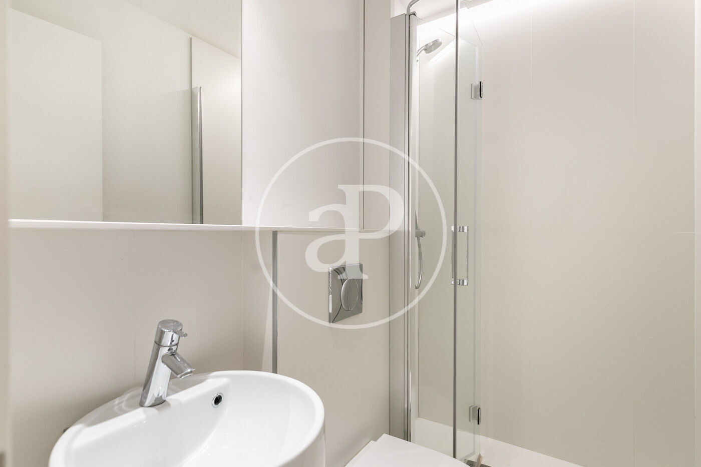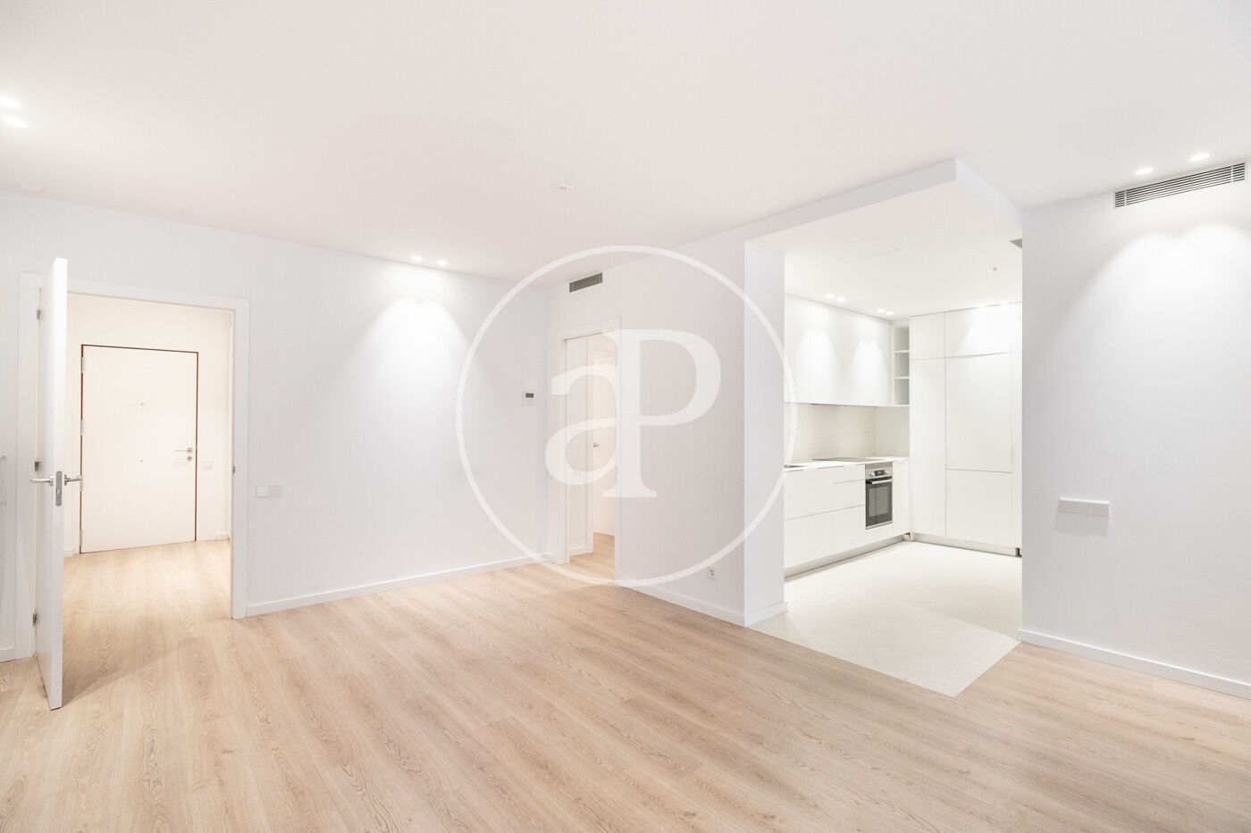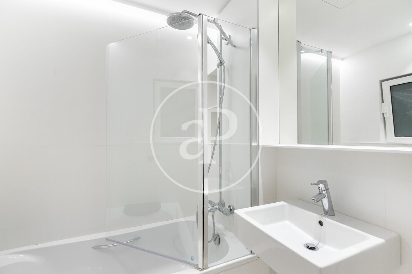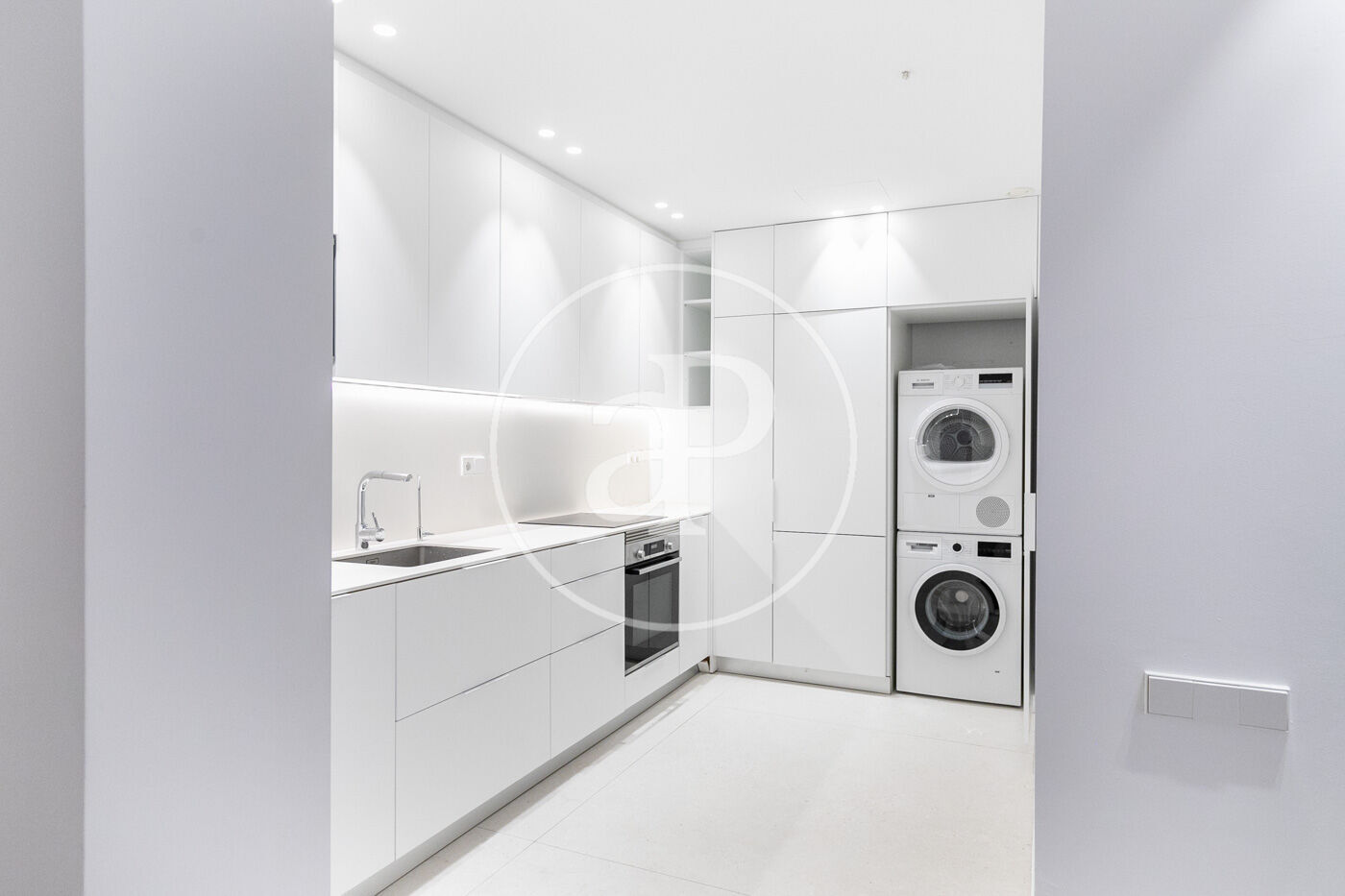 La vivienda ofrece suelos de parquet, armarios a medida en entrada principal y estancias, carpintería de aluminio con doble acristalamiento, climatización por bomba de calor/frio por conductos en todas las estancias y servicio de conserjería ininterrumpido de 08:00 a 22:00 con video vigilancia 24h. También hay posibilidad de parking en la misma finca (no incluido en la renta).