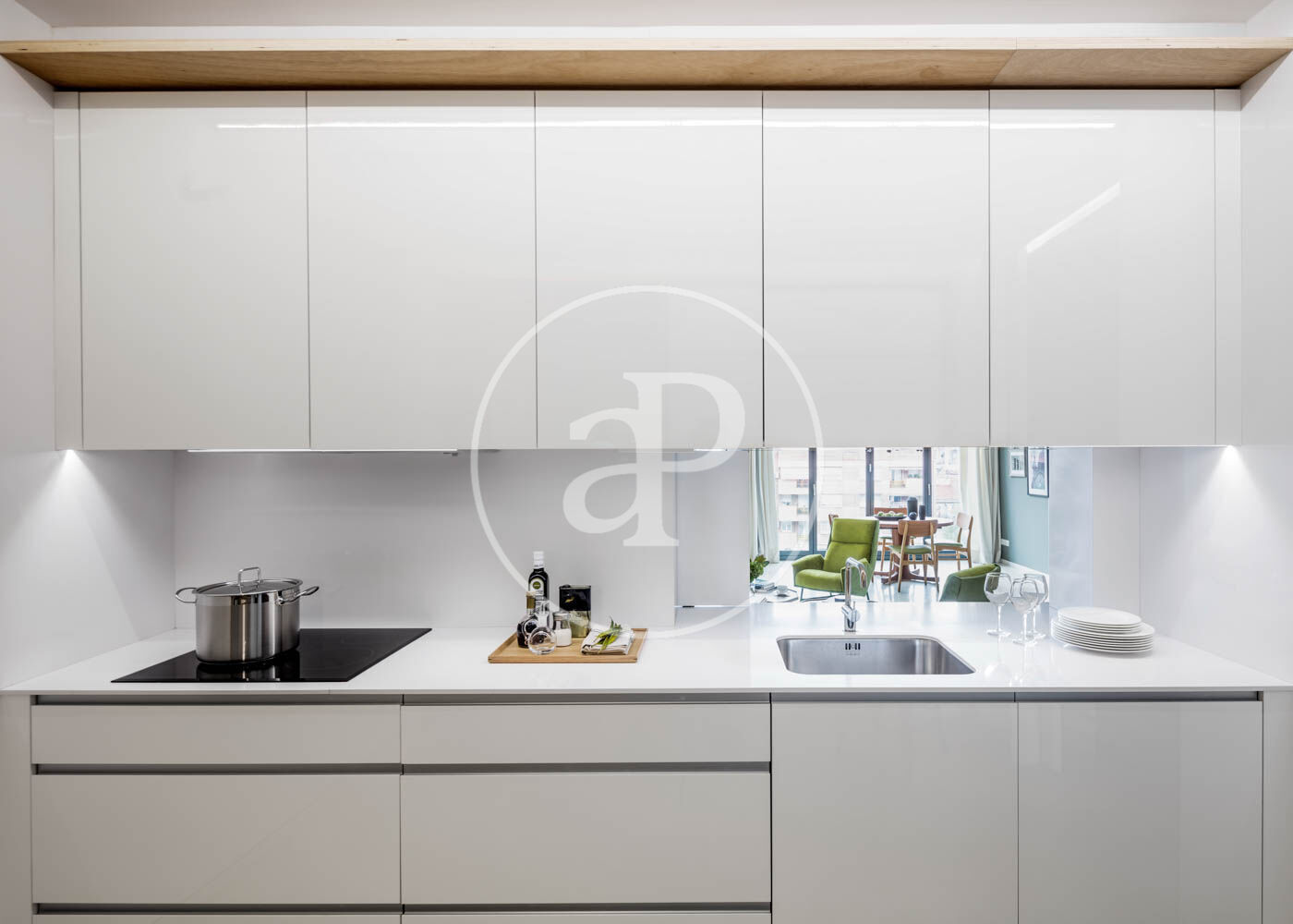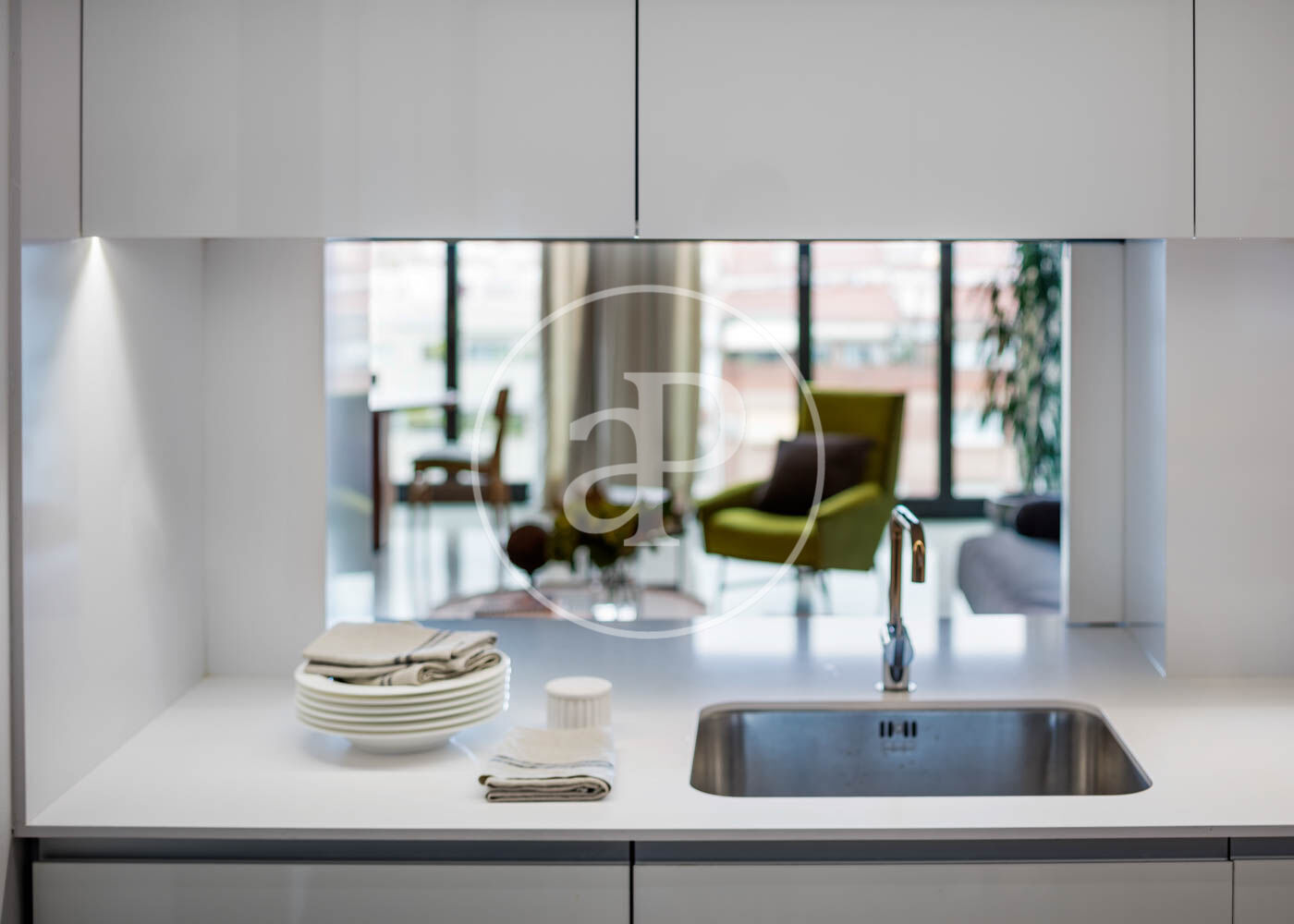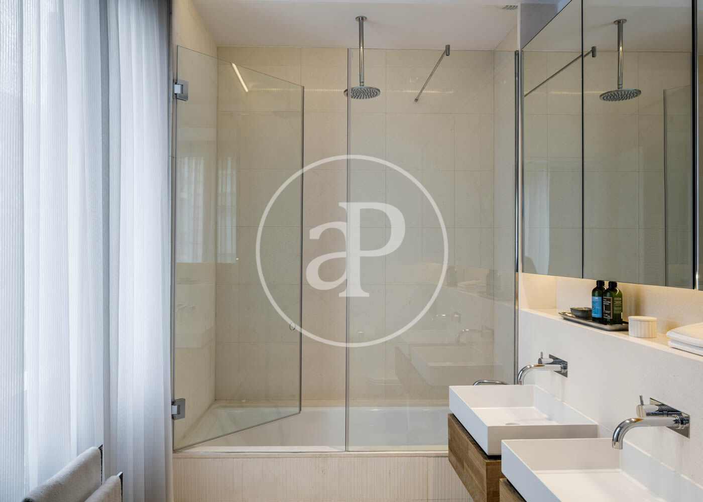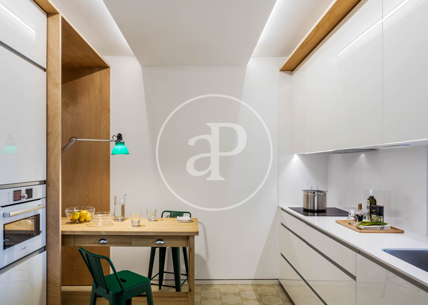 En una ubicación privilegiada, en calle Muntaner, junto a Avenida Diagonal y plaza Francesc Macià, se encuentra este extraordinario piso que combina amplitud, luminosidad y diseño, con posibilidades de personalización para convertirlo en el hogar de tus sueños. Con 217 m² construidos de vivienda y 19 m2 de terraza, esta propiedad destaca por su distribución funcional y detalles cuidadosamente diseñados: • 4 dormitorios, incluyendo 2 amplias suites con baño privado y acceso directo a una terraza de 19 m² con vistas despejadas y tranquilas hacia el patio de manzana. • 2 habitaciones interiores, ideales para invitados, despacho o vestidor, que comparten un baño adicional. • Un salón espacioso y lleno de luz, orientado hacia calle Muntaner, con acceso a una terraza cubierta y vistas a una preciosa finca modernista. La cocina abierta de estilo americano se integra armoniosamente con el salón, ofreciendo un espacio perfecto para disfrutar de momentos en familia o con amigos. Confort y calidad garantizados: • Sol de tarde en el salón y sol de mañana en los dormitorios y terraza principal, maximizando la luz natural en toda la vivienda. • Equipamiento de alta gama, con armarios empotrados, calefacción por gas natural y aire acondicionado. • Ubicado en la 6ª planta de un edificio con ascensor (8ª altura real), con un único piso por planta, lo que garantiza privacidad y exclusividad. • Servicio de conserjería con horarios laborales, para mayor comodidad y seguridad. El piso se encuentra en fase de preparación para su reforma, con un proyecto de diseño representado en los renders del anuncio. Aún estás a tiempo de ajustar este proyecto y adaptarlo completamente a tus gustos y necesidades. Esta excepcional vivienda tiene un precio sin reforma de 2.100.000 euros. lo que convierte esta propiedad en una excelente oportunidad para quienes buscan invertir en un proyecto personalizado en una ubicación privilegiada.
