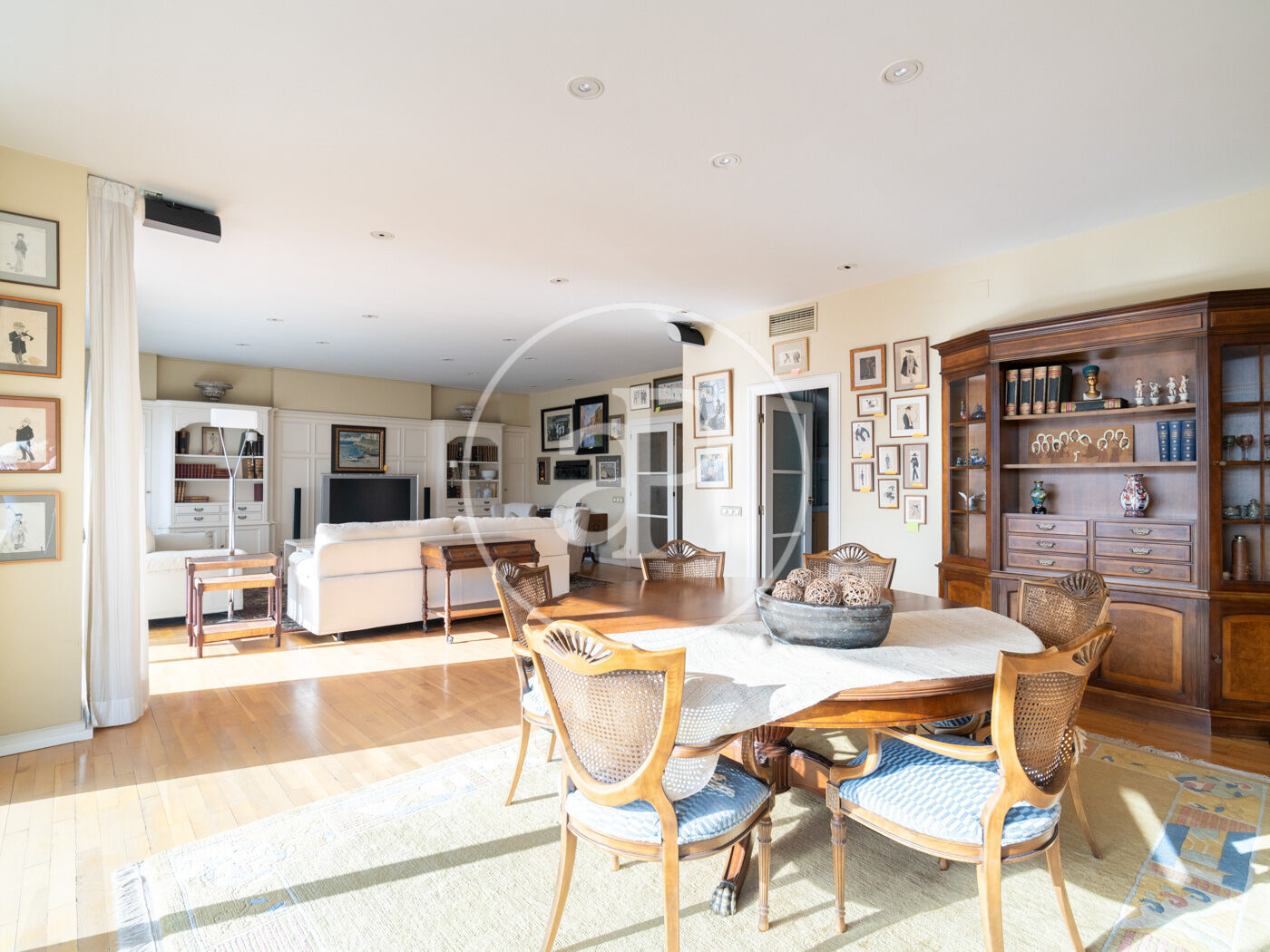 La propiedad cuenta con una zona de día compuesta por un amplio salón comedor, muy luminoso y alegre con acceso a una especial y amplia terraza, una cocina práctica y funcional y zona de servicio con 1 baño y la zona de noche está compuesta por una salita de estar, 5 habitaciones, una de ellas de servicio y dos de ellas dobles en suite y 3 baños.