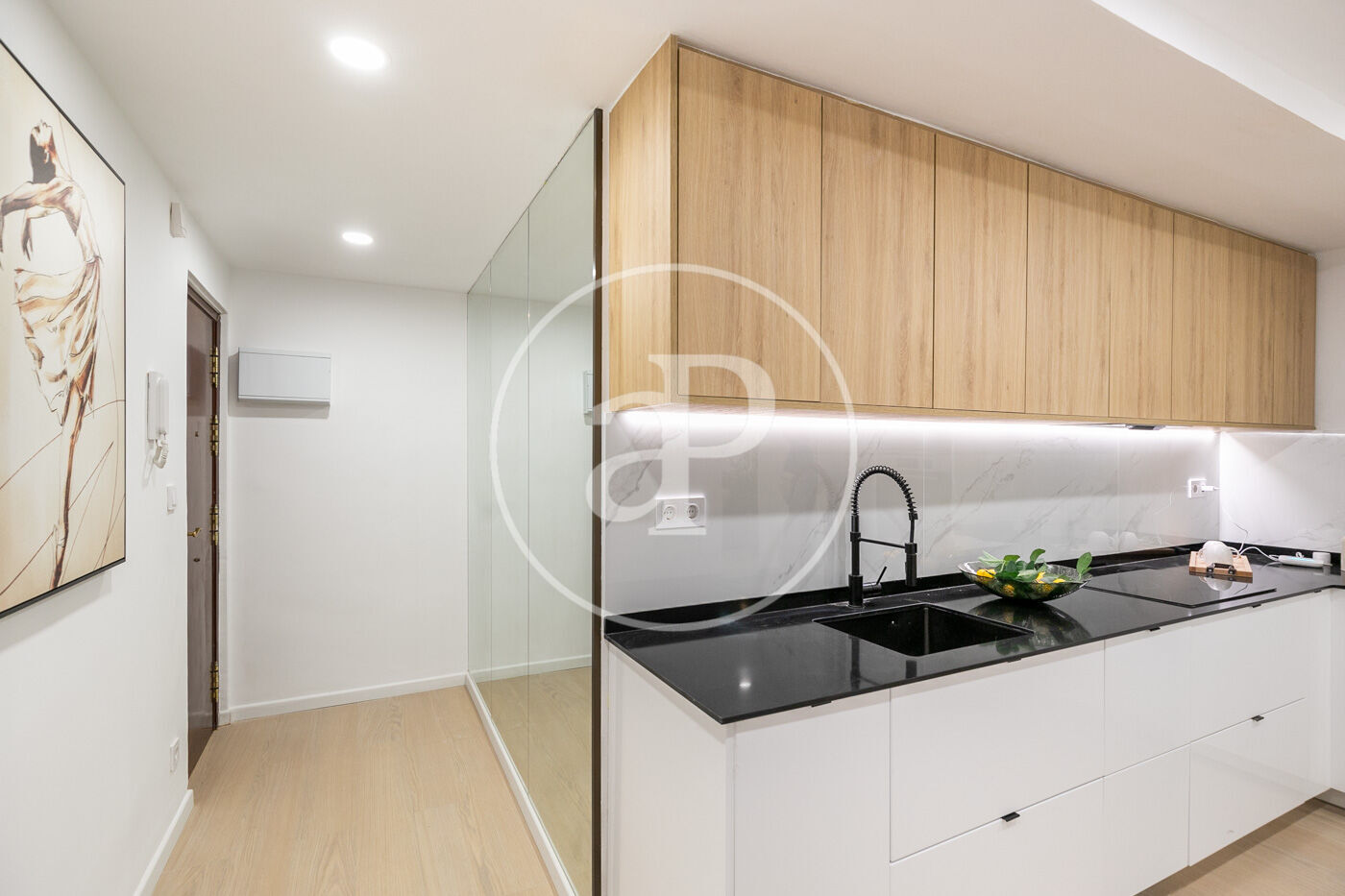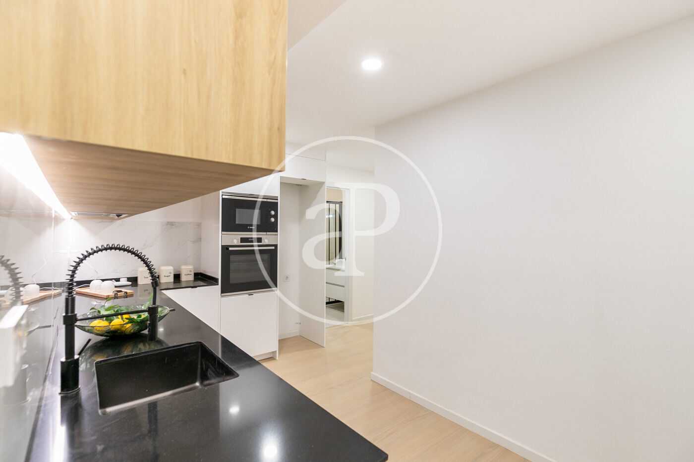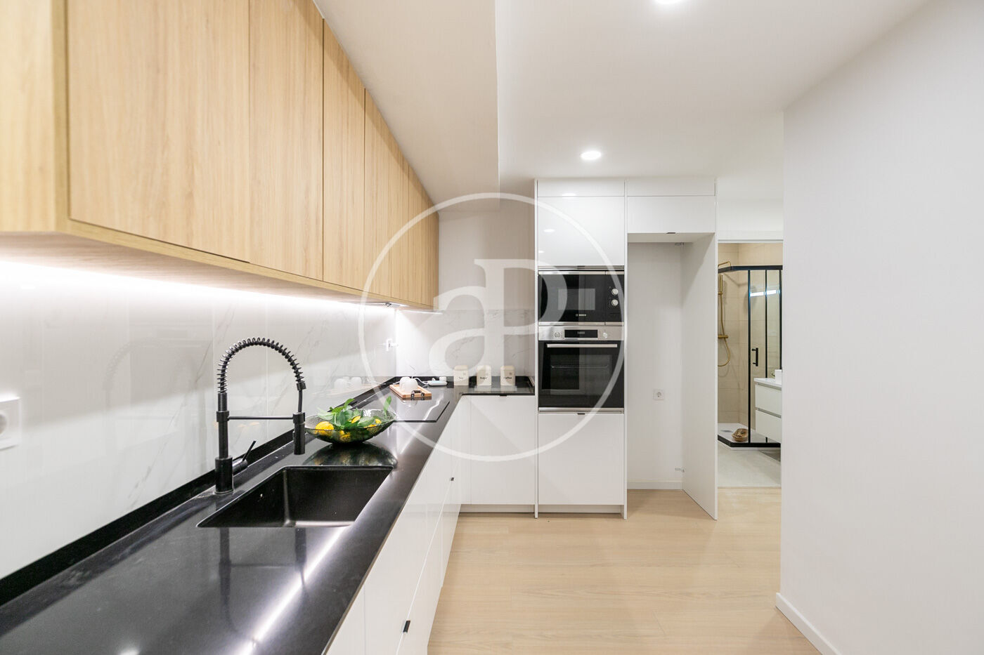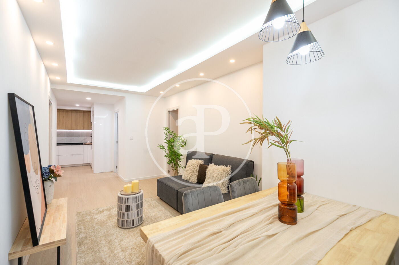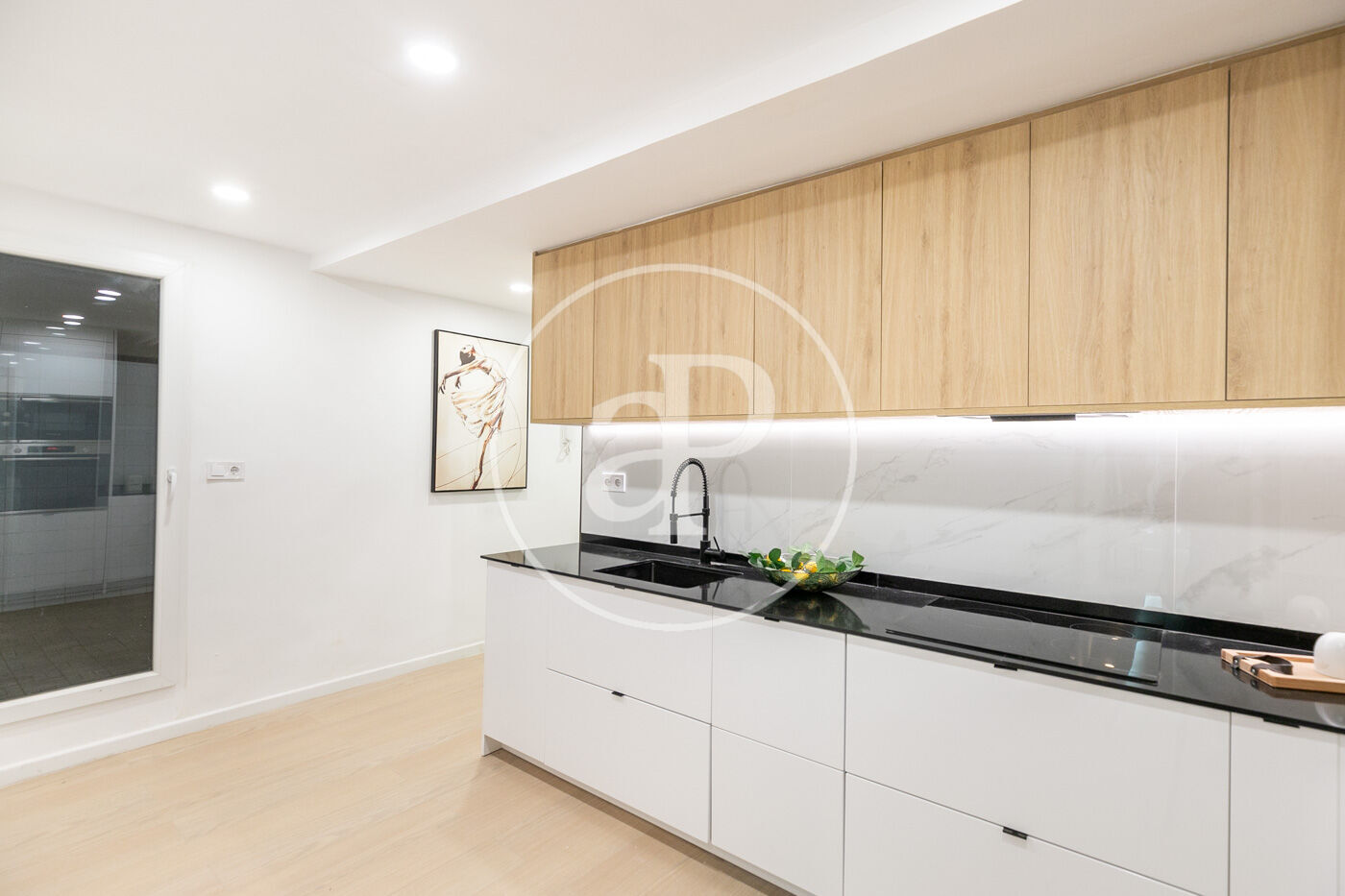 Salón-comedor conectado a una cocina moderna abierta y completamente equipada, ideal para disfrutar de la compañía mientras cocinas o para crear momentos inolvidables con tus seres queridos.
