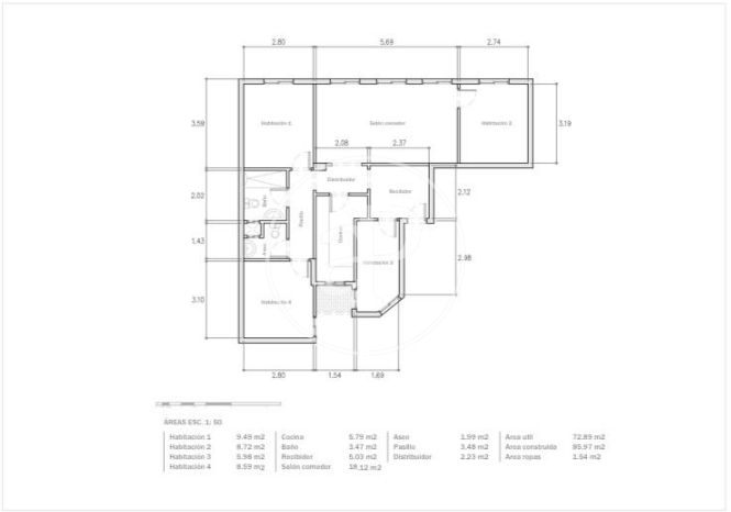 Actualmente está distribuido en un salón comedor con acceso a Madrazo, tres dormitorios, dos exteriores, uno interior y dos baños.