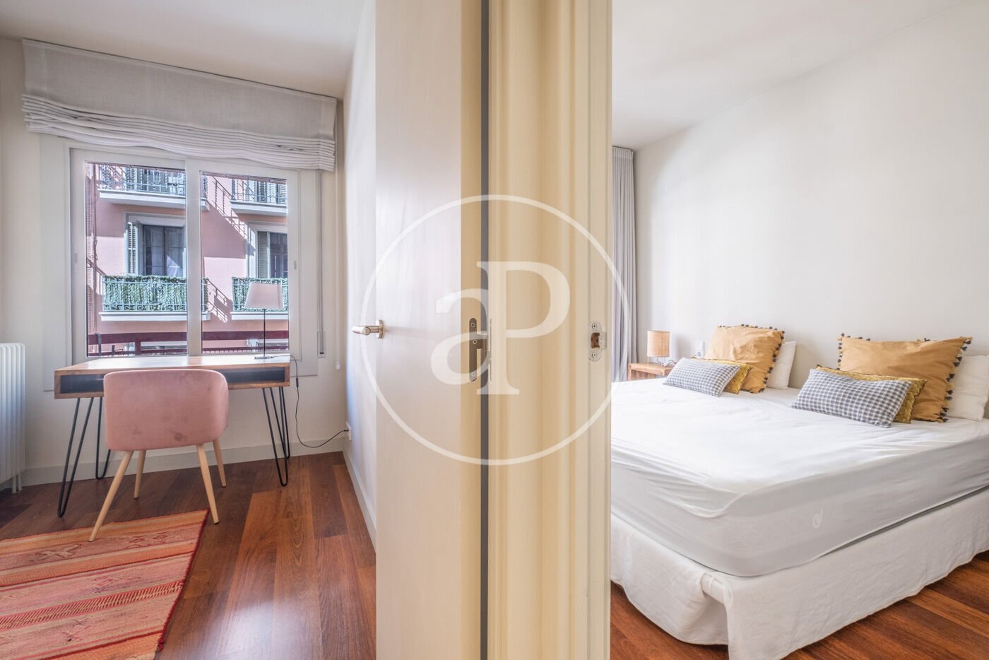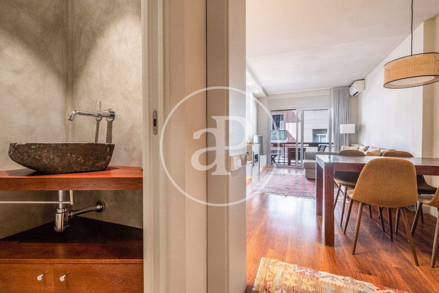Espectacular vivienda con balcón exterior de 8 m2, situado en la Calle Madrazo, recién reformado y amueblado, en una finca del 1978.