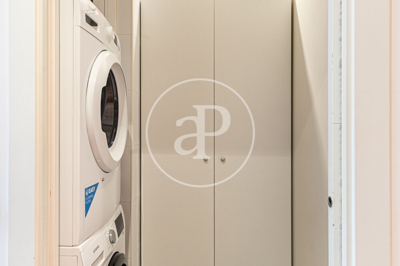 Además, dispone de una práctica zona de lavadero independiente. El inmueble es muy silencioso, perfecto para quienes buscan un refugio de paz en plena ciudad. También está equipado con aire acondicionado para los días más cálidos y calefacción a gas para los meses de invierno, asegurando el máximo confort durante todo el año.