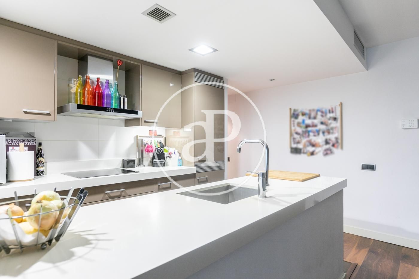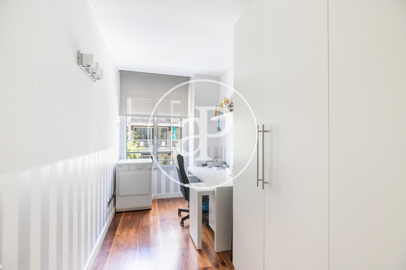 Ubicado en una de las zonas más prestigiosas de Barcelona, en el barrio de Galvany, a un paso del centro de la ciudad y del mercado de Galvany, rodeado de todo tipo de comercios, transporte público y prestigiosos colegios, encontramos esta propiedad situada en un edificio de reciente construcción con piscina comunitaria.