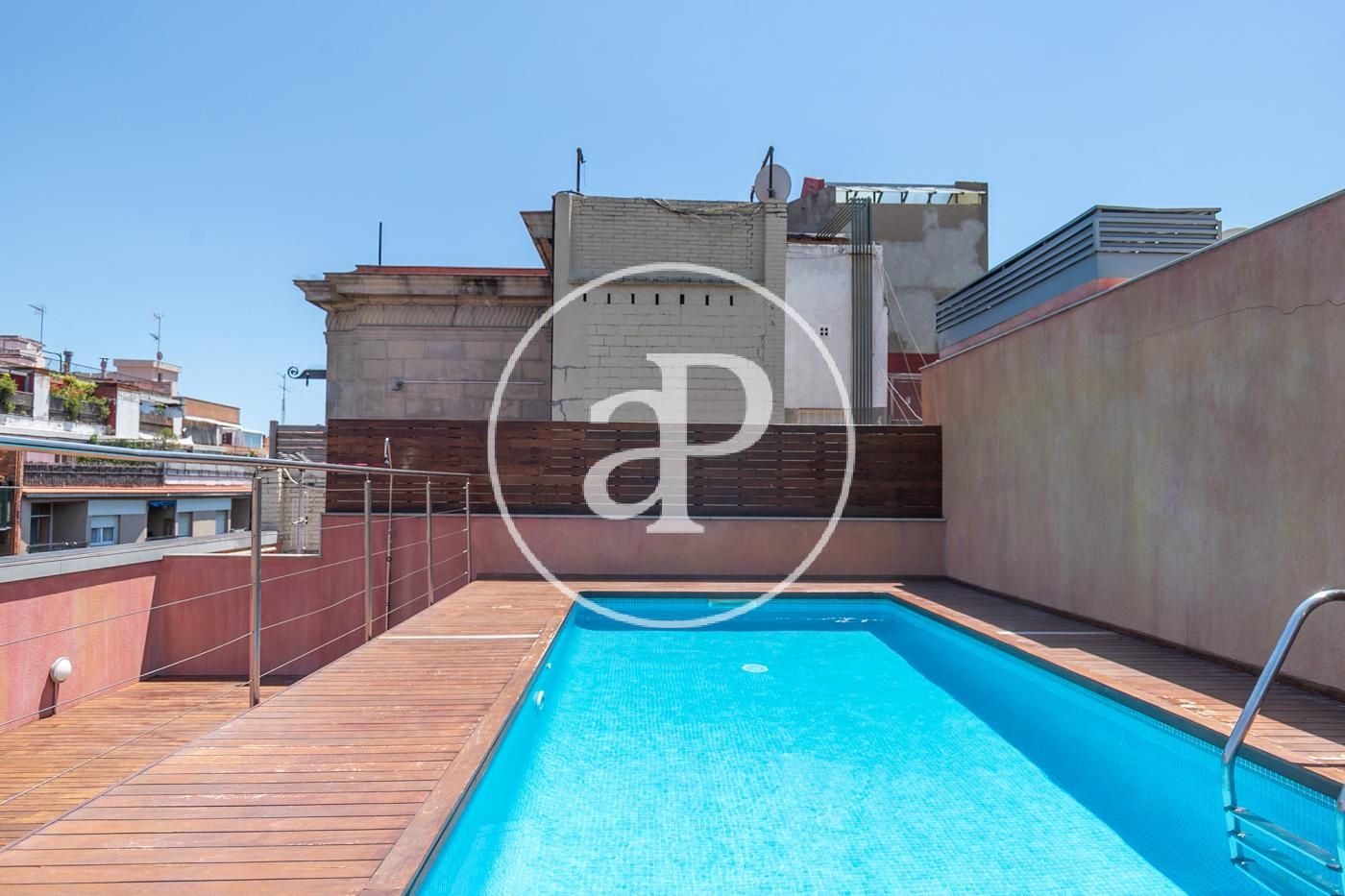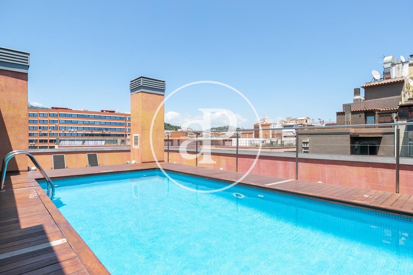 En el terrado del edificio está ubicada la agradable piscina comunitaria con una gran zona de solárium donde se pueden disfrutar de unas maravillosas vistas sobre toda la Ciudad. Oportunidad de adquirir un piso prácticamente nuevo en uno de los más demandados barrios de Barcelona.