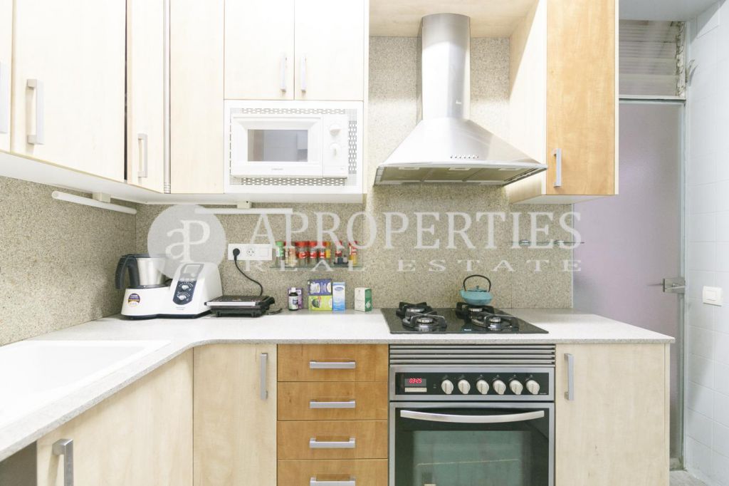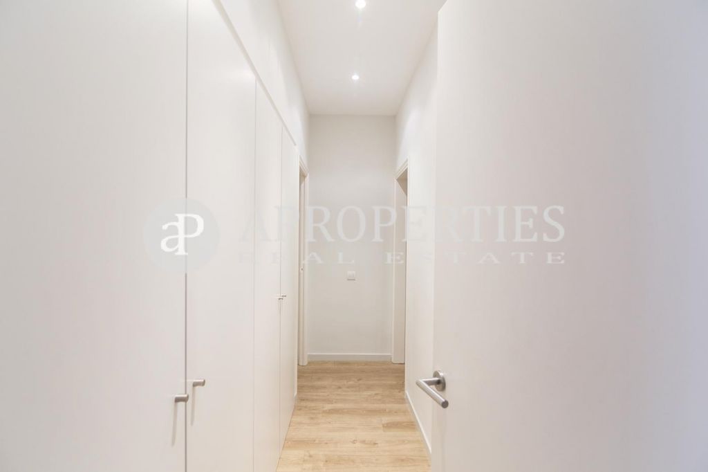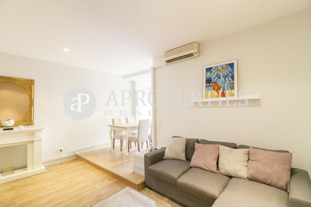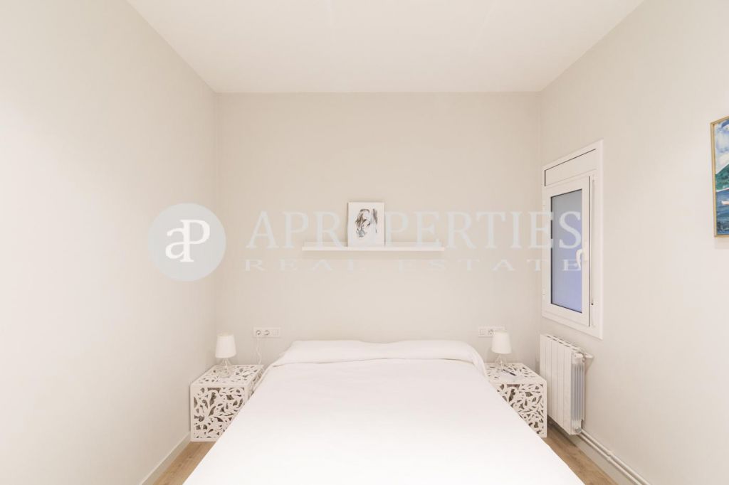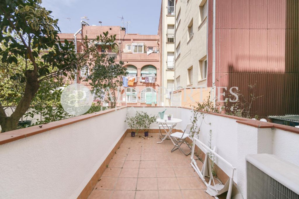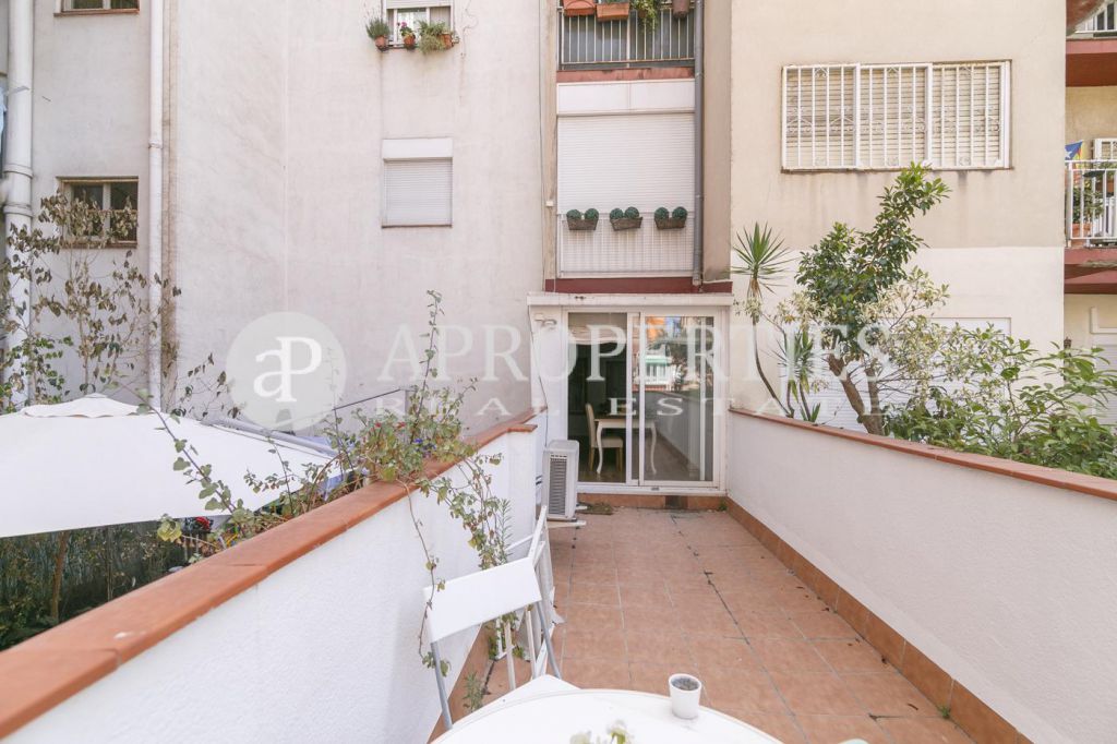Exclusivo apartamento de tres habitaciones con una superficie de 130 m2. Situado en la planta principal (primer piso real), dispone de un generoso espacio diurno que incluye una cocina abierta en isla y acabados de calidad italianos; comedor y patio interior bien iluminado que impregna de verde el interior. La sala de estar forma parte de este espacio diáfano con una galería bañada de excelente luz natural y equipada con mobiliario de diseño. El acabado del suelo es de microcemento de alta calidad, brindando luminosidad y confort. La zona de noche incluye 3 dormitorios dobles y dos baños.El dormitorio principal tiene un baño en suite con ducha y lavabo doble. También incluye un armario empotrado y acceso a la galería trasera con luz natural (ideal para uso de oficina o biblioteca). El segundo dormitorio está situado al final del iluminado pasillo y también cuenta con acceso a la galería trasera con luz natural. El tercer dormitorio, junto al baño principal y tiene una ventana con vistas al moderno patio interior. El baño principal está equipado con bañera y acabados de modernos azulejos geométricos. Madera natural en espiga cubre todo el suelo del área nocturna, otorgando calidez al espacio. La cocina está equipada con electrodomésticos de alta gama y construida a medida para adaptarse al espacio. Se ha instalado una unidad central de aire acondicionado y un sistema de calefacción, además de ventanas de doble acristalamiento para proporcionar buen aislamiento térmico y acústico. Todo esto hace de este apartamento central un santuario para sus propietarios. Situado en el corazón de Vila de Gràcia, este espacioso apartamento recién renovado ofrece la comodidad de un espacio bien diseñado con fácil acceso al bullicioso centro de Barcelona y a todos sus puntos de interés.