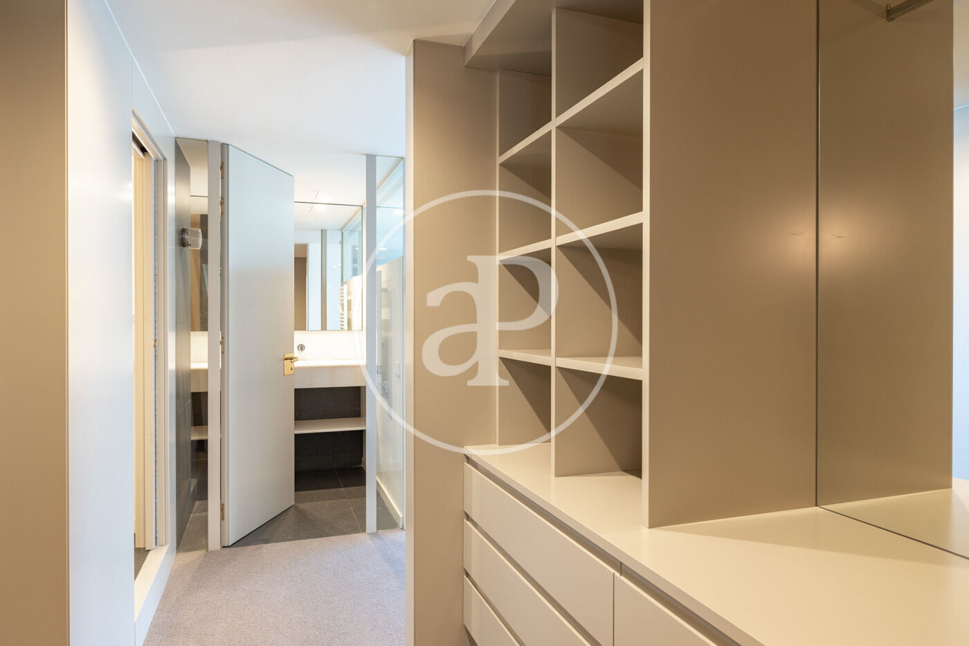La zona de noche está pensada para ofrecer privacidad y confort. La habitación principal, totalmente exterior y muy luminosa, cuenta con una zona tipo despacho independiente y acceso a un baño completo. A través de un cómodo vestidor se accede al dormitorio principal, que dispone de baño en suite. Además, el piso incluye dos habitaciones dobles con armarios empotrados que comparten un amplio baño con bañera.