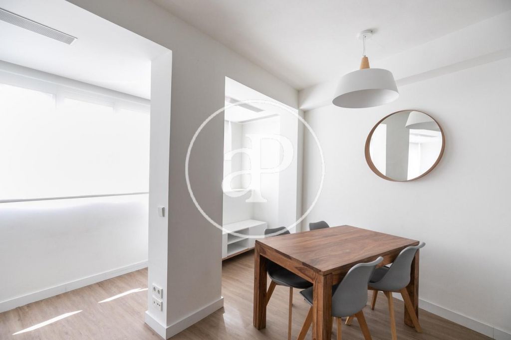 Confortable vivienda reformada a estrenar en el exclusivo barrio de Ruzafa. En la propiedad se ha llevado a cabo una reforma íntegra por un arquitecto en la que se ha utilizado materiales de gran calidad. La vivienda es muy luminosa debido a su extraordinaria orientación, Sur-Este y su magnífica altura (un quinto piso). Además, la altura de sus techos contribuye a crear una sensación mayor de amplitud. Cuenta con una excelente distribución compuesta por un amplio salón comedor en dos ambientes con cocina integrada ( concepto open plan ) el cual tiene ventanales con vistas despejadas. La cocina disfruta de una galería que asoma a un patio interior donde se ubica el lavadero. Ha sido diseñada completamente a medida y se encuentra equipada con electrodomésticos Bosch y encimera de Neolit. La zona de noche se compone de dos habitaciones dobles y dos cuartos de baño completos con ducha de la marca Roca. En la vivienda se ha querido conservar el suelo hidráulico original con la intención de realizar una reforma de contrastes, salvo en el dormitorio principal y en los baños, cuyas estancias se han vestido con un exclusivo microcemento. Este material, de gran resistencia y belleza, confiere a la propiedad un toque moderno atemporal que combina a la perfección con el resto de materiales que componen la vivienda. Los cuartos de baño gozan de un diseño moderno y griferías encastradas de la marca Tres. Además dispone de amplios ventanales de cristal doble climalit con persianas automáticas en las habitaciones y aire acondicionado por conductos. Igualmente, se ofrece la posibilidad de adquirir la vivienda completamente amueblada (precio de mobiliario a consultar). La calidad y el original diseño de esta propiedad ha recibido reconocimiento en diversas revistas internacionales de arquitectura en la que ha sido publicada. Esta fantástica vivienda está situada en la zona de moda de València por excelencia (Ruzafa), a pocos minutos de la Plaza de Toros, el Ayuntamiento, la emblemática calle Colón, y a tan solo dos minutos del Nuevo Parc Central y cuenta con todos los servicios en las inmediaciones. Por otro lado, alrededor de la propiedad encontramos su reconocido Mercado, numerosos y originales comercios, gimnasios, colegios, guarderías o maravillosos restaurantes y bares con exquisitas terrazas dónde disfrutar al sol. La zona está completamente conectada por el transporte público, con una excelente conexión a la playa y a todas las direcciones. Nos encontramos ante una excelente oportunidad de adquirir una vivienda reformada lista para entrar y poder disfrutarla desde el primer momento. No deje escapar esta oportunidad. Concierte una visita con nosotros y venga a visitarla. Estaremos encantados de atenderle.