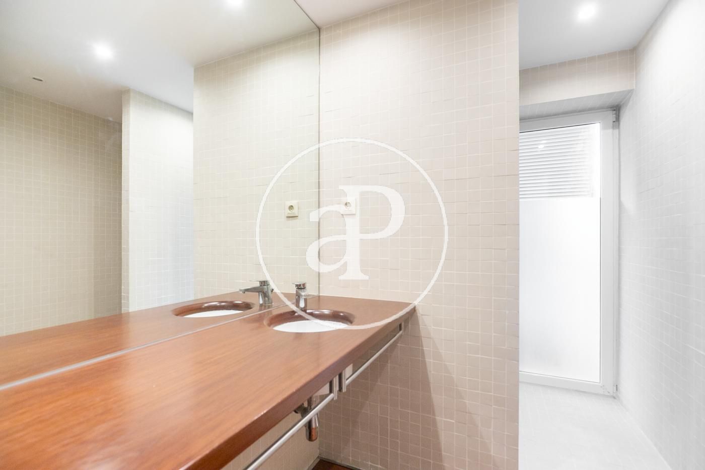 Exclusivo apartamento de tres habitaciones con una superficie de 130 m2. Situado en la planta principal (primer piso real), dispone de un generoso espacio diurno que incluye una cocina abierta en isla y acabados de calidad italianos; comedor y patio interior bien iluminado que impregna de verde el interior. La sala de estar forma parte de este espacio diáfano con una galería bañada de excelente luz natural y equipada con mobiliario de diseño. El acabado del suelo es de microcemento de alta calidad, brindando luminosidad y confort. La zona de noche incluye 3 dormitorios dobles y dos baños.El dormitorio principal tiene un baño en suite con ducha y lavabo doble. También incluye un armario empotrado y acceso a la galería trasera con luz natural (ideal para uso de oficina o biblioteca). El segundo dormitorio está situado al final del iluminado pasillo y también cuenta con acceso a la galería trasera con luz natural. El tercer dormitorio, junto al baño principal y tiene una ventana con vistas al moderno patio interior. El baño principal está equipado con bañera y acabados de modernos azulejos geométricos. Madera natural en espiga cubre todo el suelo del área nocturna, otorgando calidez al espacio. La cocina está equipada con electrodomésticos de alta gama y construida a medida para adaptarse al espacio. Se ha instalado una unidad central de aire acondicionado y un sistema de calefacción, además de ventanas de doble acristalamiento para proporcionar buen aislamiento térmico y acústico. Todo esto hace de este apartamento central un santuario para sus propietarios. Situado en el corazón de Vila de Gràcia, este espacioso apartamento recién renovado ofrece la comodidad de un espacio bien diseñado con fácil acceso al bullicioso centro de Barcelona y a todos sus puntos de interés.