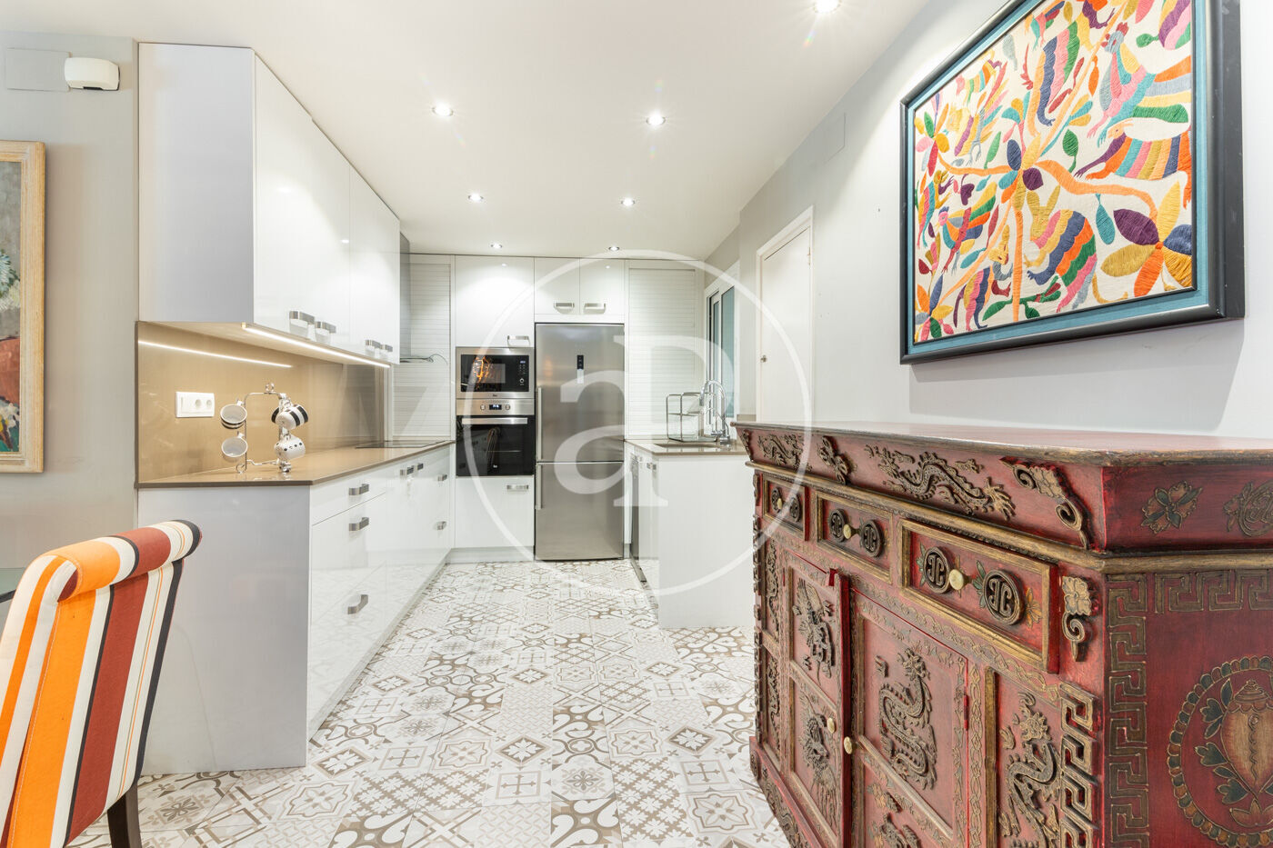 La vivienda dispone de 114 m2 útiles con vistas a la Avda. Josep Tarradellas. Cuando entramos encontramos un gran salón comedor con cocina abierta totalmente equipada con electrodomésticos, seguidamente encuentramos la zona de aguas.