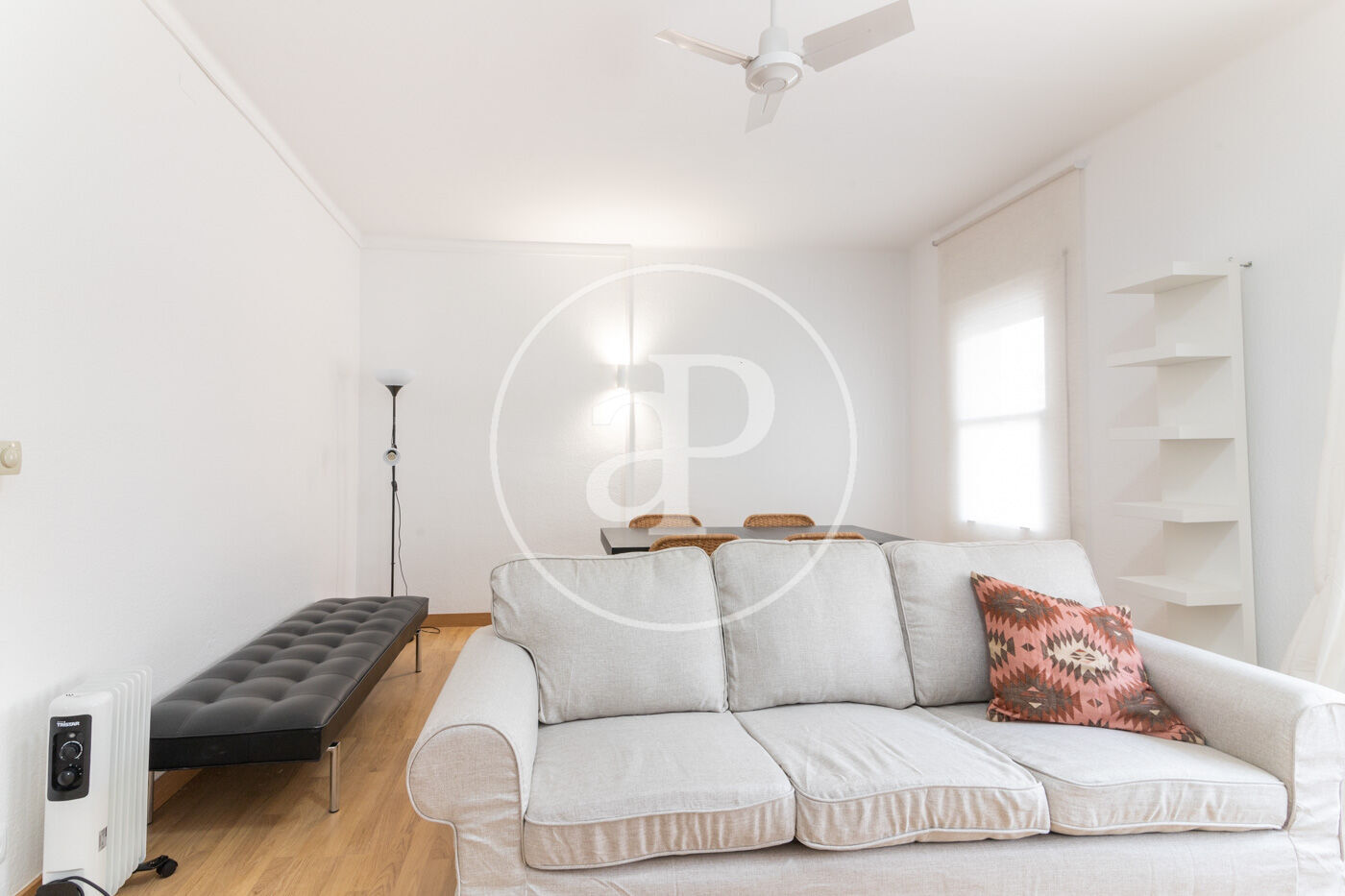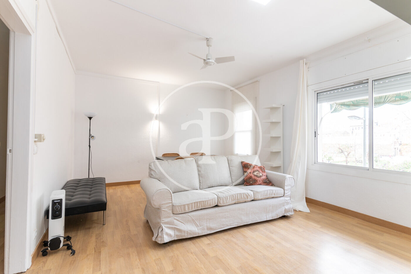 En el remodelado y vibrante barrio de Sants, a un paso de la estación de Sants, rodeado de restaurantes y comercios de la ciudad condal, nos encontramos con este luminoso piso exterior de 73m2 amueblado y con electrodomésticos. No dispone de AC.
