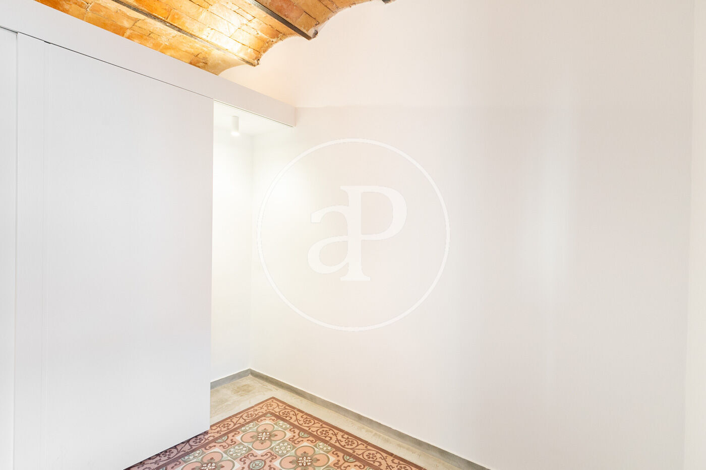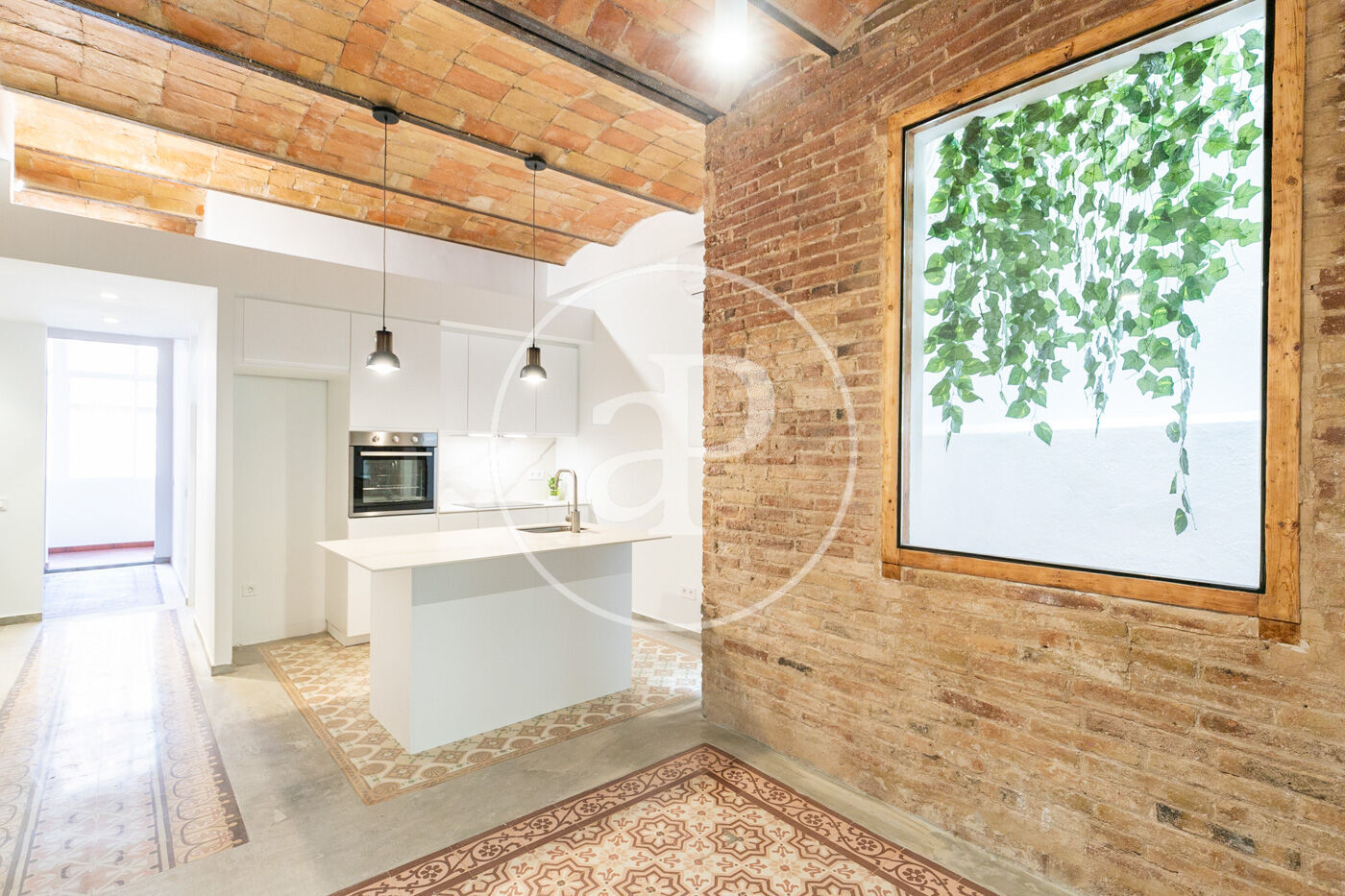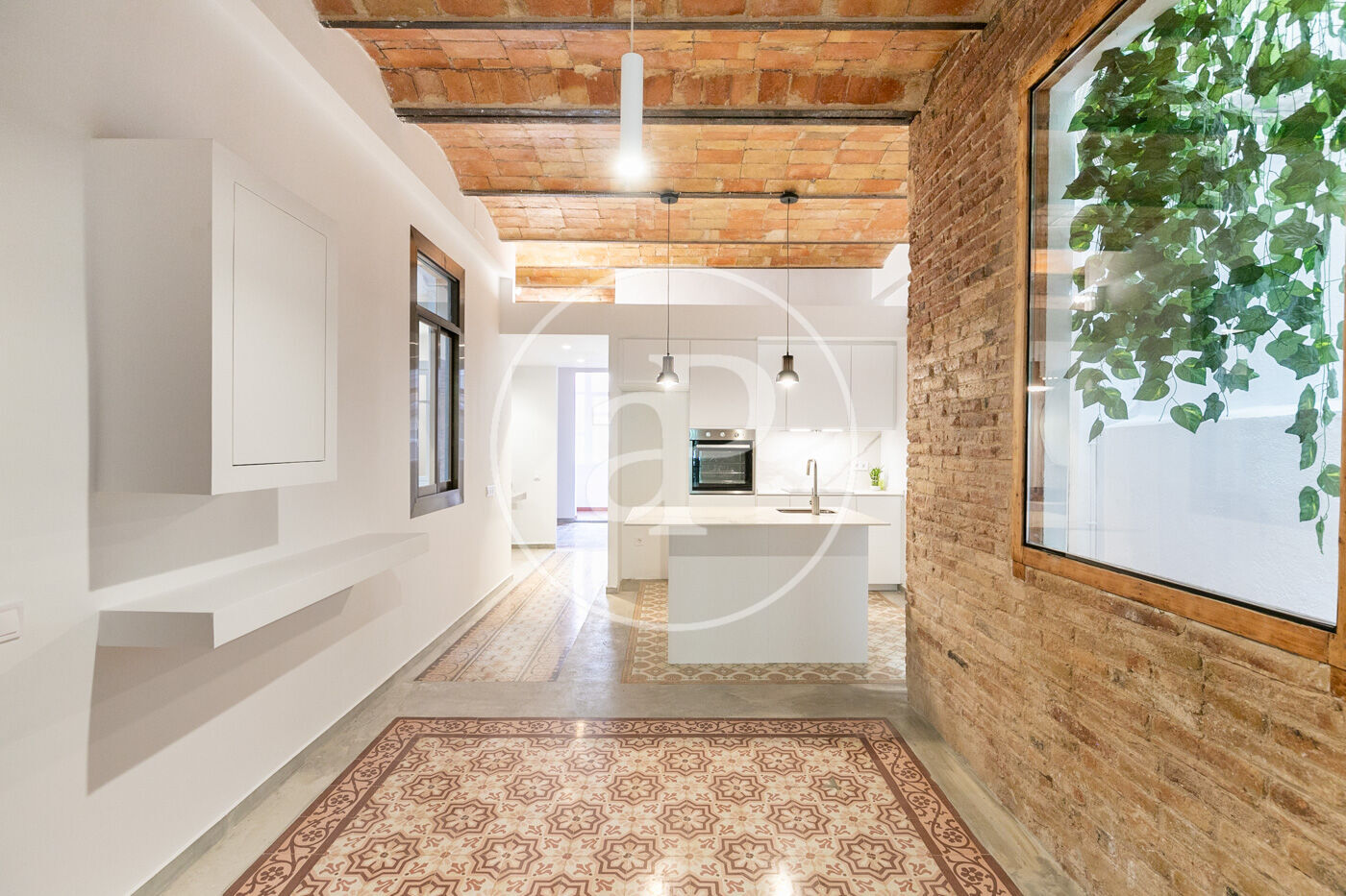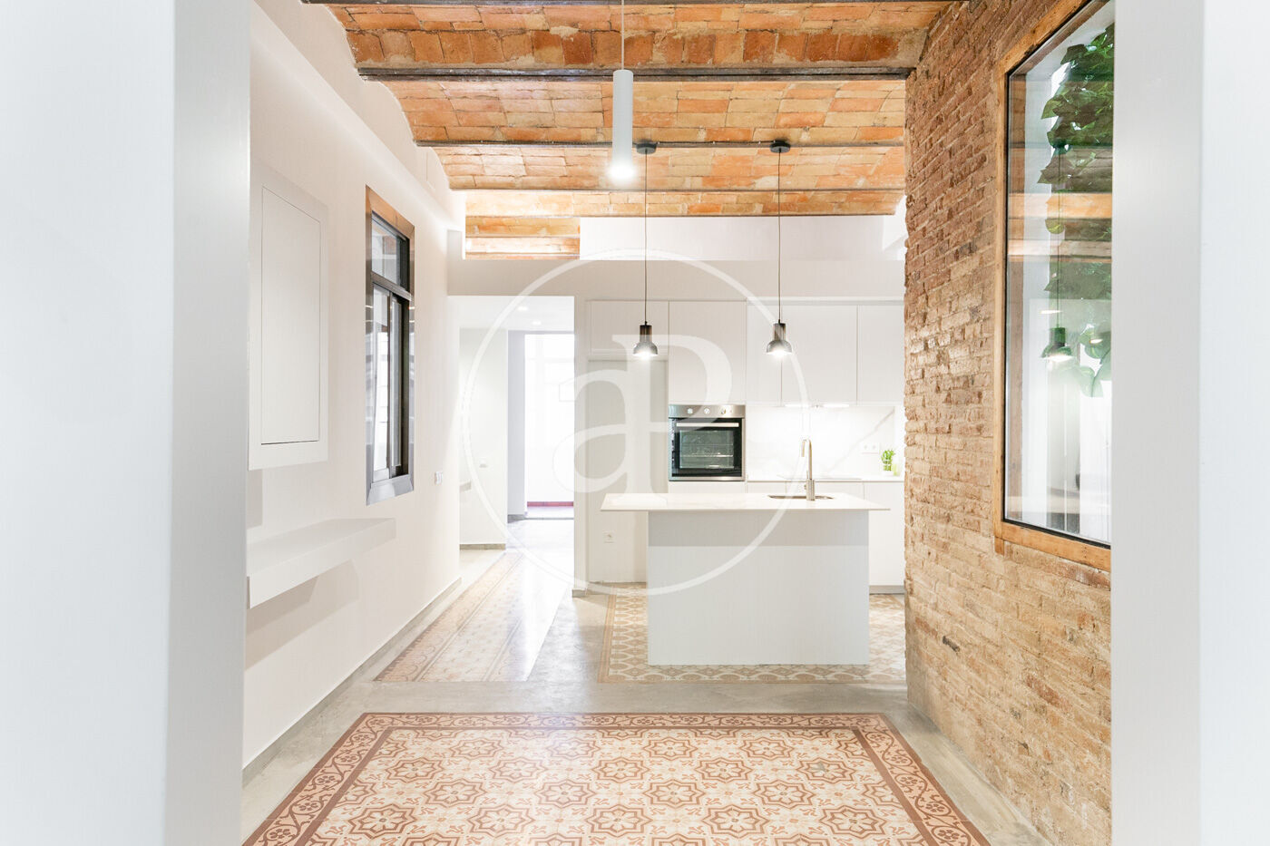 Es un piso muy especial, para aquellos que busquen espacios abiertos, diáfanos, con un diseño moderno y actual, que aprecien lo auténtico, como los techos con volta Catalana las paredes de tocho visto y los suelos hidráulicos.