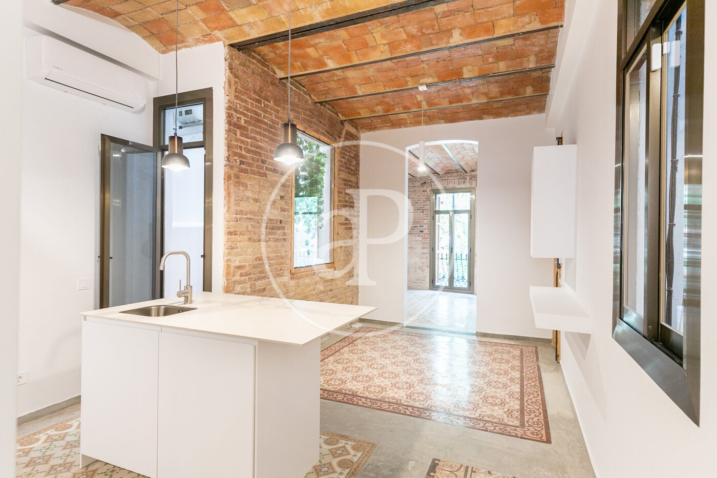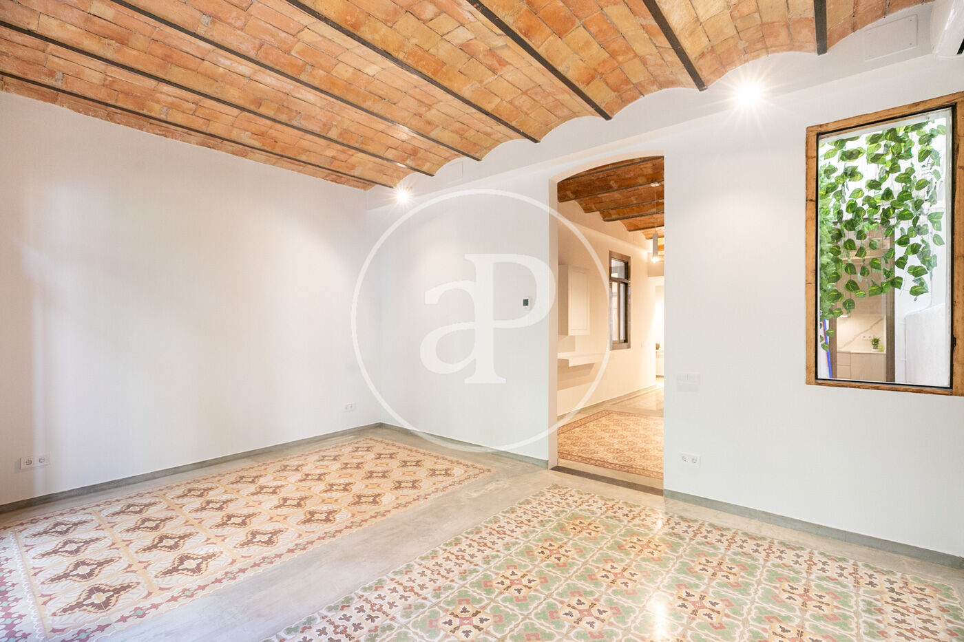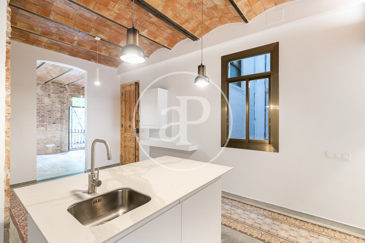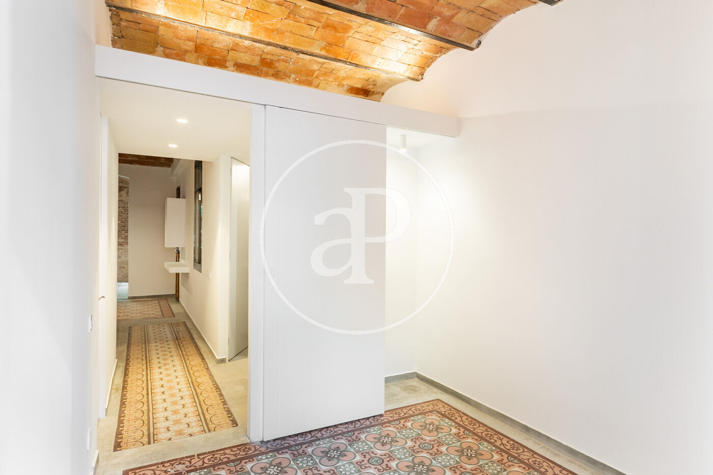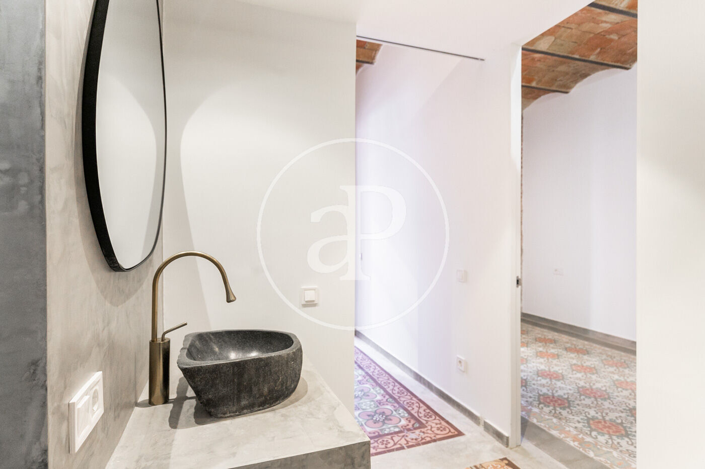 Es un piso muy especial, para aquellos que busquen espacios abiertos, diáfanos, con un diseño moderno y actual, que aprecien lo auténtico, como los techos con volta Catalana las paredes de tocho visto y los suelos hidráulicos.
