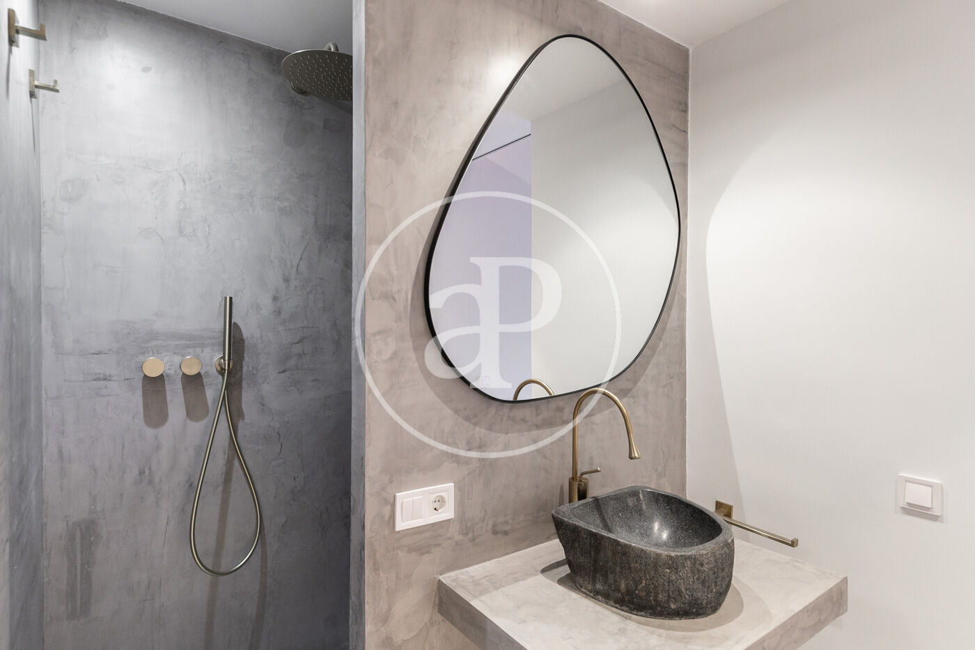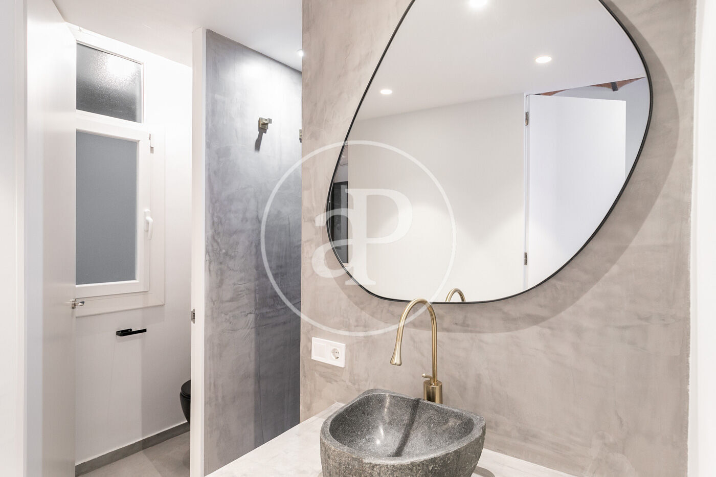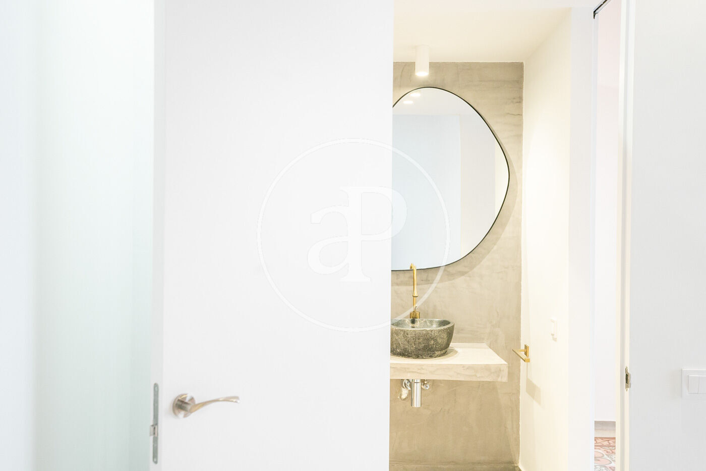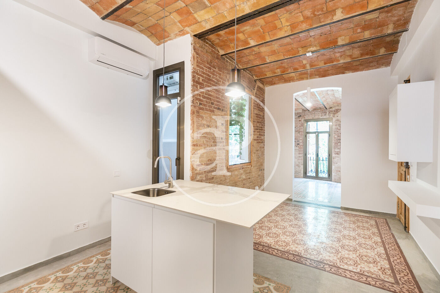 Es un piso muy especial, para aquellos que busquen espacios abiertos, diáfanos, con un diseño moderno y actual, que aprecien lo auténtico, como los techos con volta Catalana las paredes de tocho visto y los suelos hidráulicos.