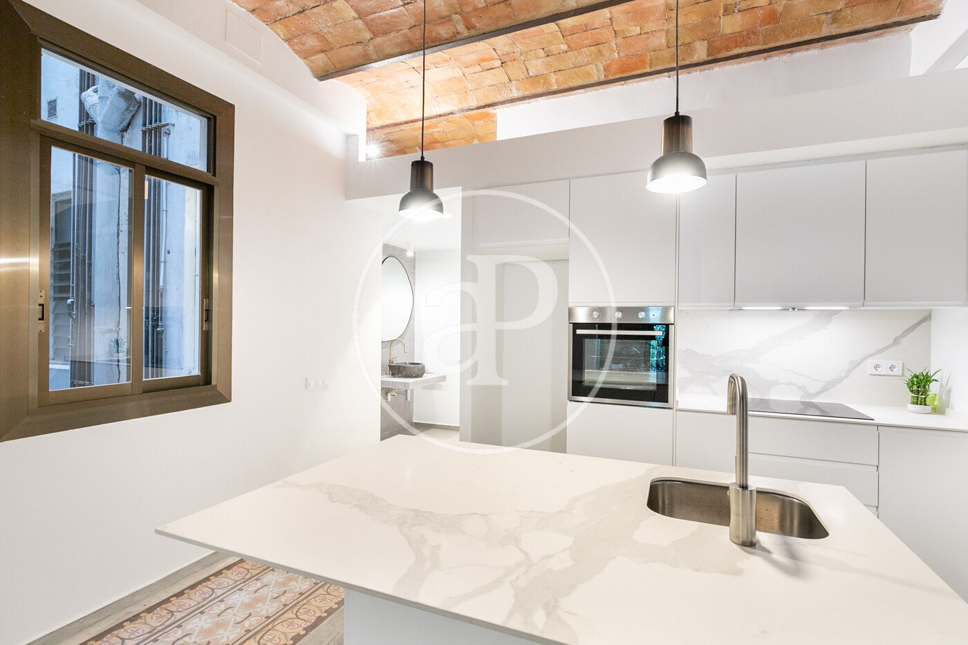Este encantador piso está ubicado en la antigua Casa-Fábrica Tous de principios del siglo XIX del barrio del Raval, con diseño y estética minimalista e industrial a estrenar. Cuenta con servicio de conserjería y espacios de encuentro comunes, piscina comunitaria, huertos urbanos para el autoconsumo, vídeo vigilancia 24h, zona de solárium, zonas ajardinadas, sala polivalente (yoga, eventos, gimnasio, cenas, coworking, etc.), bici aparcamiento y cubierta chill-out y ascensor. Este piso de 58m2 está distribuido en zona de día que cuenta con una cocina completamente equipada con acabados de primera calidad integrada con el salón comedor y salida a un balcón con puerta anti-ruido. La zona noche cuenta con una habitación doble con un baño en suite para la habitación. Techos antiguos con aboveda catalana restaurados, dispone ventanas de doble cristal y aire acondicionado frio/caliente por conductos. El piso se entrega completamente amueblado. Hay que añadir 150,00 euros mensuales de pago de comunidad en el precio del alquiler. ¡DISPONIBLE EL 01 DE JUNIO DE 2025. ¡Ideal para parejas o una sola persona! La finalidad del contrato es temporal. La realidad del mobiliario puede no corresponder exactamente con las fotografías mostradas en este anuncio.* En cumplimiento de la Ley 12/2023 y la Llei 18/2007 informamos que:Índice de R.P.LL: 15,00 € / m2 Precio de referencia estatal 1.031,00 €Renta último contrato de arrendamiento: 1.500,00 €