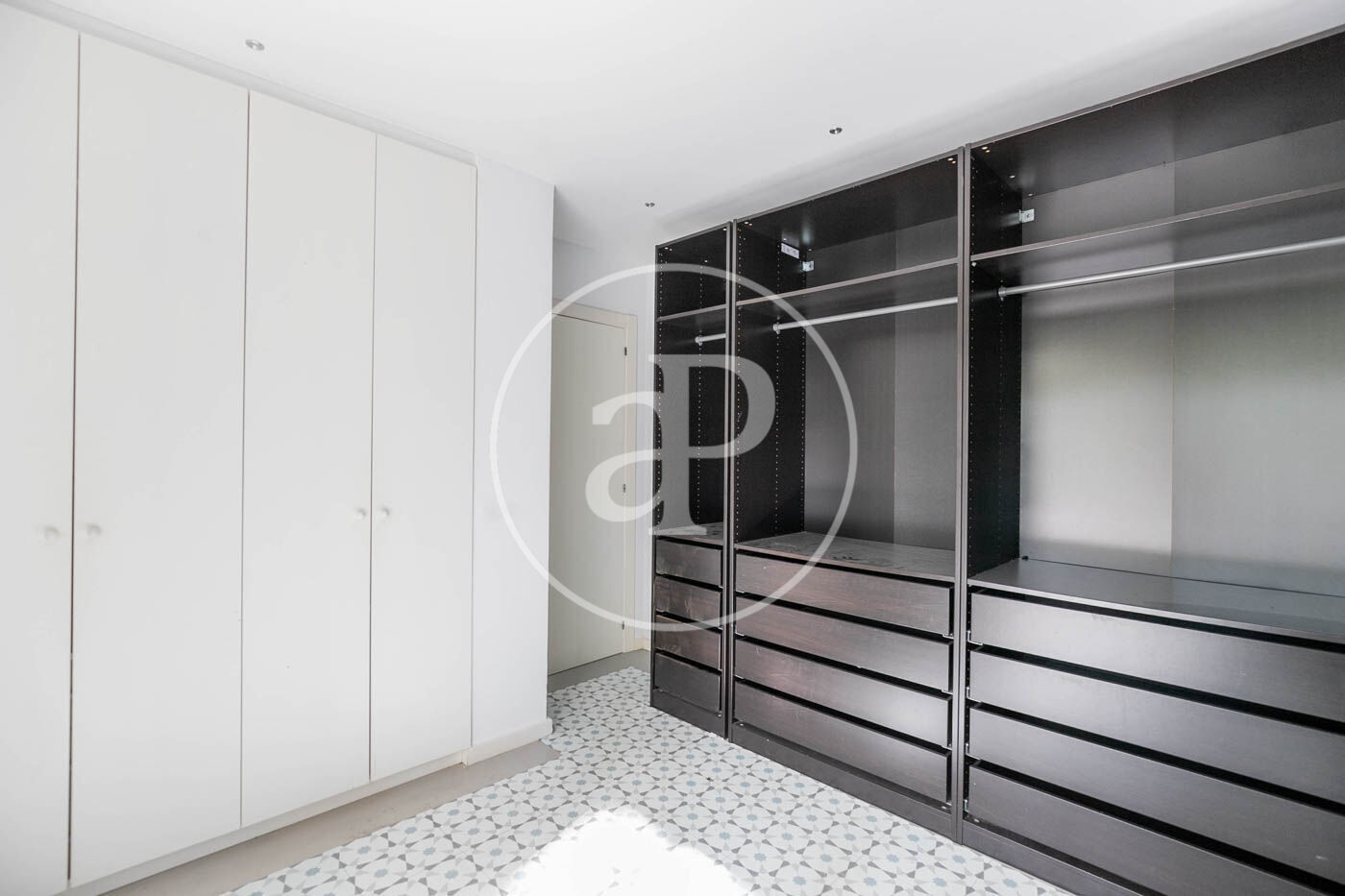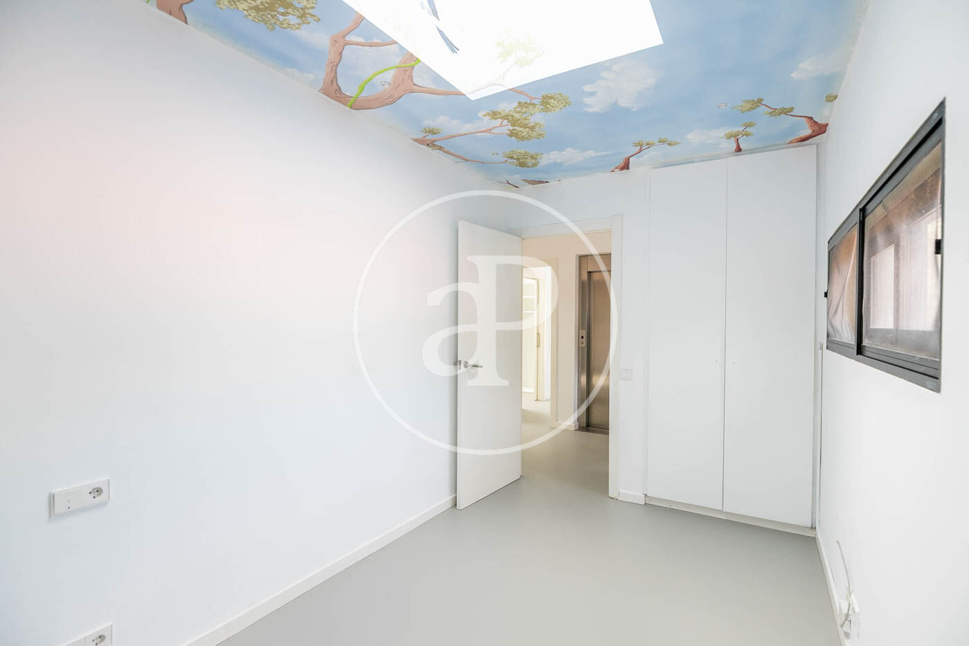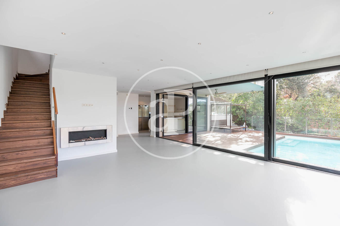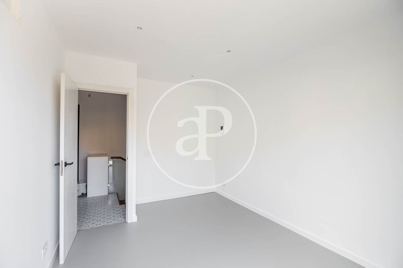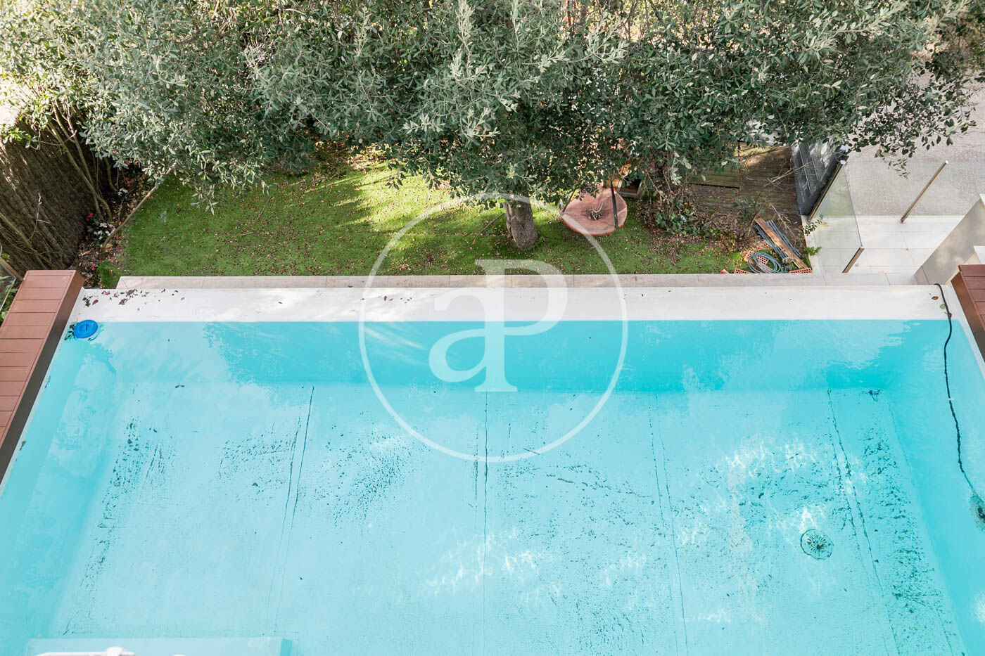 Se trata de una maravilla casa, en un enclave único en las planas de Valvidriera, a escasos metros de los ferrocarriles, a unos cinco minutos caminando, para acudir a Barcelona ciudad, la parada es la estación Baixador de Valvidriera, para llegar a Sarria sólo hay una parada intermedia, Peu del funicular, este mismo tren pasa por Gracia, Plaza Cataluña y en la otra dirección a San Cugat a 25 minutos, o sea está muy bien comunicada. La casa consta de cuatro dormitorios, un quinto polivalente y tres baños, distribuidos en tres plantas, cabe destacar la luz, es la gran protagonista de esta casa.