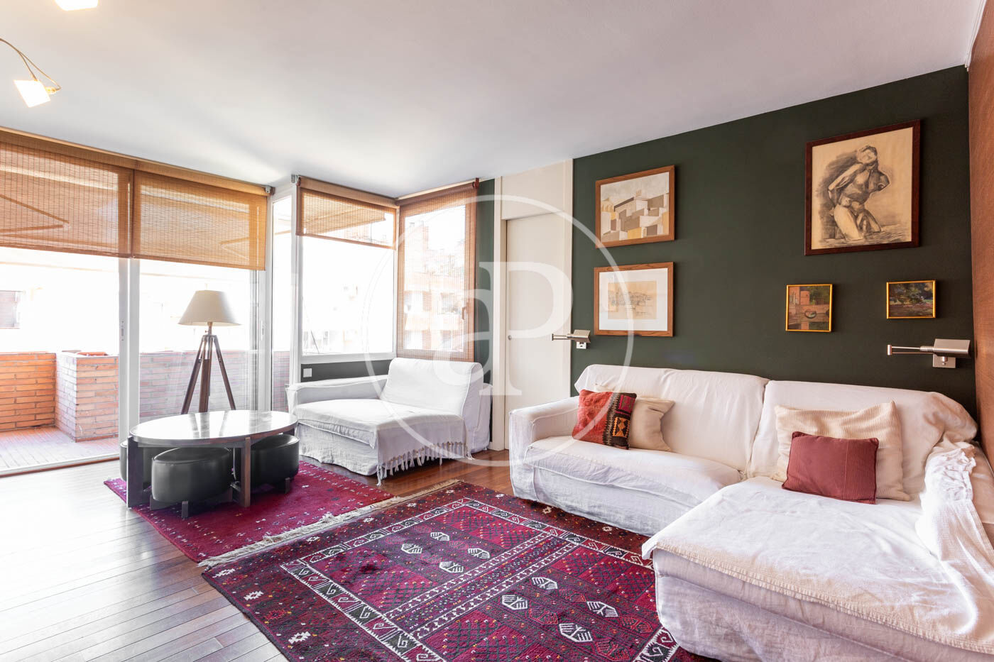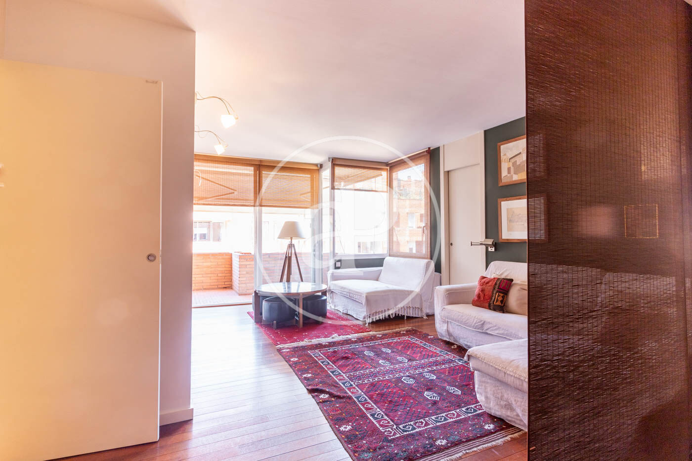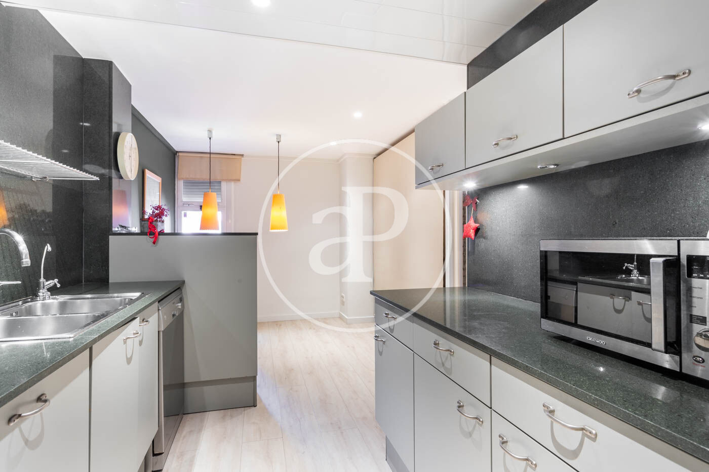 Nos encontramos con un piso en Sarria totalmente reformado con terraza y parking en la misma finca.