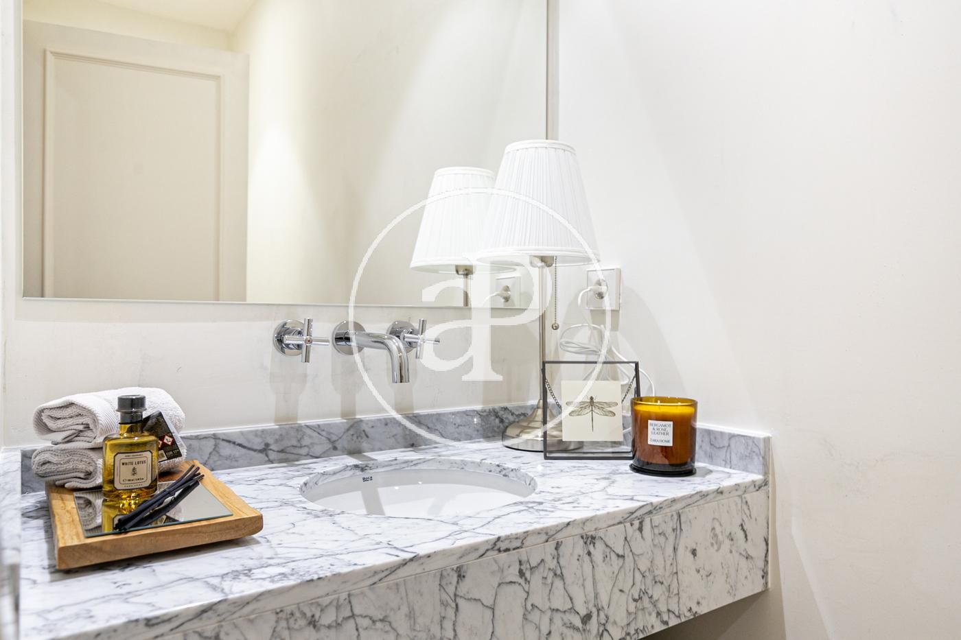 En el otro lado del piso tenemos tres habitaciones dobles y dos baños. Una de las habitaciones es en suite. Todas ellas con armarios.