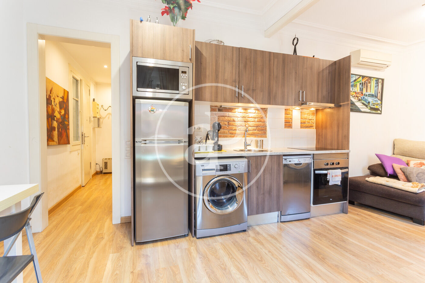 El piso cuenta con una cocina funcional y un baño bien distribuido. Su ubicación permite disfrutar de la esencia del barrio, con calles empedradas, comercios cercanos y un ambiente único.