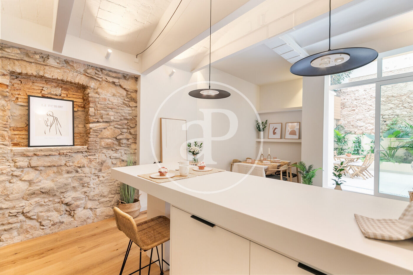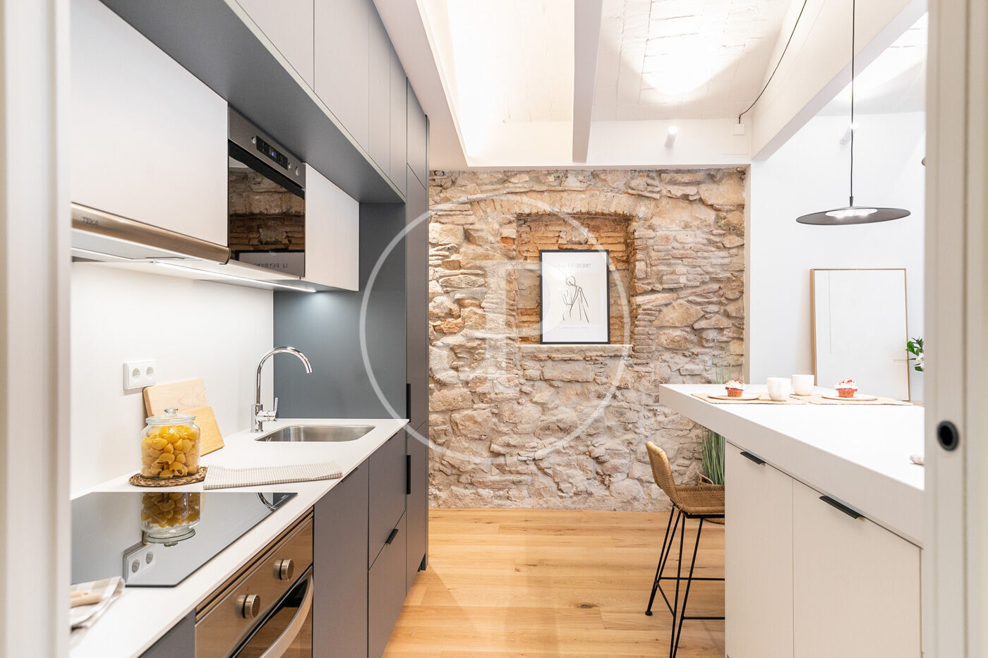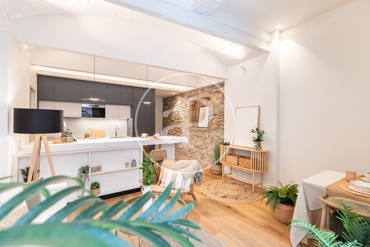 Totalmente reformado, exterior, cocina integrada al salón- comedor, con grandes ventanales que da a la terraza disfrutable. Consta de tres habitaciones una doble en suite y dos individuales y otro baño completo. Suelos de parquet, aire acondicionado y calefacción por conducto individual. Paredes con piedra vista y vuelta catalana en alguna zona de la vivienda.