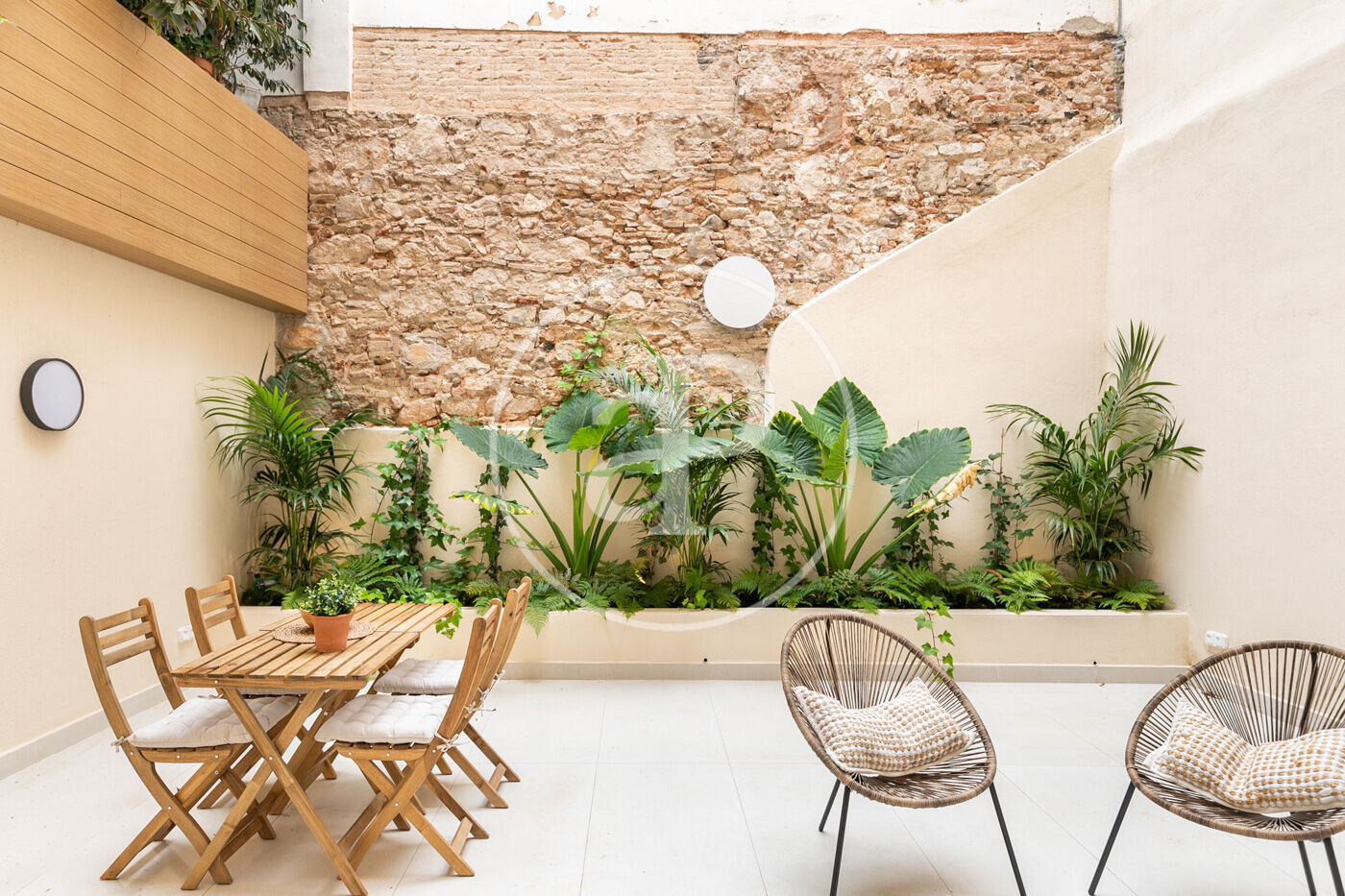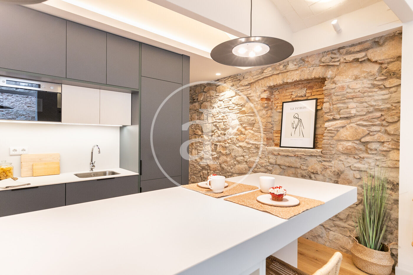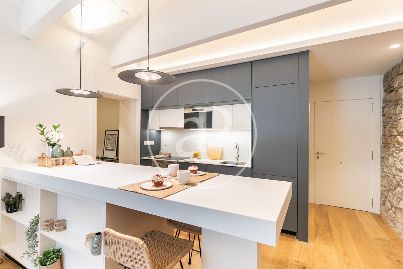 Totalmente reformado, exterior, cocina integrada al salón- comedor, con grandes ventanales que da a la terraza disfrutable. Consta de tres habitaciones una doble en suite y dos individuales y otro baño completo. Suelos de parquet, aire acondicionado y calefacción por conducto individual. Paredes con piedra vista y vuelta catalana en alguna zona de la vivienda.