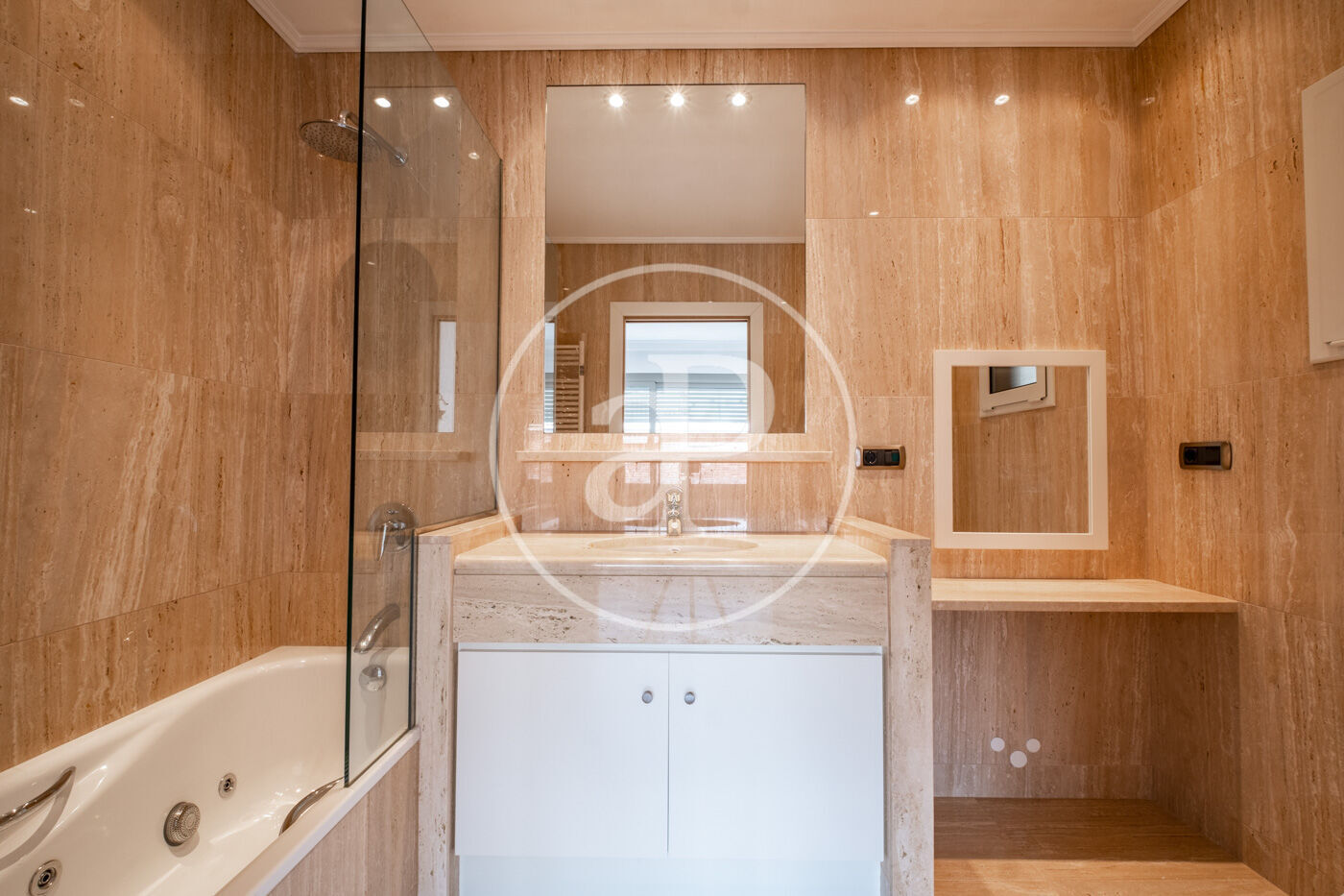 La zona de noche está compuesta actualmente por dos habitaciones en suite, que podrían convertirse fácilmente en tres habitaciones, la suite principal, dispone de dormitorio, vestidor y despacho o salita estar.