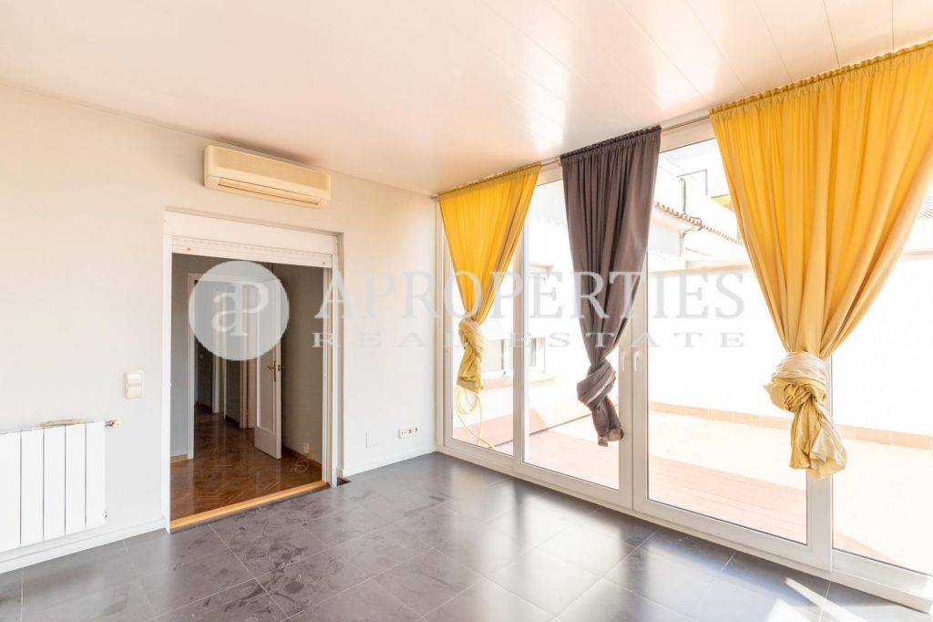 Al lado del Turó Park encontramos esta bonita propiedad de aproximadamente unos 140m². Al entrar en el piso nos encontramos con un hall de entrada donde se accede a la zona de día que consta de un salón-comedor con salida a una terraza de 15m² con unas magníficas vistas al Turó Park, una cocina equipada con zona de aguas y una habitación con baño completo.