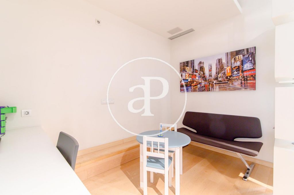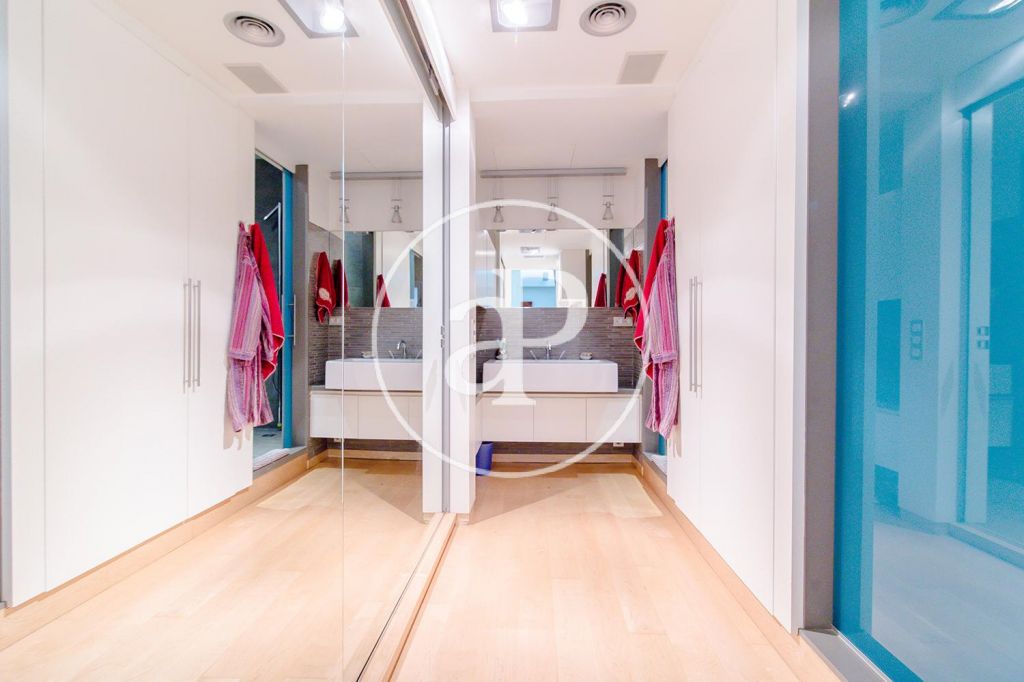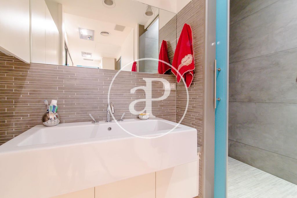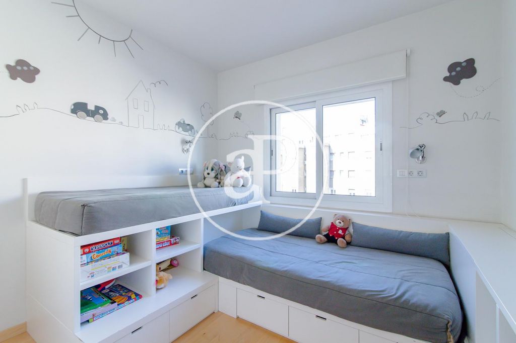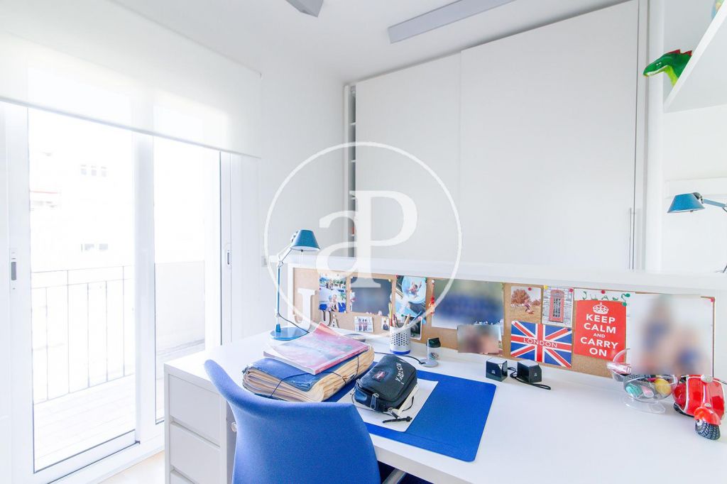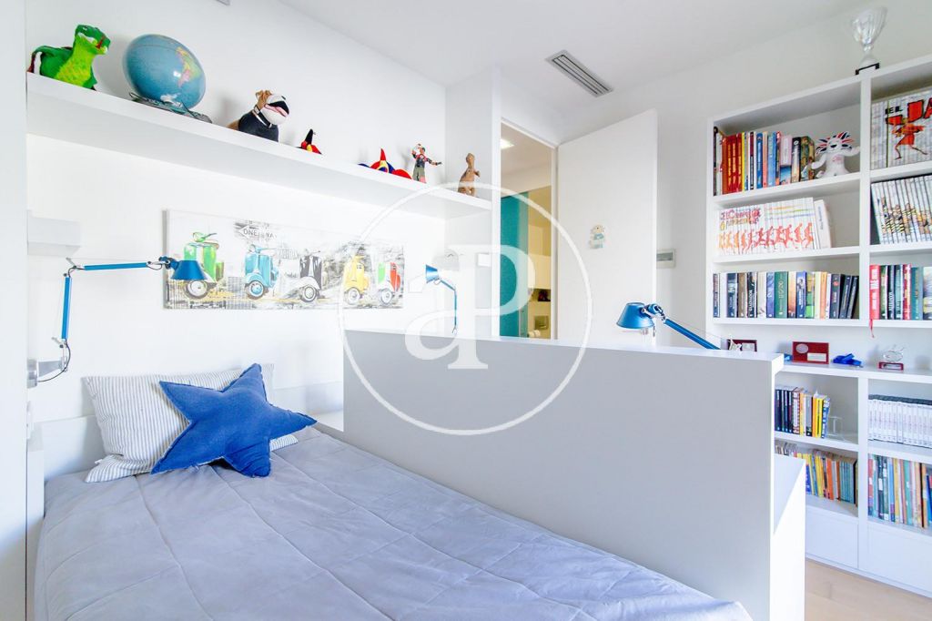 En la zona noche encontramos tres habitaciones principales, una suite con gran vestidor y otras dos habitaciones que comparten un cuarto de baño completo. Estos dos dormitorios infantiles están compuestos por mobiliario hecho a medida, uno doble y otro individual. En el pasillo encontramos una zona amplia habilitada como zona de estudio, juegos y sala de TV. Posibilidad de parking cercano.