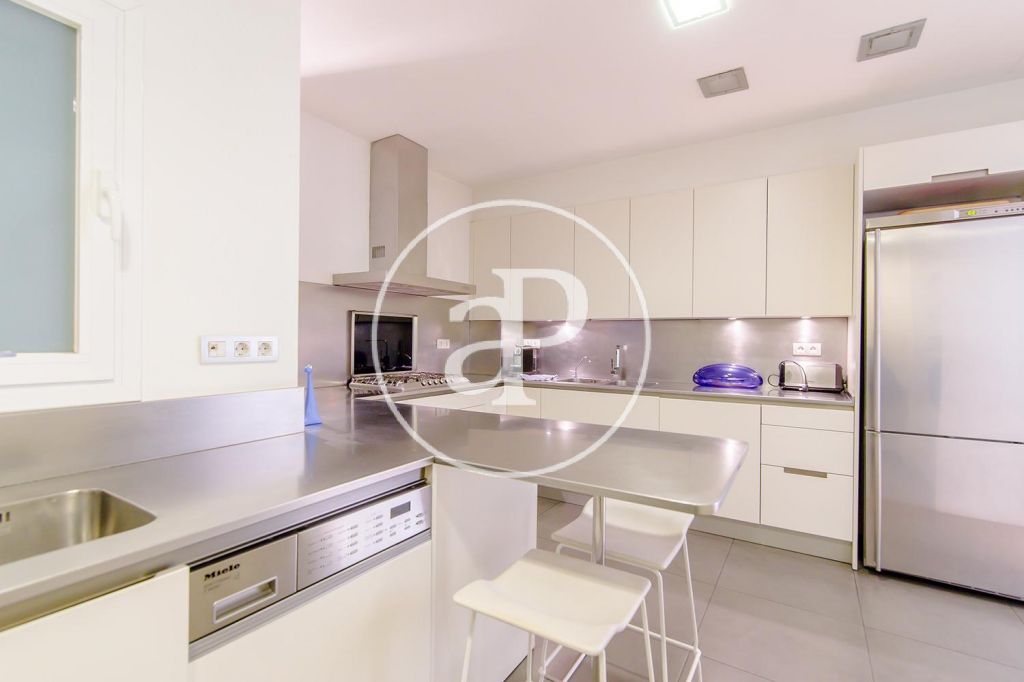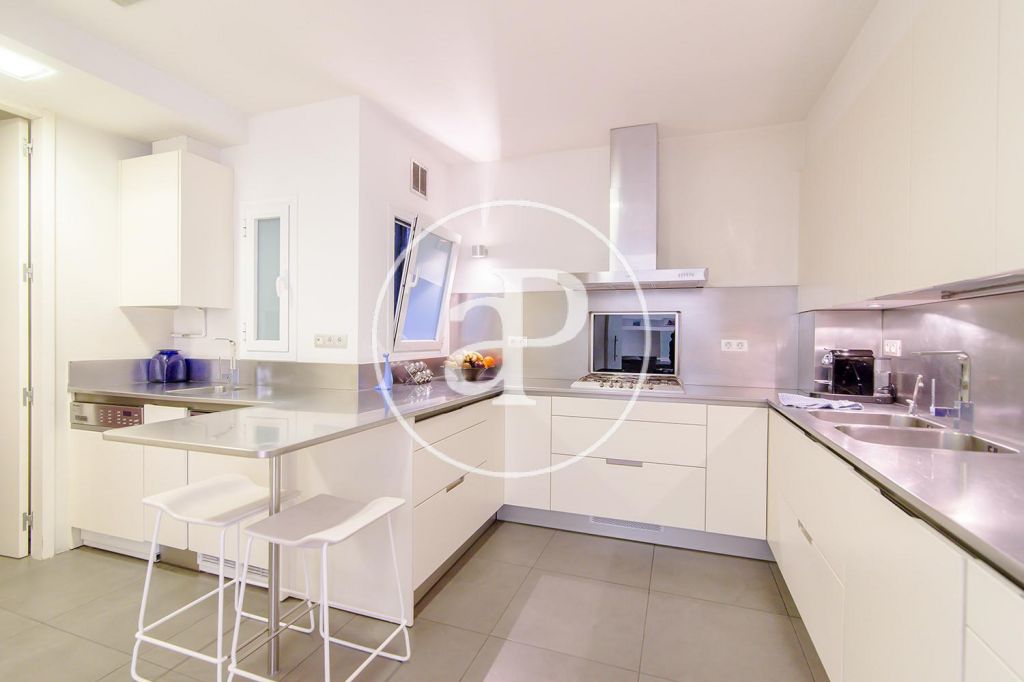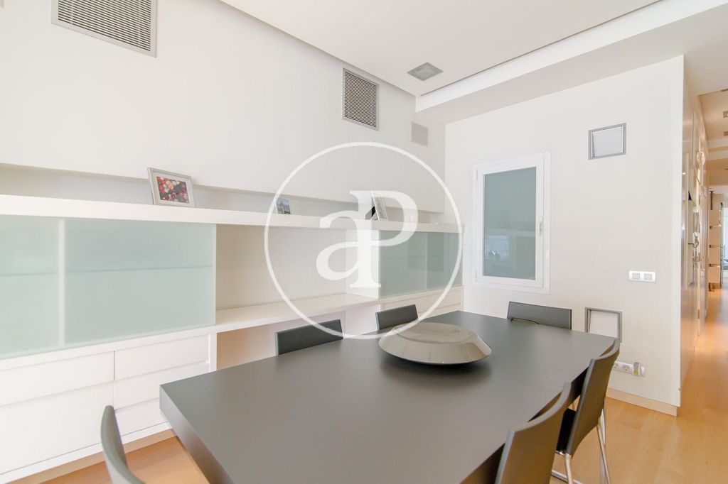 Está completamente amueblado con mobiliario de calidad y diseño y reformado con gusto. Cuenta con un gran salón-comedor exterior con fantásticos ventanales y vistas a calle con orientación sur. La cocina con habitación de servicio, equipada con electrodomésticos de alta gama.