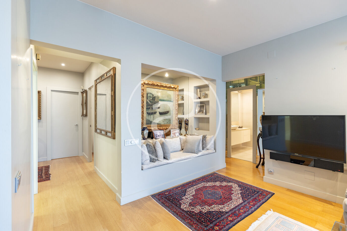 La zona de día se organiza a partir de un agradable recibidor que da acceso a una amplia cocina con electrodomésticos panelados y abundante espacio de almacenamiento. El salón comedor, espacioso y muy luminoso, cuenta con grandes ventanales de doble acristalamiento que aportan confort y tranquilidad, creando un ambiente ideal tanto para el día a día como para recibir invitados.