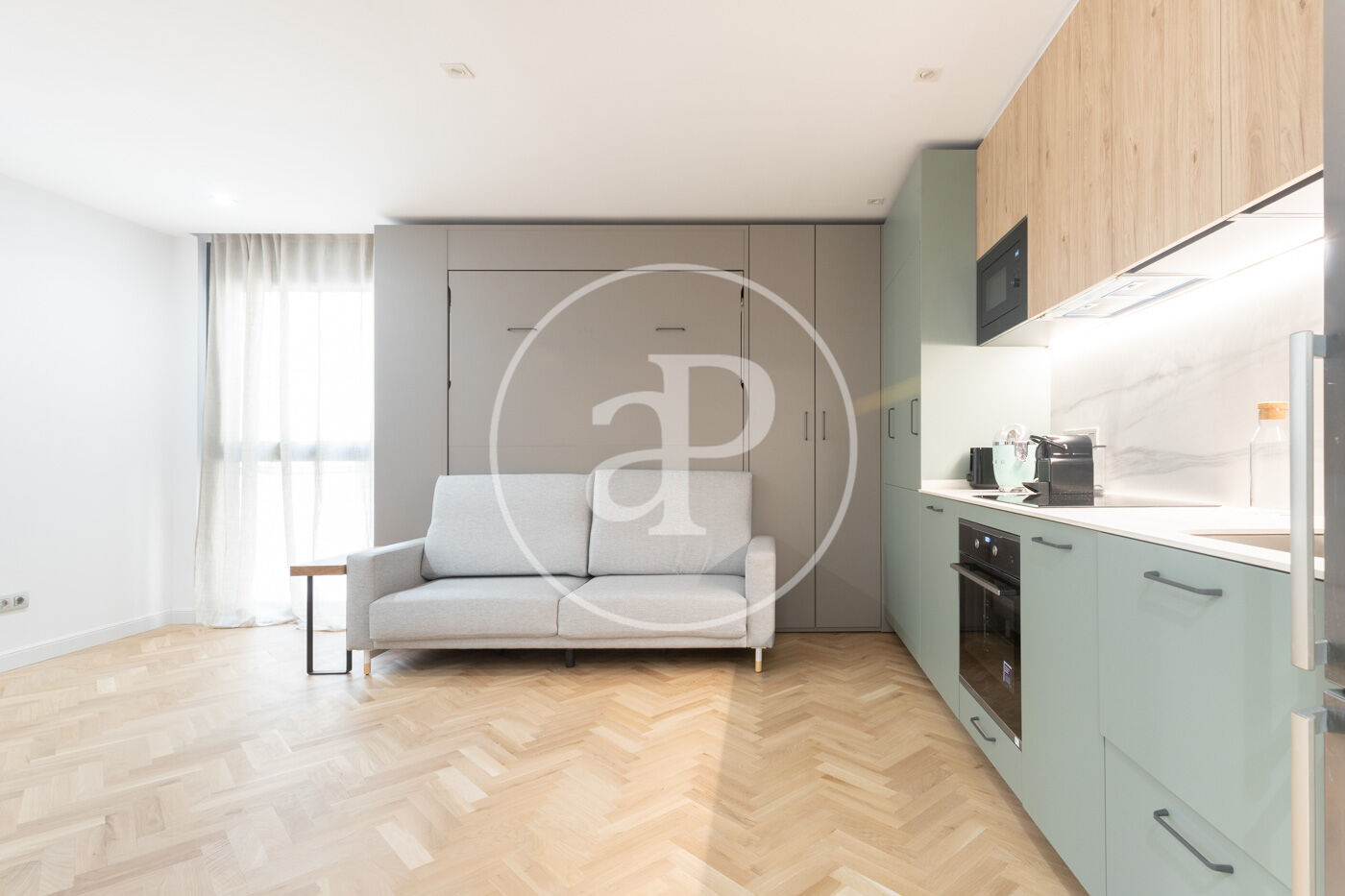 Localizado en la misma Avenida Diagonal, a escasos minutos del Turó Park, rodeado de todos los servicios necesarios y excelentemente comunicado, encontramos este estudio amueblado, con materiales de alta calidad.