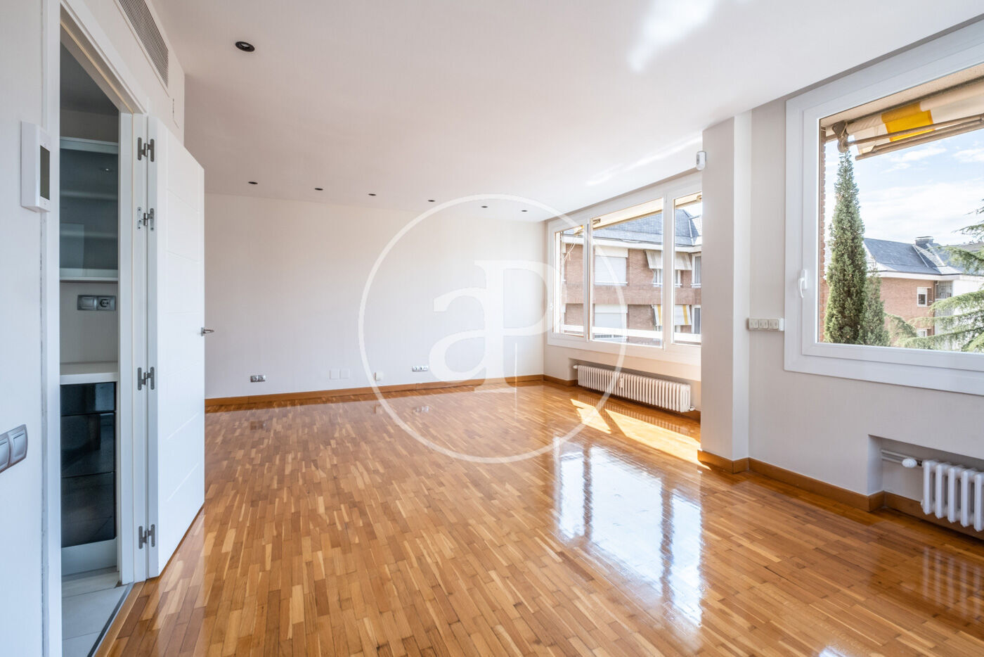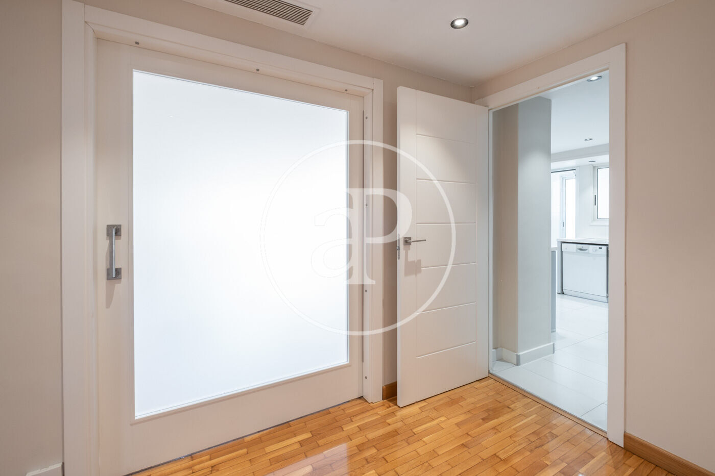 Este piso cuenta con suelos de parquet recién pulidos, ventanas de doble cristal, calefacción de gas y aire acondicionado por conductos. También tiene una plaza grande de parking y trastero.