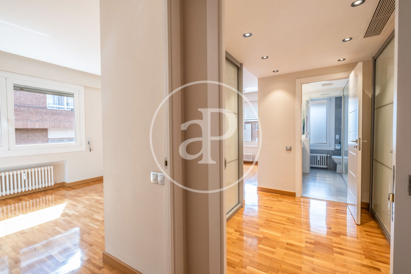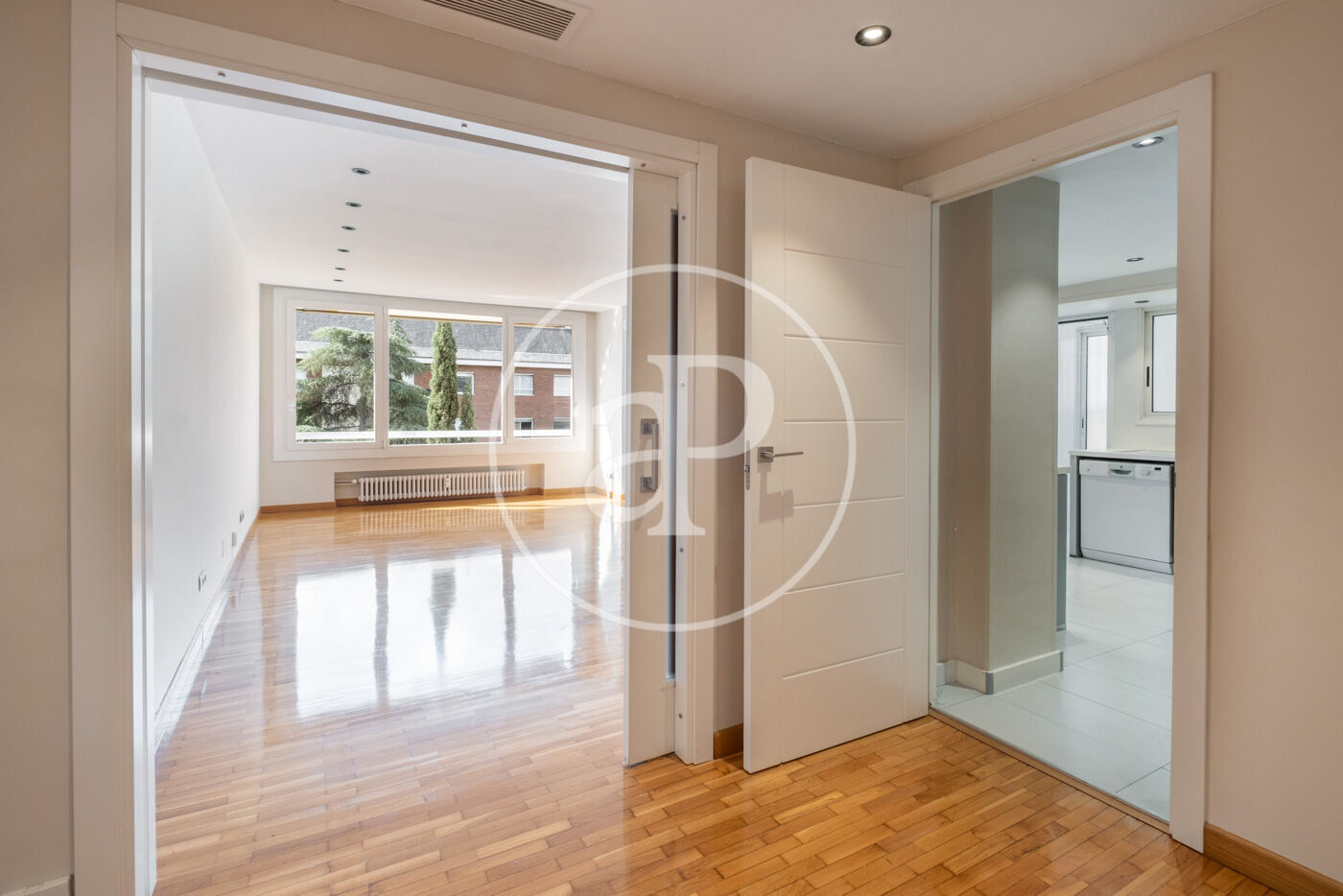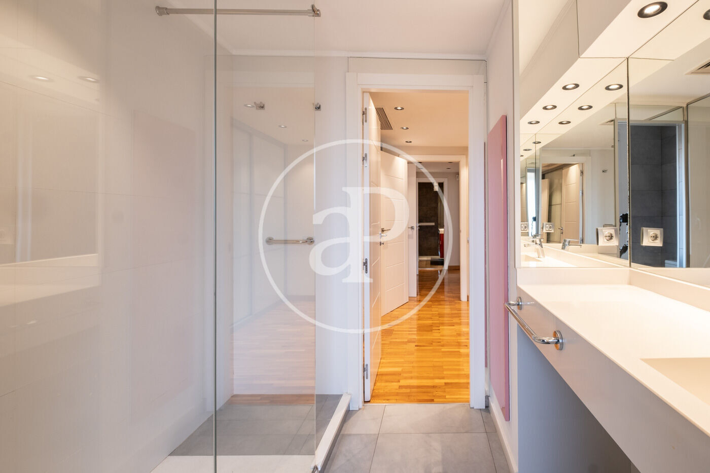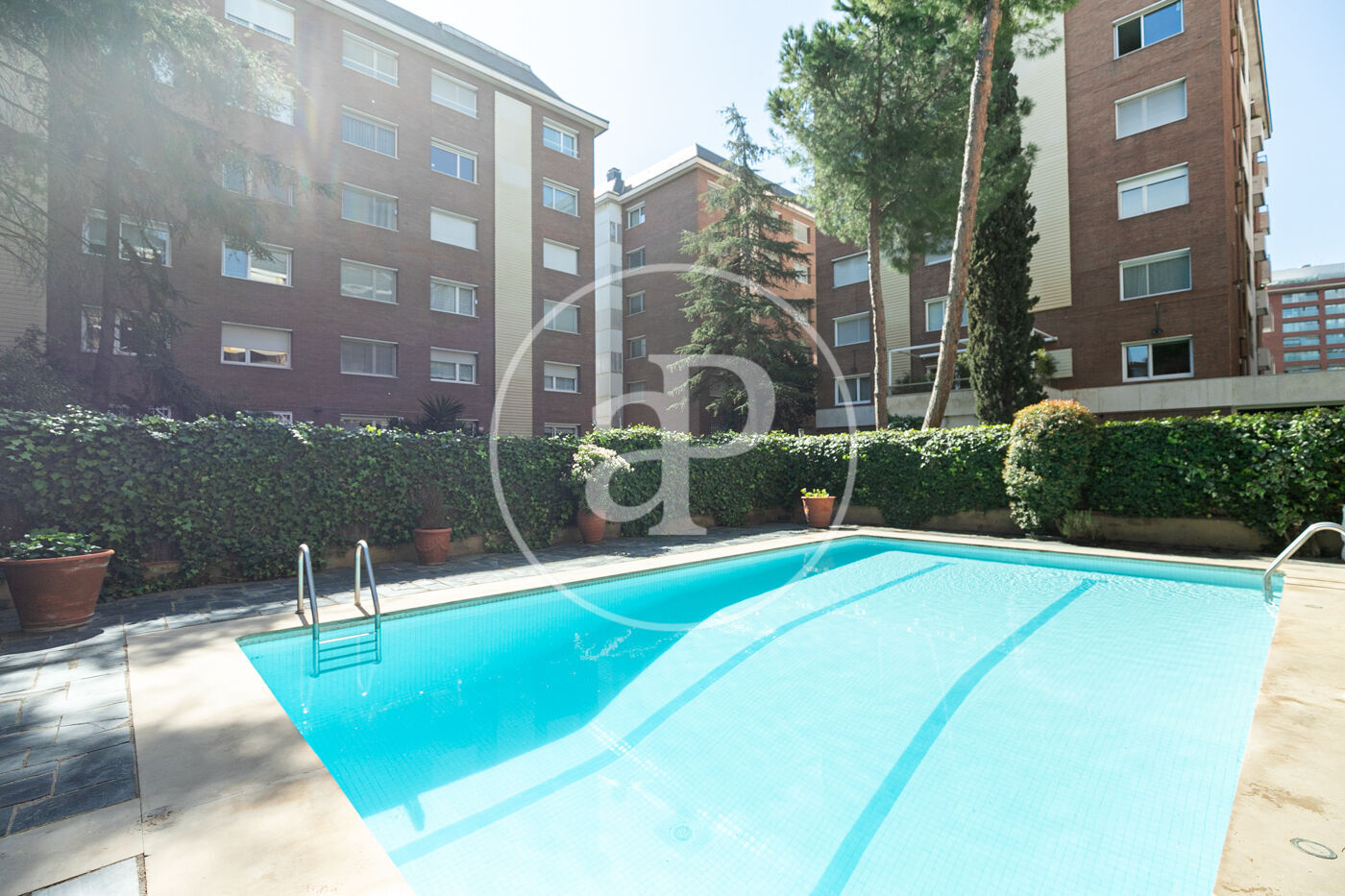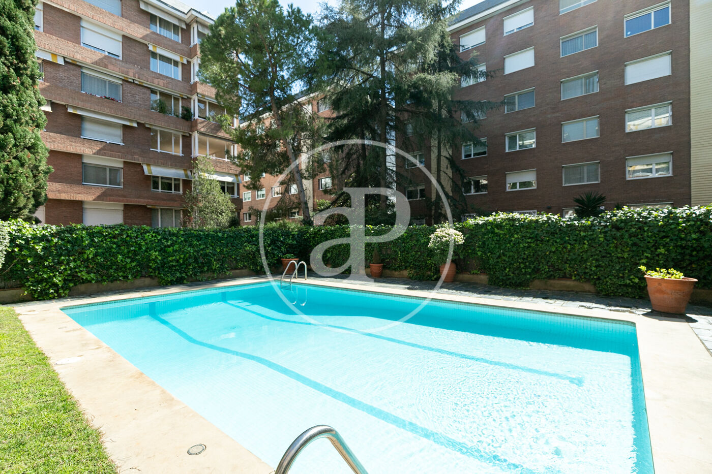 Este luminoso piso de 149m² a tres vientos, con jardín y piscina comunitaria, ofrece la comodidad de vivir en el prestigioso barrio del Turó Park.