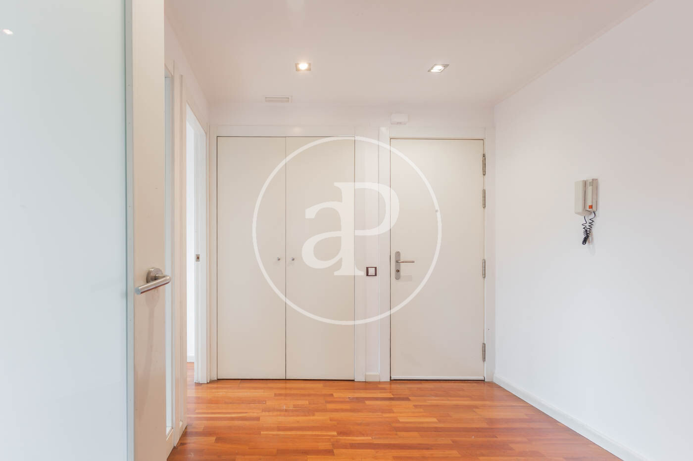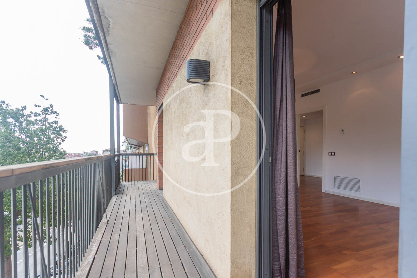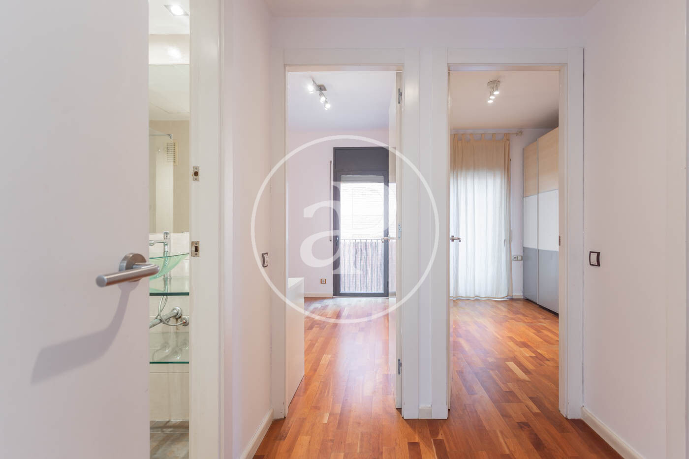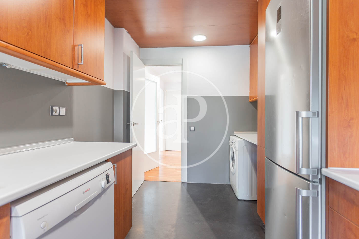 En la zona de día, tenemos un salón-comedor con un bonito balcón que da a la calle Esteve Terradas, lo que aporta una gran luminosidad a esta estancia. La cocina, totalmente equipada, da lugar a un lavadero, por donde entra mucha luz.