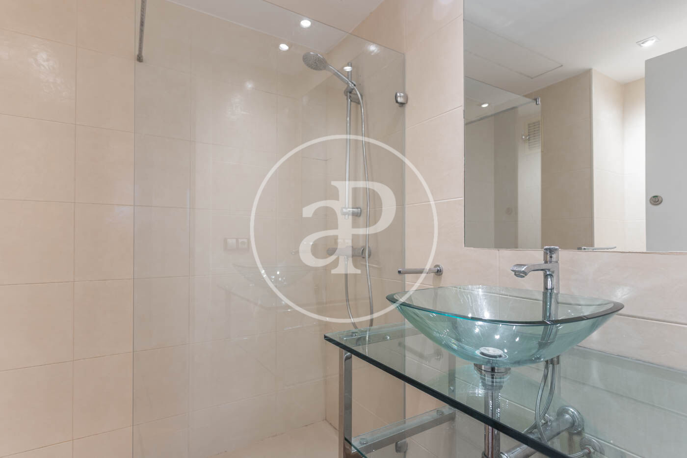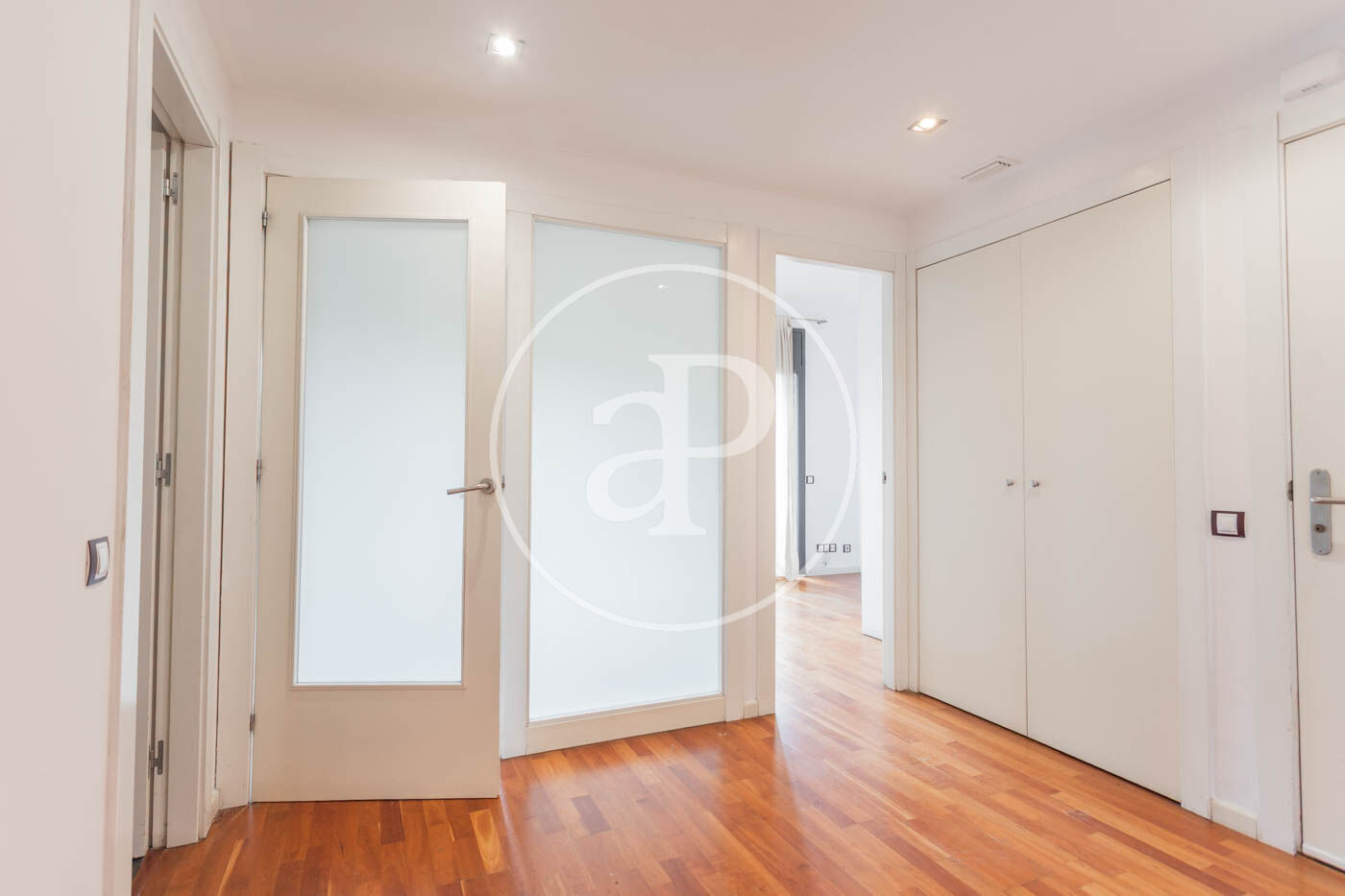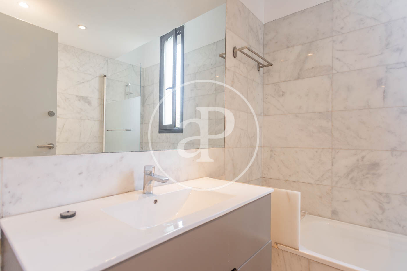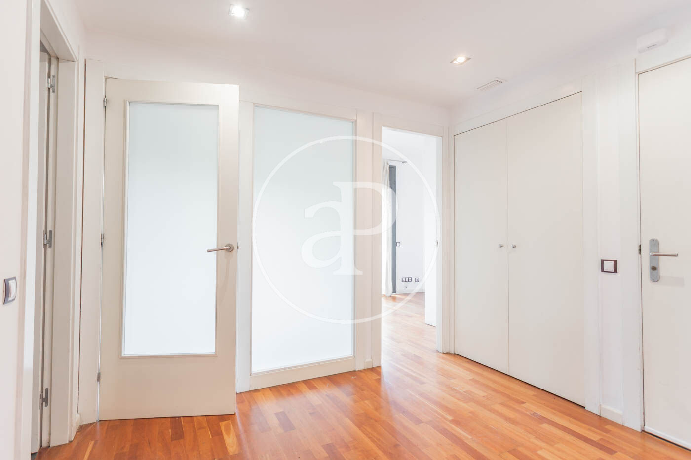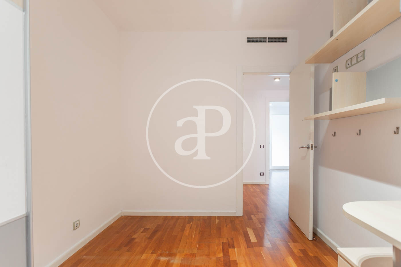 En la zona de día, tenemos un salón-comedor con un bonito balcón que da a la calle Esteve Terradas, lo que aporta una gran luminosidad a esta estancia. La cocina, totalmente equipada, da lugar a un lavadero, por donde entra mucha luz.