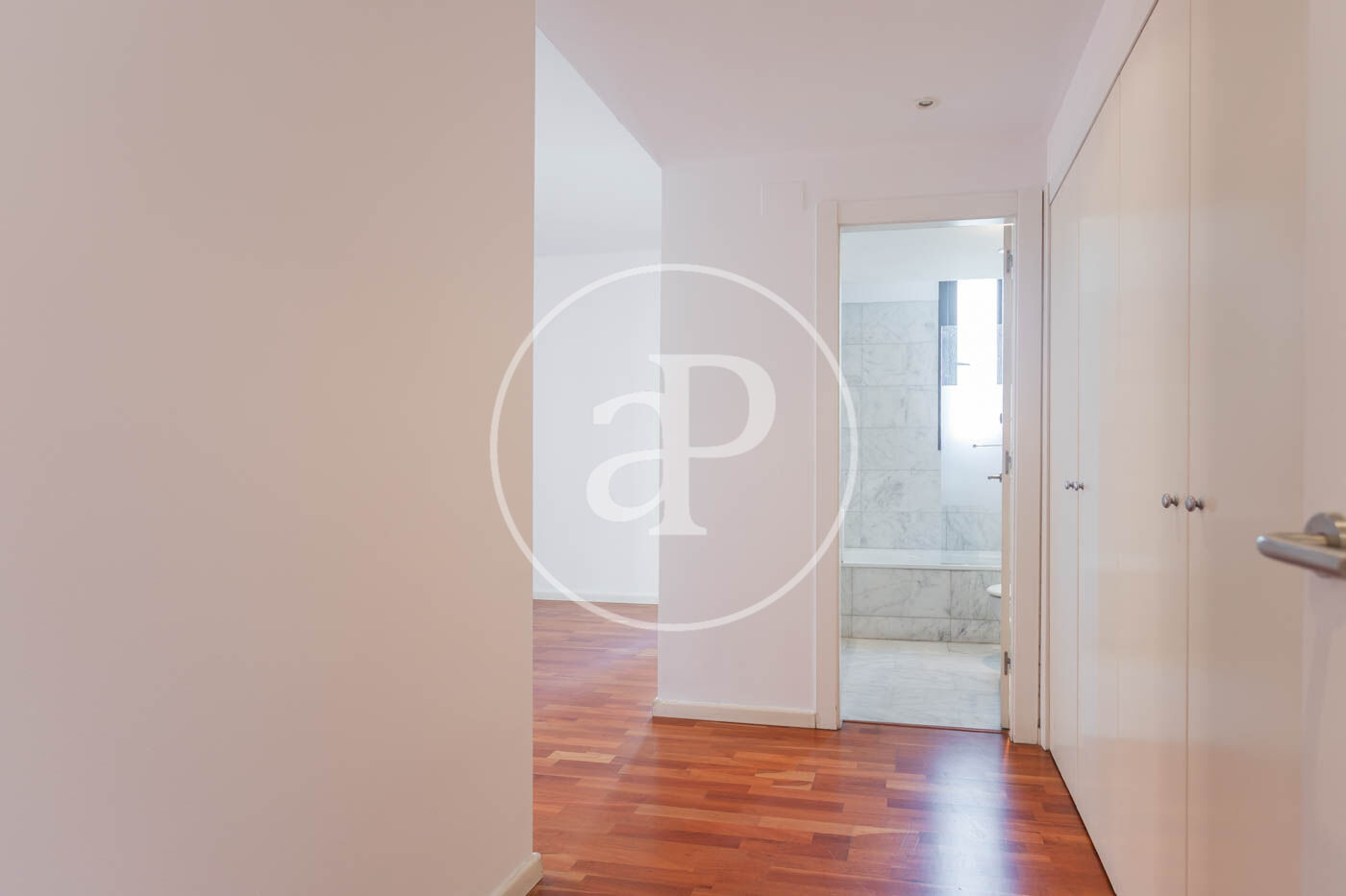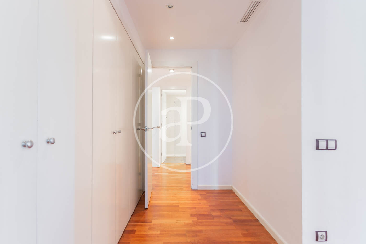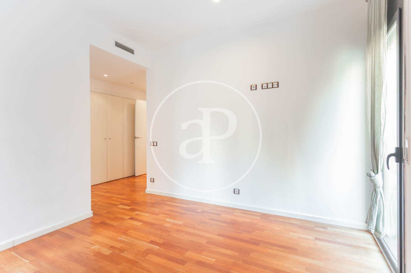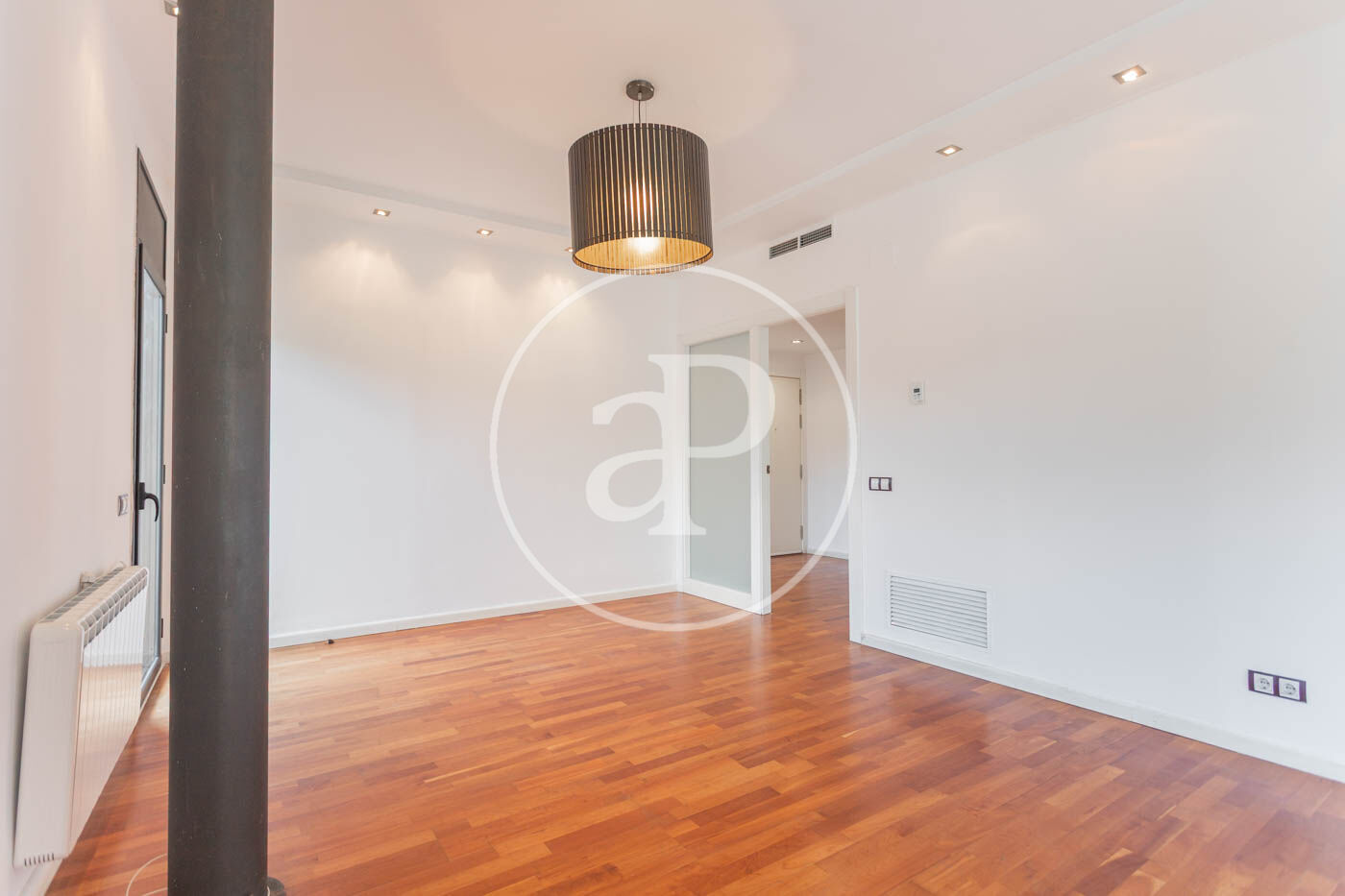 En la zona de día, tenemos un salón-comedor con un bonito balcón que da a la calle Esteve Terradas, lo que aporta una gran luminosidad a esta estancia. La cocina, totalmente equipada, da lugar a un lavadero, por donde entra mucha luz.
