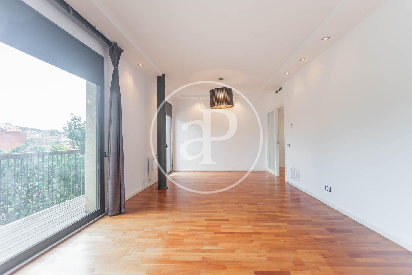 Muy cerca de la plaza Alfonso Comín y del hospital Quirón, en el tranquilo barrio de Vallcarca, encontramos este luminoso piso de 4 habitaciones, 2 baños, parking y balcón, muy bien comunicado con las entradas y salidas de Barcelona de la Ronda de Dalt y todo tipo de transporte público.