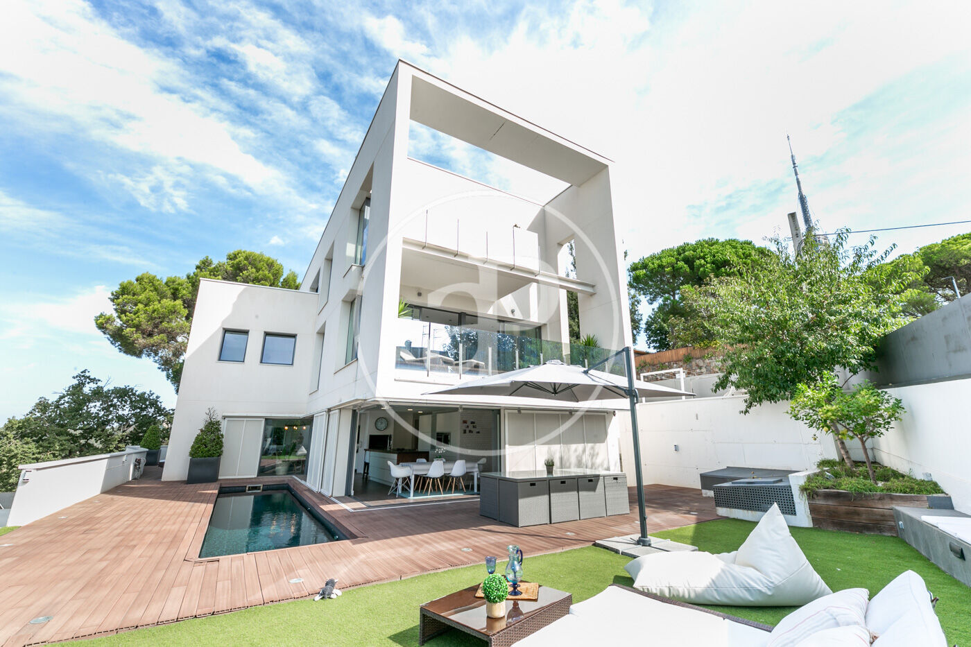 Esta lujosa propiedad a cuatro vientos está ubicada en un terreno de 840m2 en Vallvidrera parque natural y consta de una superficie útil de 672m2 con jardín. Solo a 20 minutos de la ciudad.