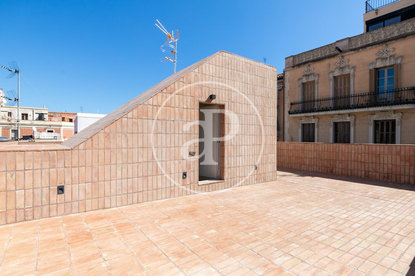 El piso cuenta con: un sistema de aerotermia y de recuperador de aire de una alta calidad energética y muy eficiente; de una terraza en la azotea de la finca de baldosas de barro hechas a mano, de uso comunitario y de un ascensor. Todos los de talles de la finca son de alta gama y cuidados hasta el último detalle, como lámparas, pulsadores de timbres y numeración de pisos de cerámica artesanal.
