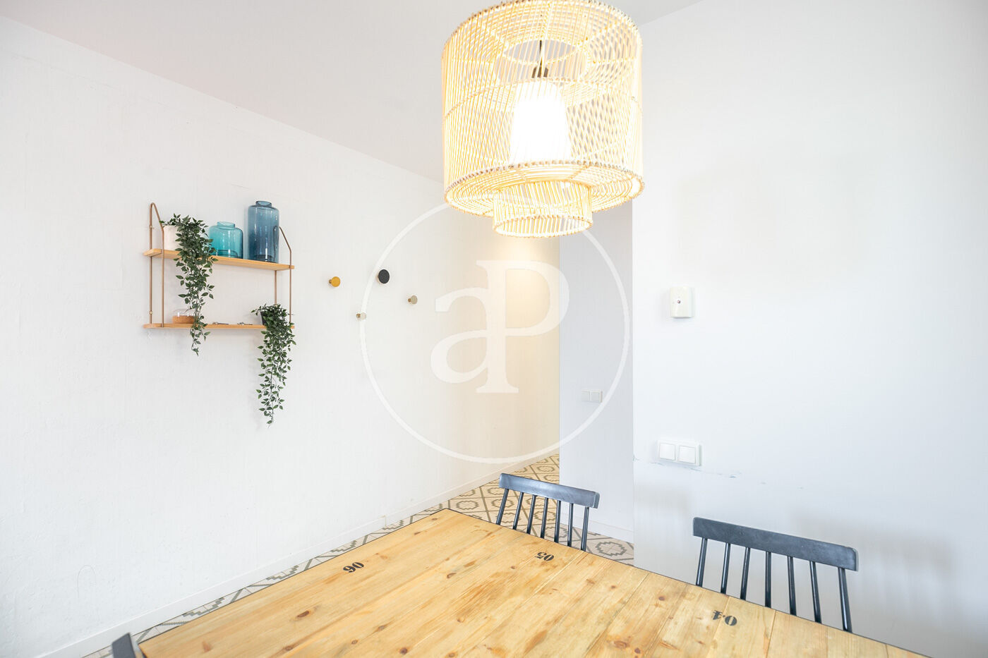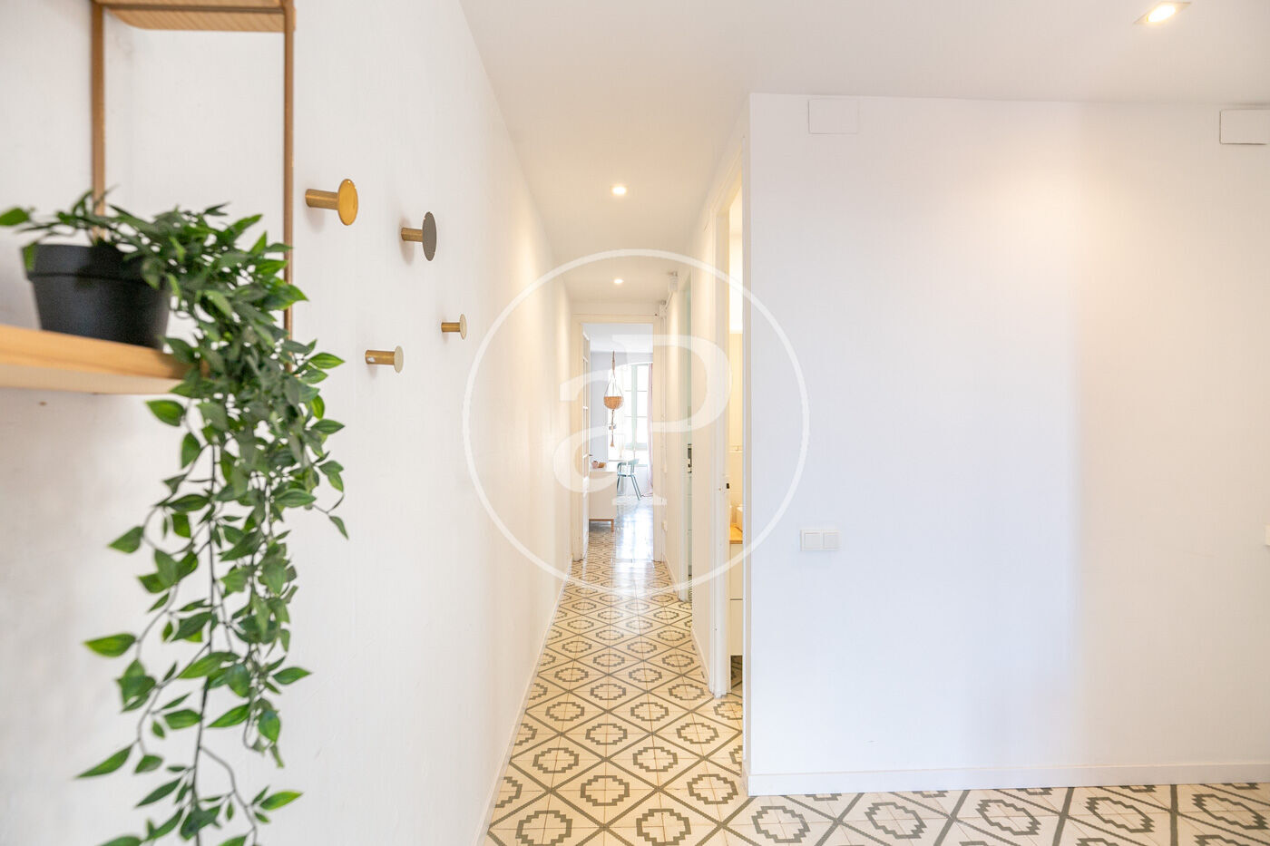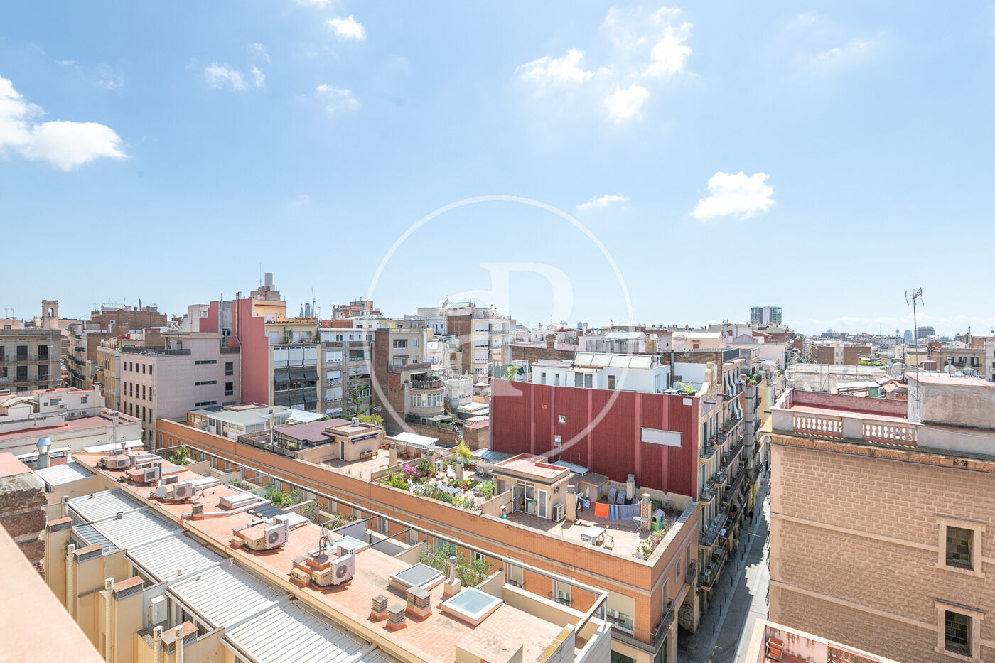 Los 64m2 se distribuyen en 2 habitaciones dobles, amplias y luminosas, cocina independiente, un baño, zona de aguas, y un salón comedor muy agradable con acceso a la terraza de 16m2 con vistas panorámicas a la ciudad de Barcelona.
