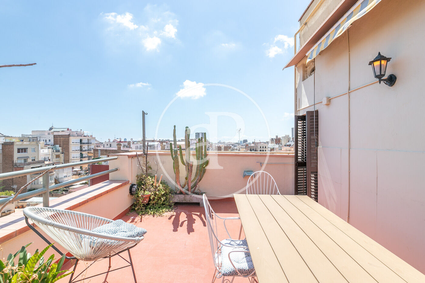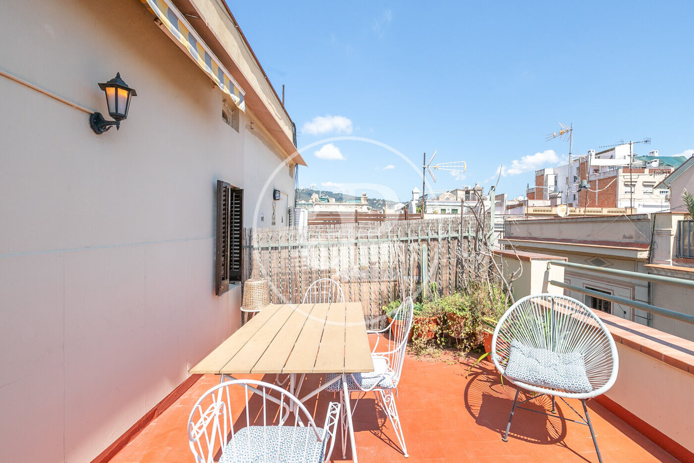 Con una ubicación inmejorable, en la calle Berga con Rambla del Prat, a dos pasos del Mercat de la Llibertad, rodeada de servicios y comercios, encontramos este bonito ático con terraza de 80 m2, en una 6ta planta real, con doble orientación y vistas panorámicas en un edificio de 1.934, SIN ASCENSOR.