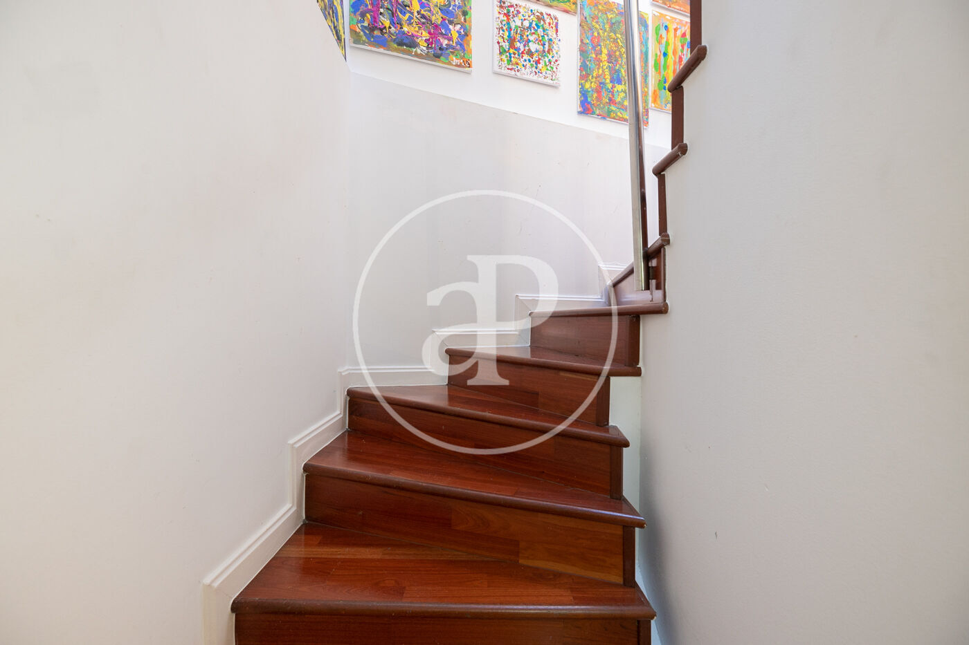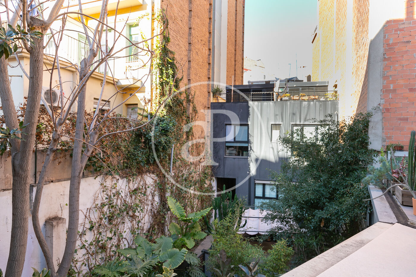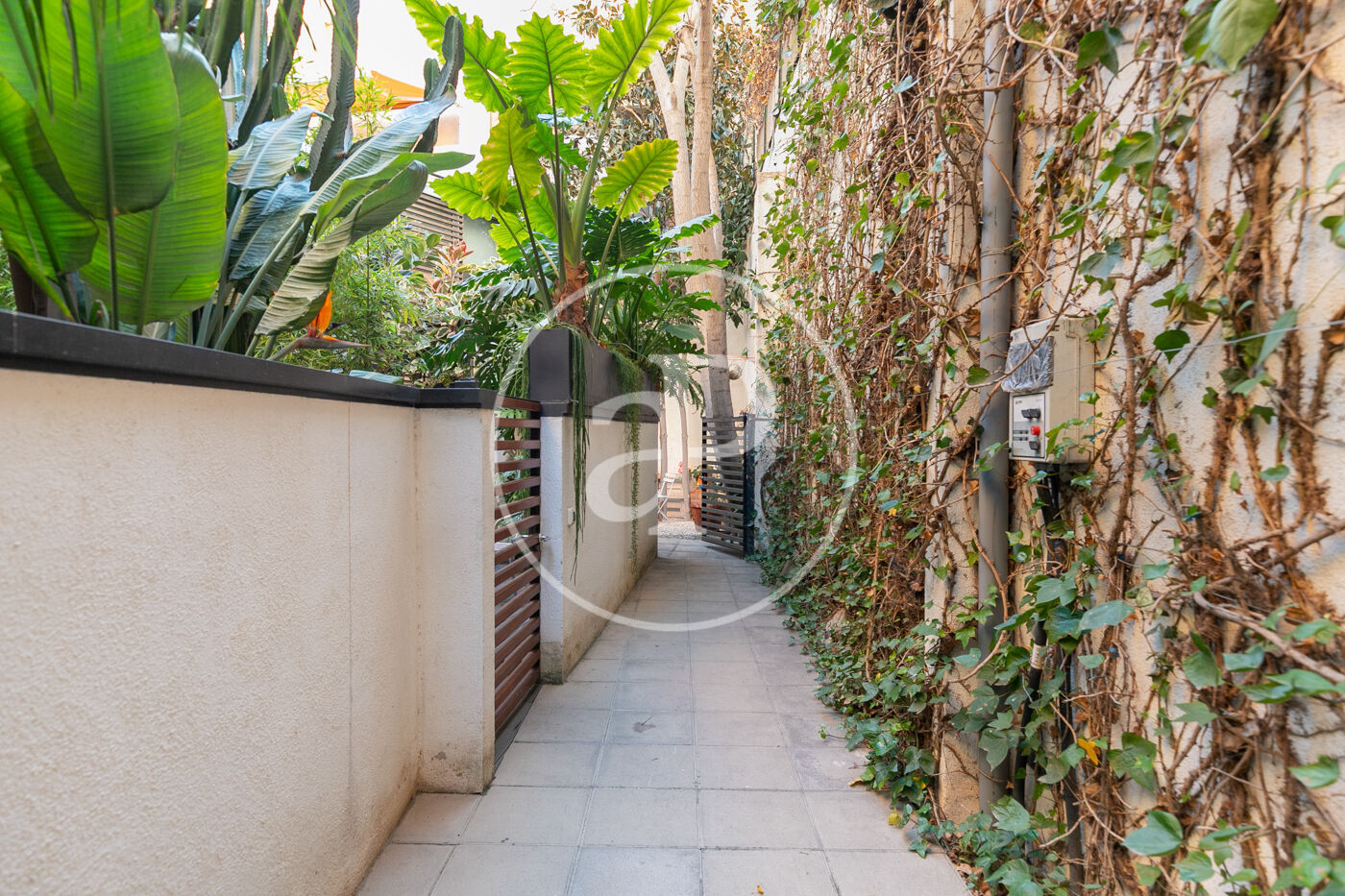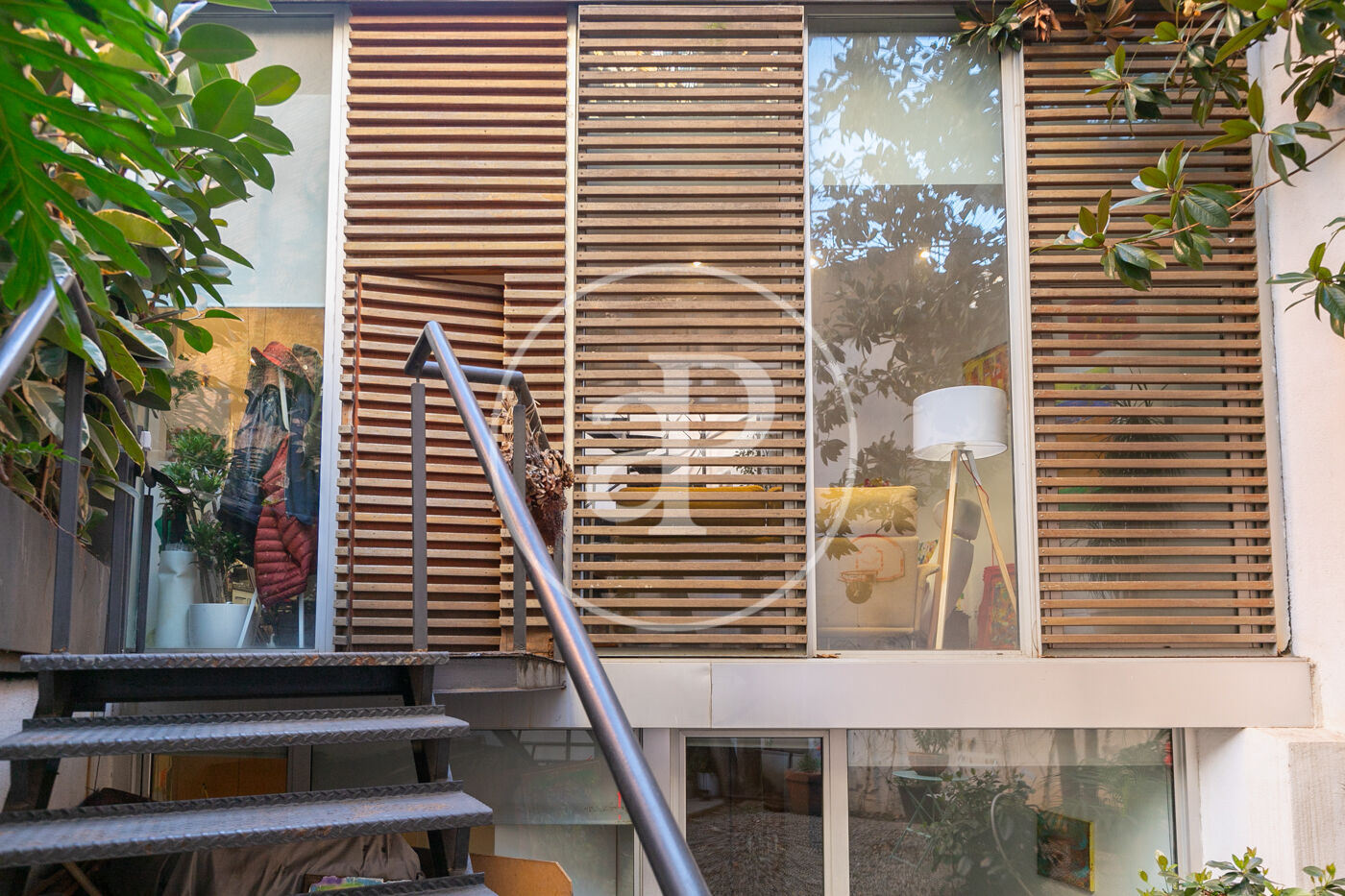 La casa se encuentra en una propiedad de 5 viviendas muy singular, en la que se crea un ambiente de paz y tranquilidad, rodeada de jardines y a pocos metros de vías principales de la cuidad como Vía Augusta y Avenida Diagonal.