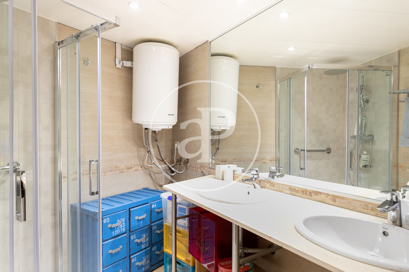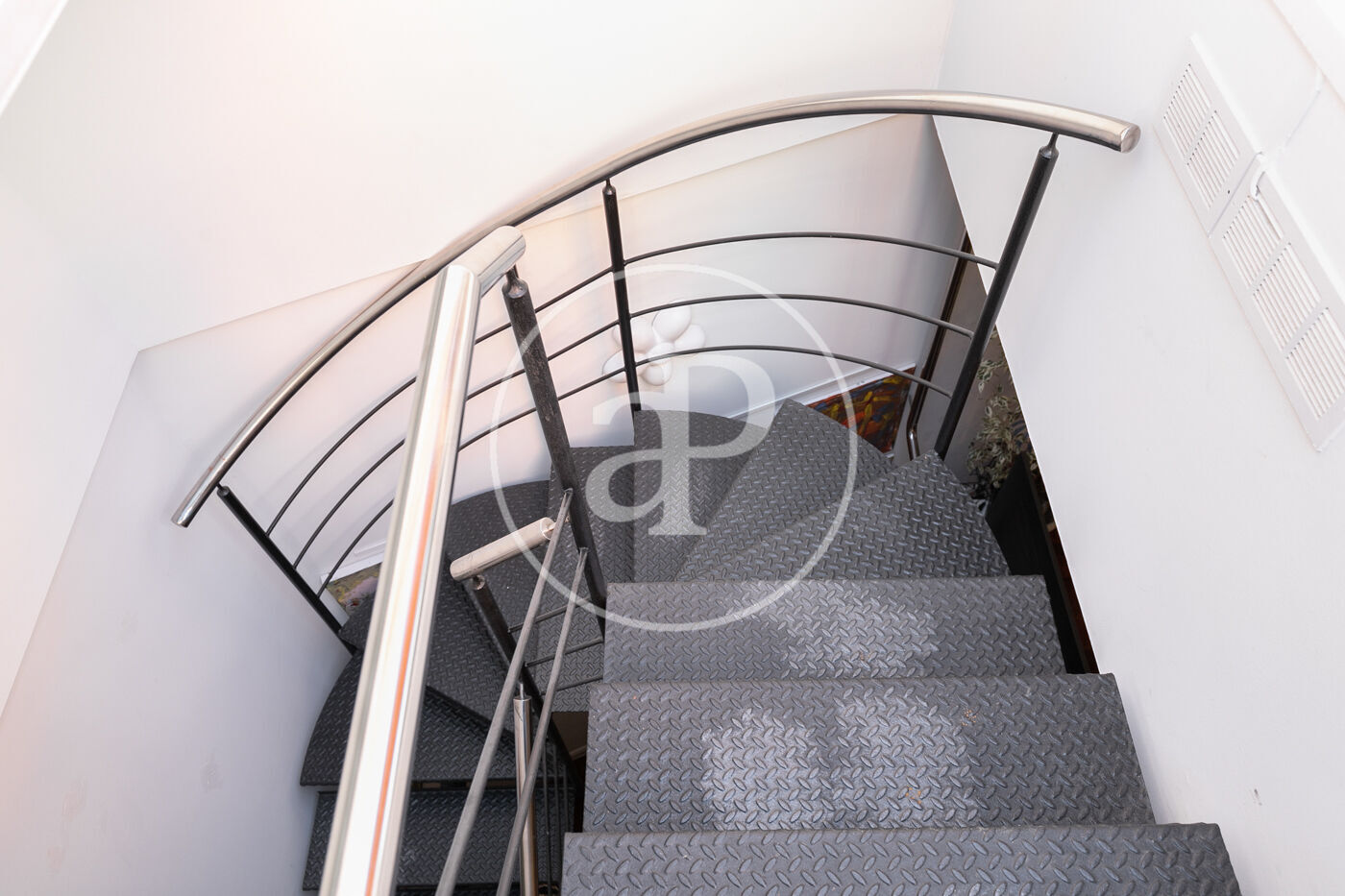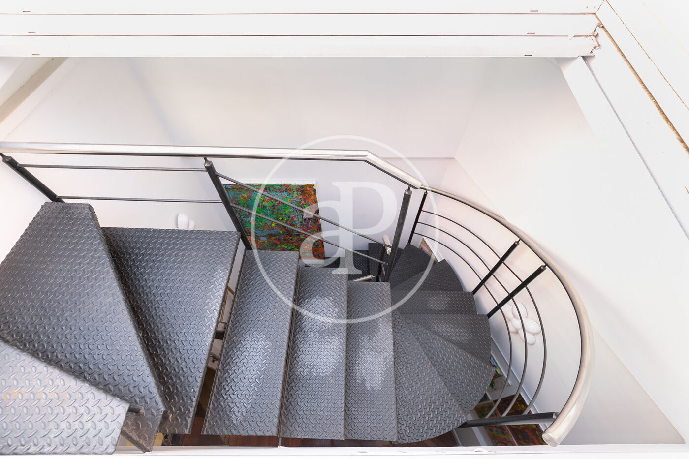 Además, desde la planta superior del edificio se accede a la terraza de 30m2, a través de un techo acristalado automático. La terraza también está equipada con un toldo automático de gran tamaño.